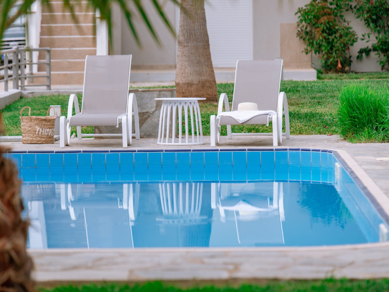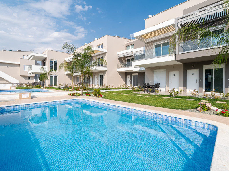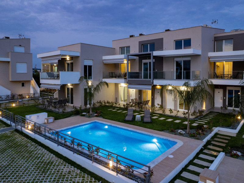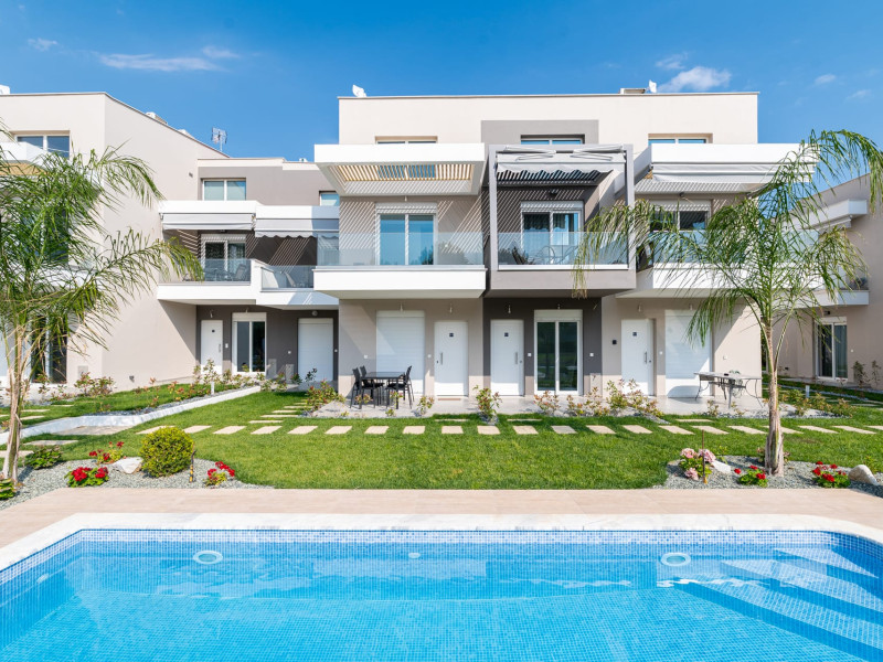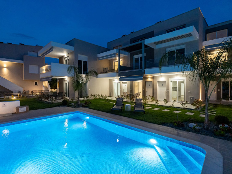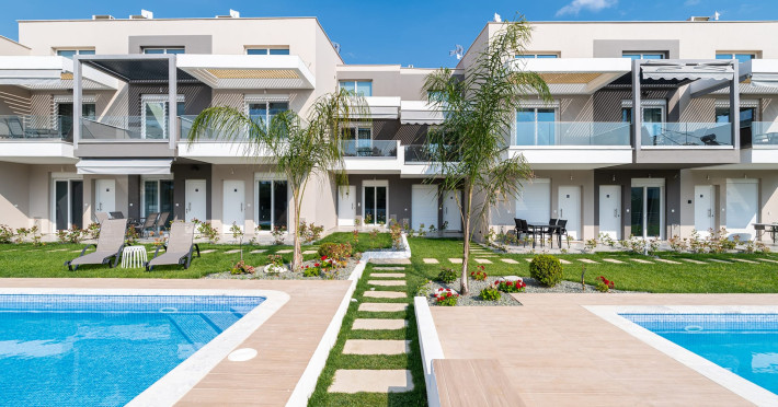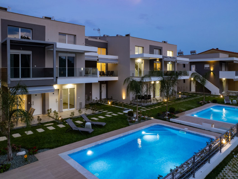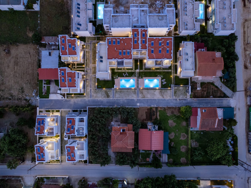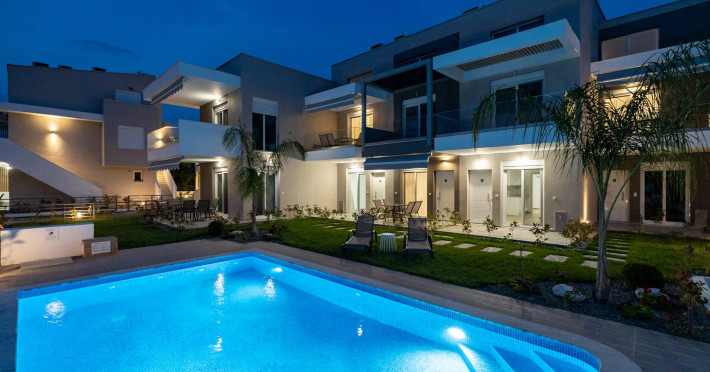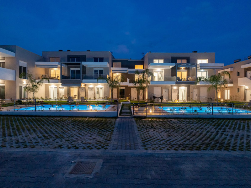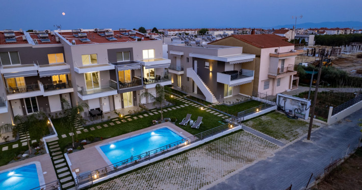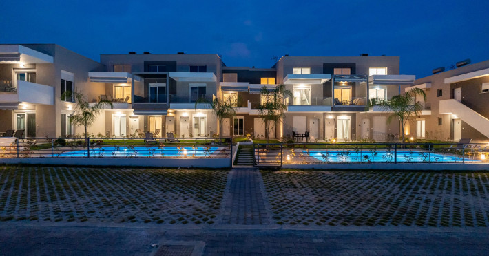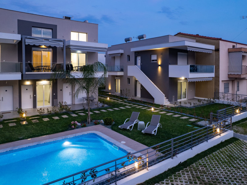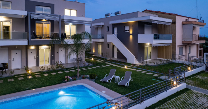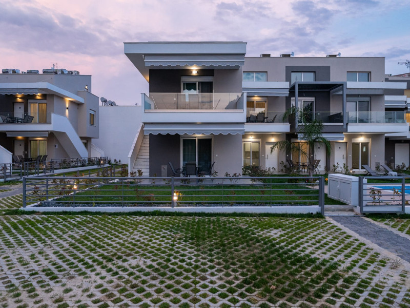 The one-bedroom apartments of the complex are a breath away from the beach, with a view that combines mountain and sea. Modern and minimalistic residences very close to the main pedestrian street and shops. The common pools and the green landscaped gardens centered within the complex offer unique moments of carefreeness combining nature and relaxation!