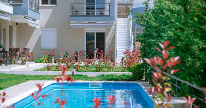 The Danai Residential Complex is a seaside Jewel, consisting of one or two-bedroom apartments with a living room, kitchen, and bathroom. It is ideal for those looking for relaxation and family moments around the common pool. The porches of the houses offer unobstructed view of the mountain. Enjoy your day around the pool or choose from the rich selection of organized beaches and beach bars.