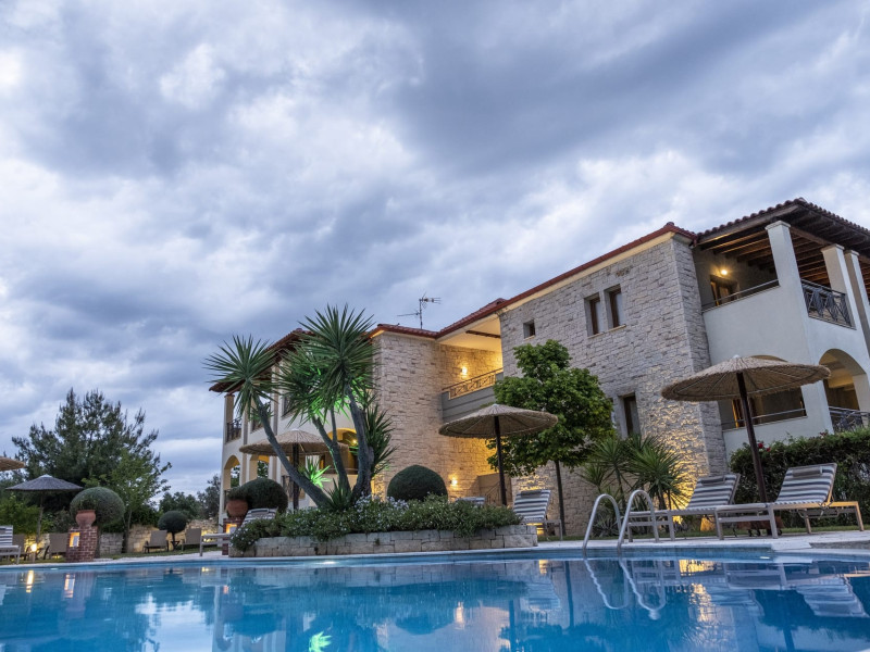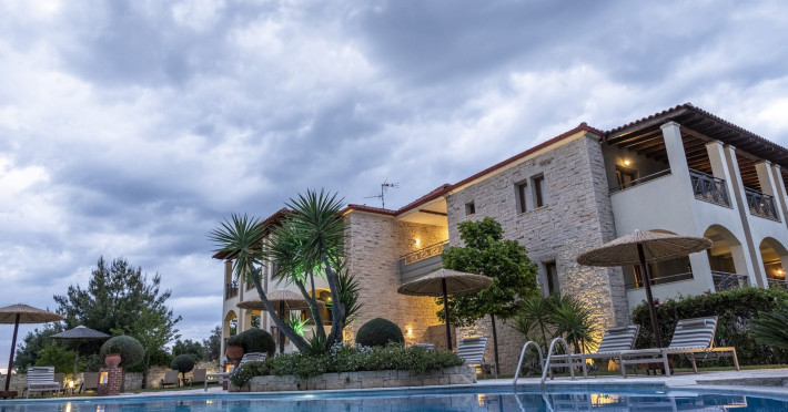 The distance from the beach is very short . A small natural path through pine trees leads right to the astonishingly blue sea. The property consists of 16 rooms and 1 suite, spacious and carefully decorated in modern style together with high standard services, we are bound to satisfy all your needs.