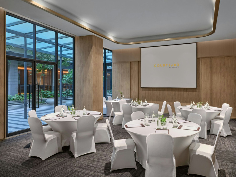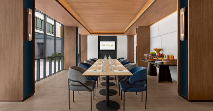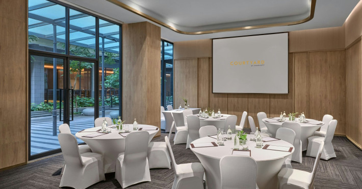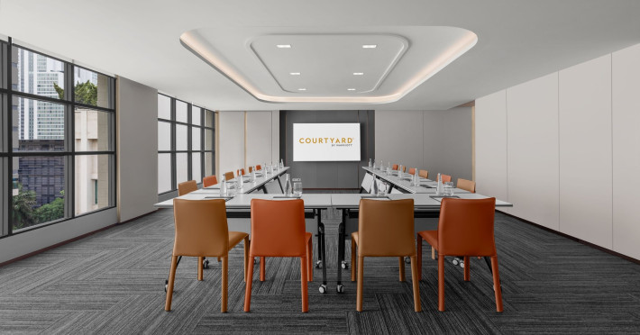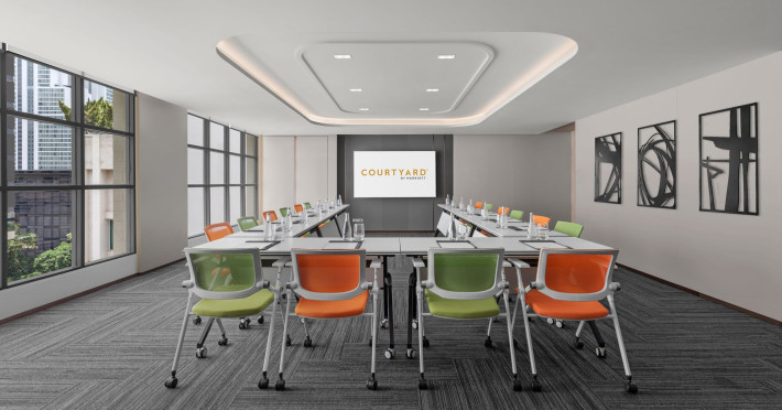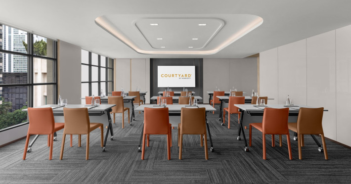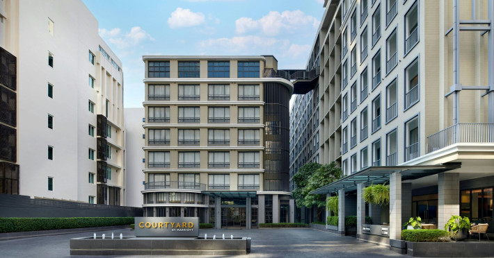 Courtyard by Marriott Bangkok Sukhumvit 20 provides a comfortable and convenient option in Bangkok’s most vibrant commercial and lifestyle district, Sukhumvit. Located close to Asok intersection, surrounded by multinational offices, shopping malls and nightlife, the hotel is perfect for business, leisure, and "Bleisure" travelers alike. The modern lobby provides guests with the flexibility to work or relax. Restaurant and bar options include an all-day dining restaurant Reap Factory, Twenty & One coffee and bar lounge, and Cool !t Pool Bar. Free Wi-Fi is offered and a well-equipped fitness center and rooftop pool will help guests stay refreshed and energized. Conveniently located near both MRT Subway Sukhumvit, BTS Skytrain Asok, and Phrom Phong, transportation accessibility is seamless. Additionally, our hotel in Bangkok, Thailand, is situated near Emporium, EmQuartier and EmSphere, allowing guests easy access to one of Bangkok's premier shopping destinations for a complete and convenient stay experience.