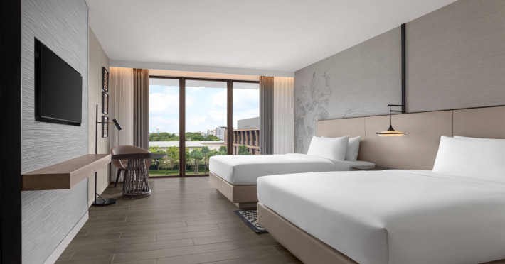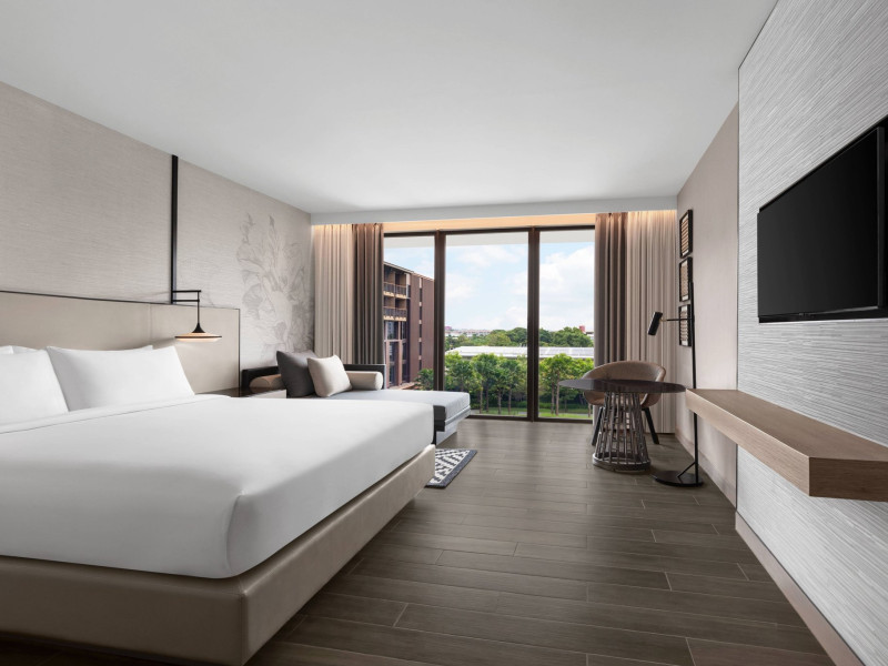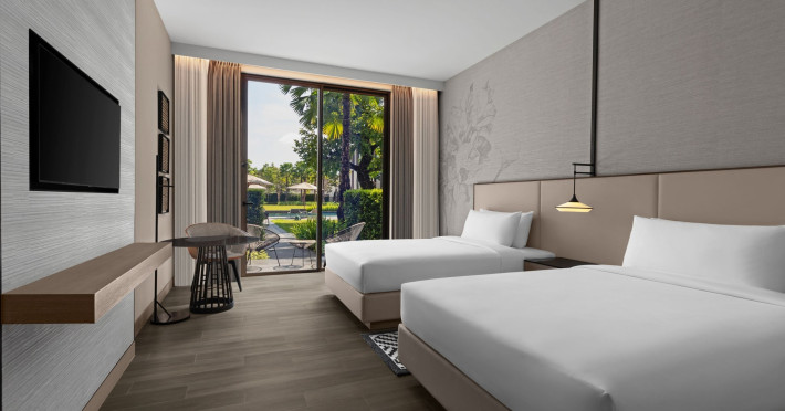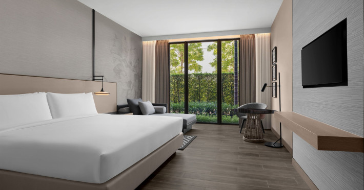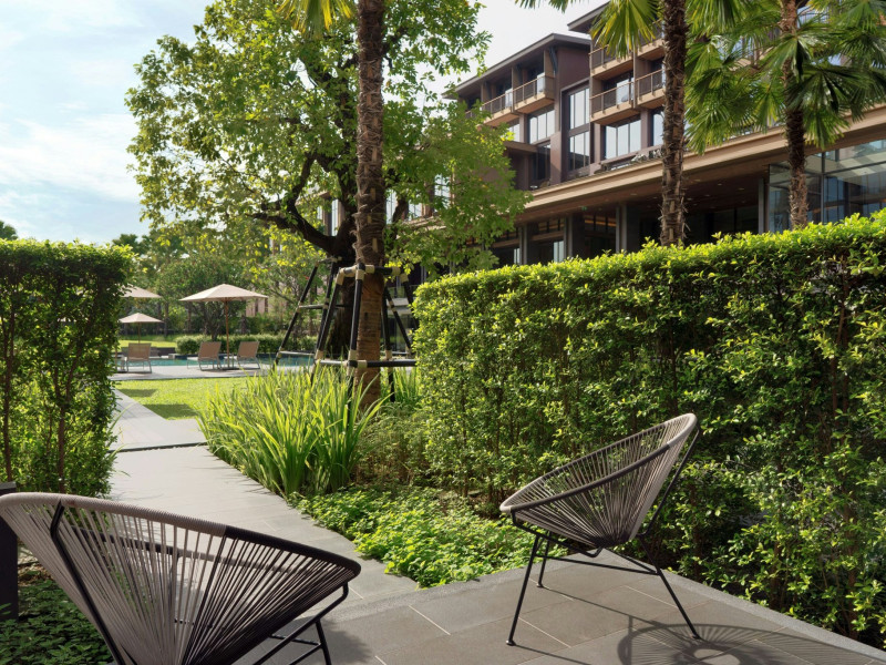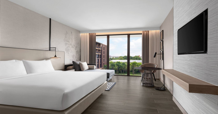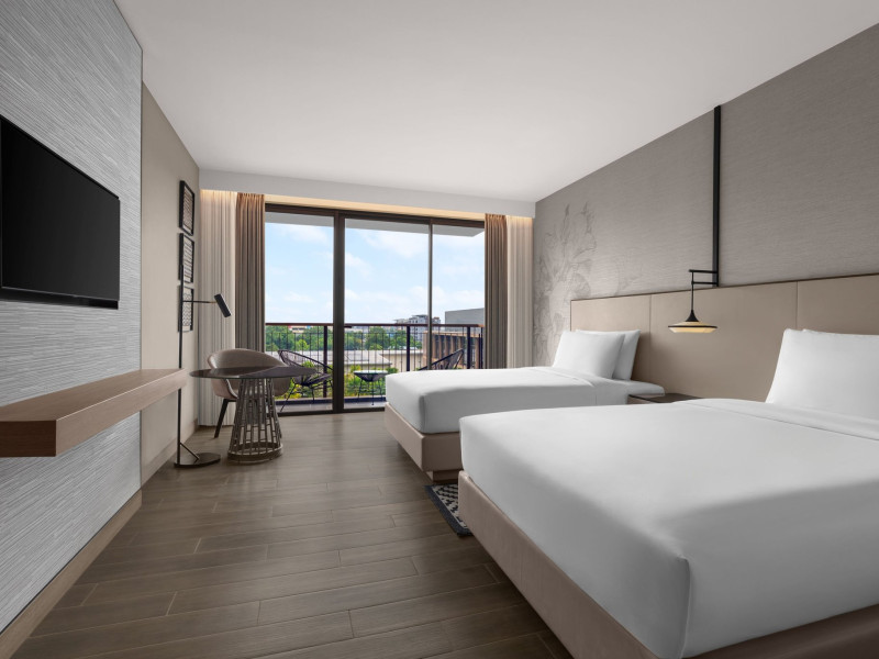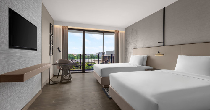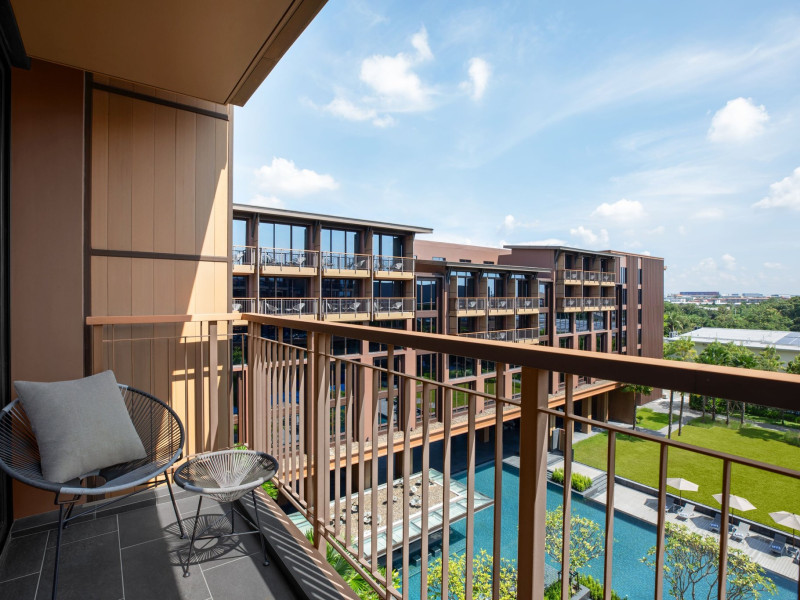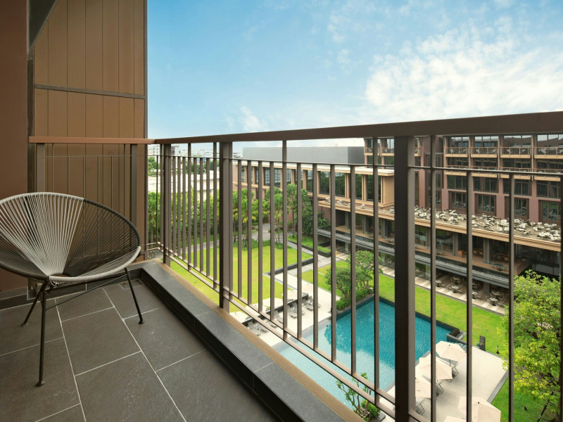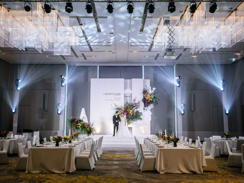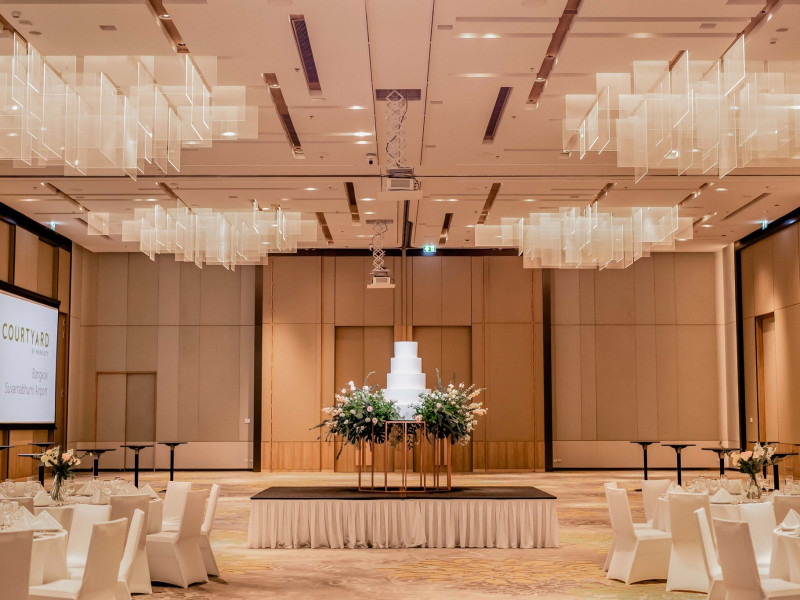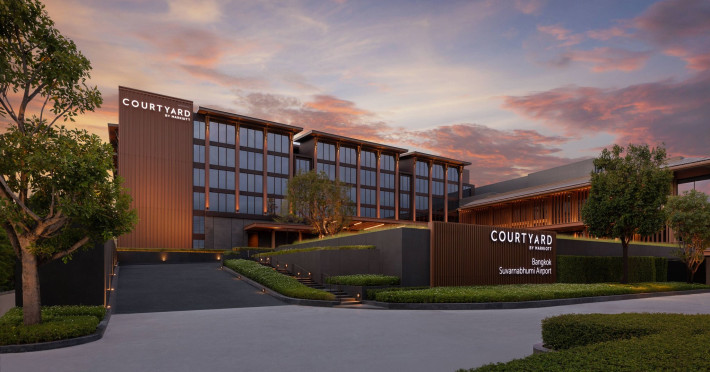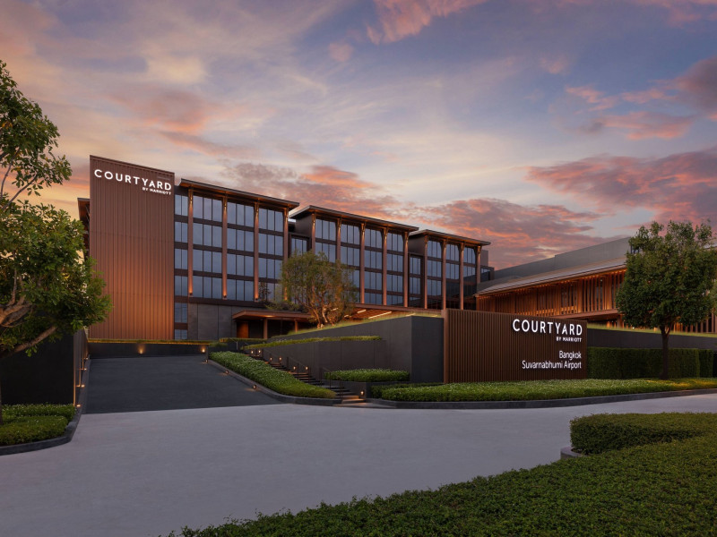 Courtyard by Marriott Bangkok Suvarnabhumi Airport is here with all you need. Our hotel near Suvarnabhumi Airport, Bangkok. Ride a free airport shuttle to the hotel and enjoy your stay your way in one of 454 modern rooms and 14 spacious suites featuring high-speed Wi-Fi, 55” flat TVs, and a mini fridge. Close the blackout curtain and have quality sleep on signature bedding. Get ready with Nirvae eco-friendly bath amenities. Stay fit in a large outdoor pool or at 24-hour fitness. Retrieve yourself with Thai massages or spa treatments to cleanse travel tension and stress. Fulfill your appetite with all-day dining with exquisite international buffets, specialty burger bar & grills, lobby deli bistro or pool bar. Host Grand Ballroom, Courtyard meeting rooms, boardrooms or outdoor spaces at your disposal for signature meetings and social events with underground parking. At Courtyard by Marriott Bangkok Suvarnabhumi Airport, we give you the best stay possible to help you pursue your passions in Bangkok.
