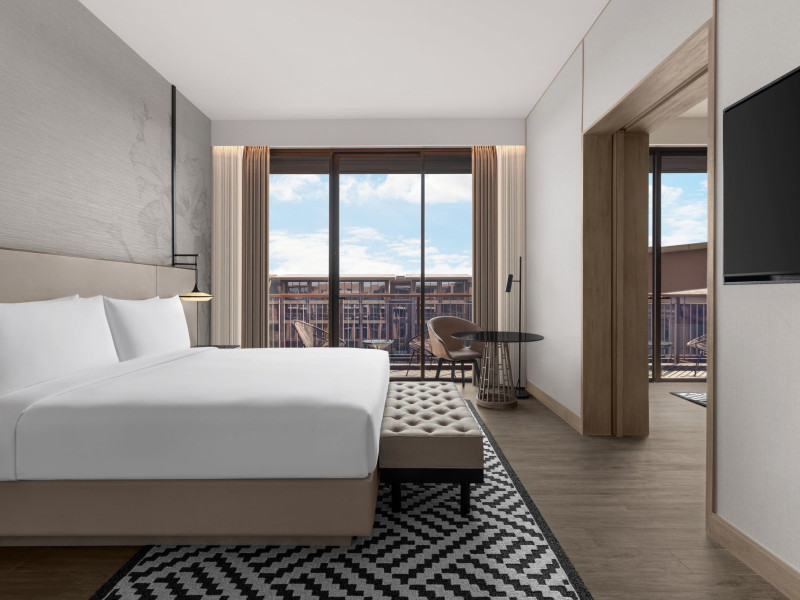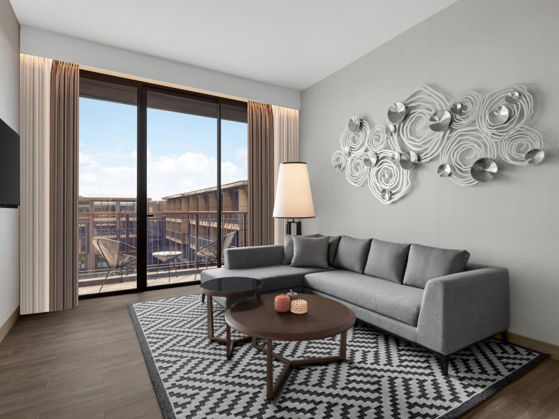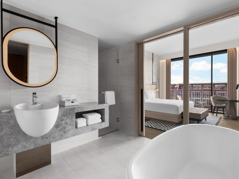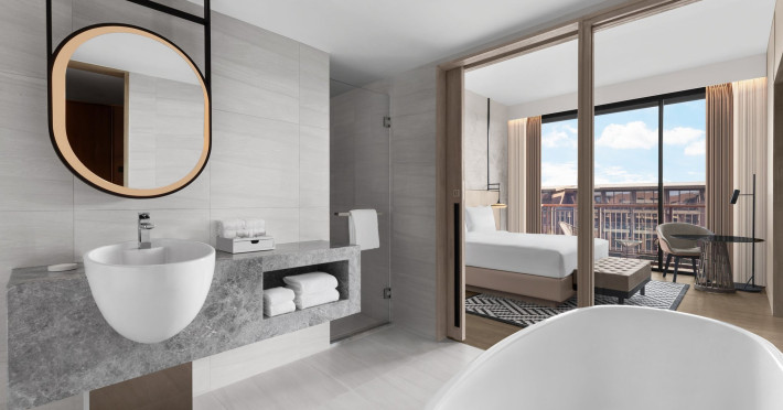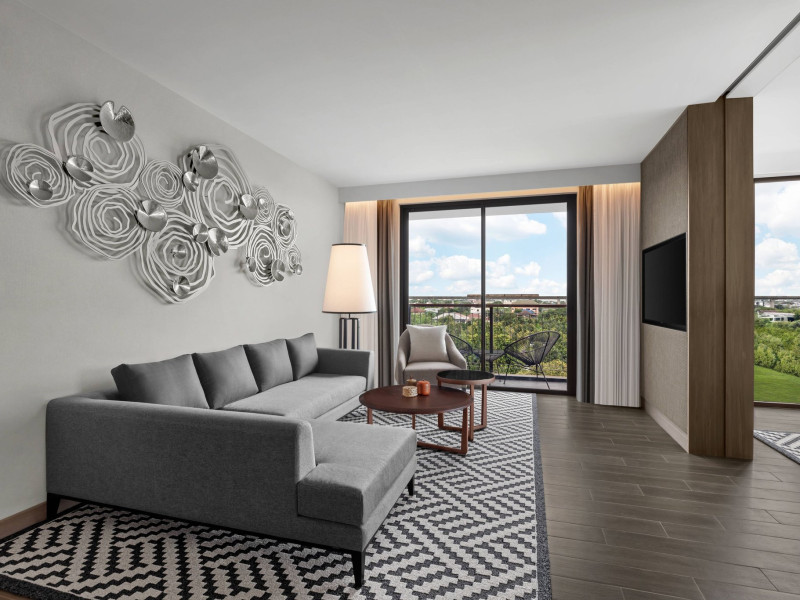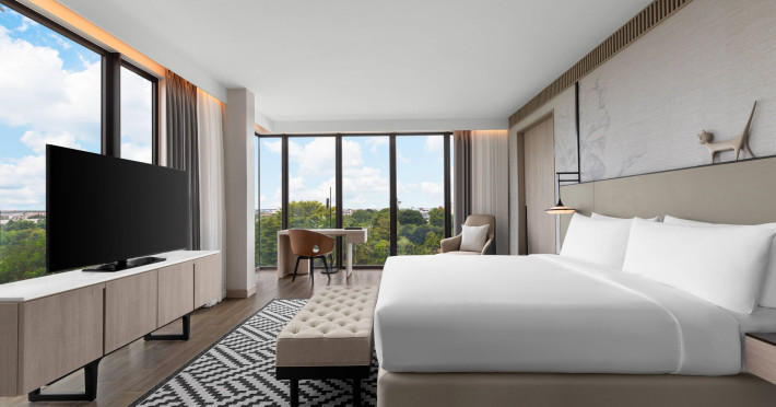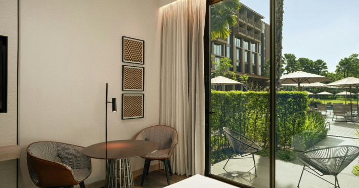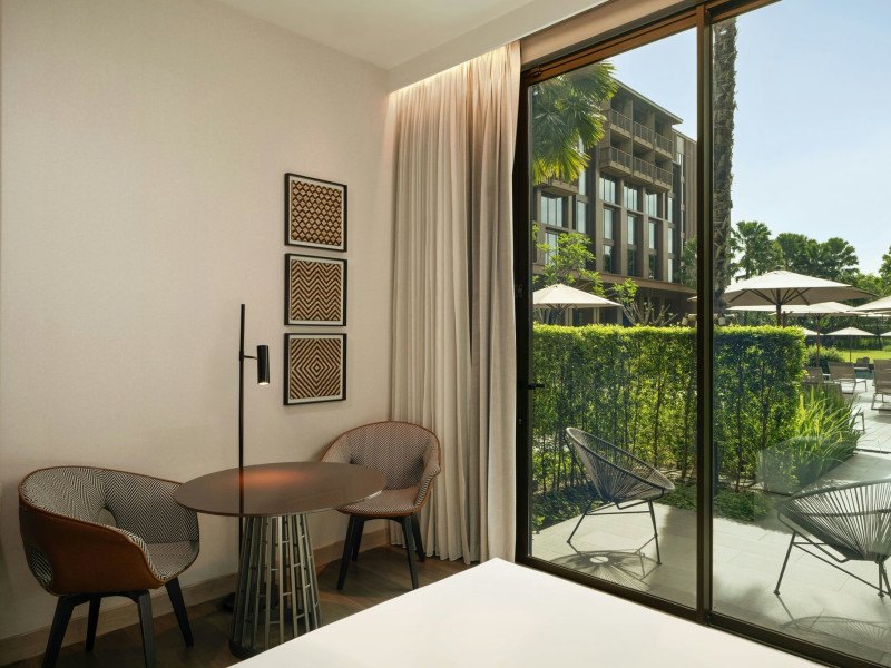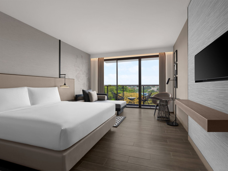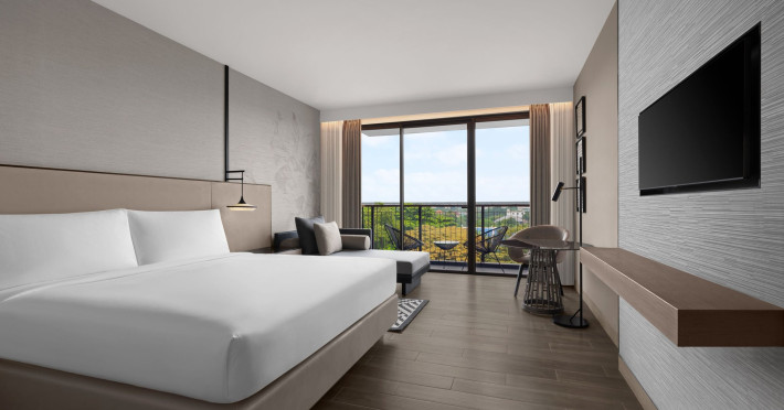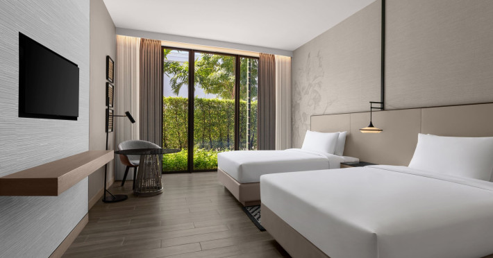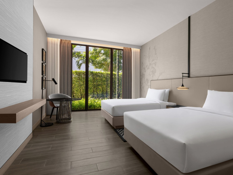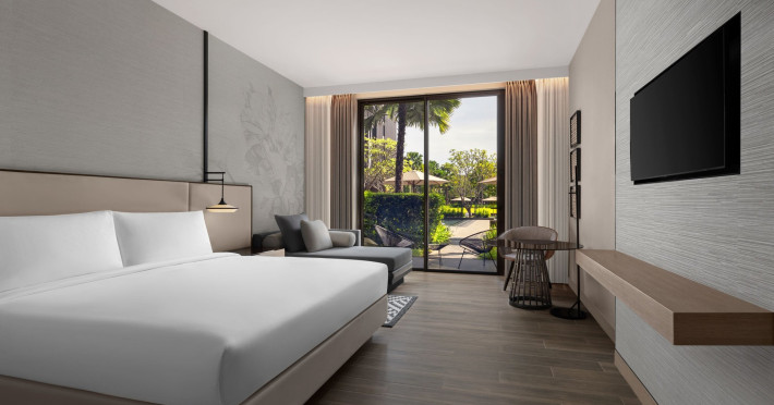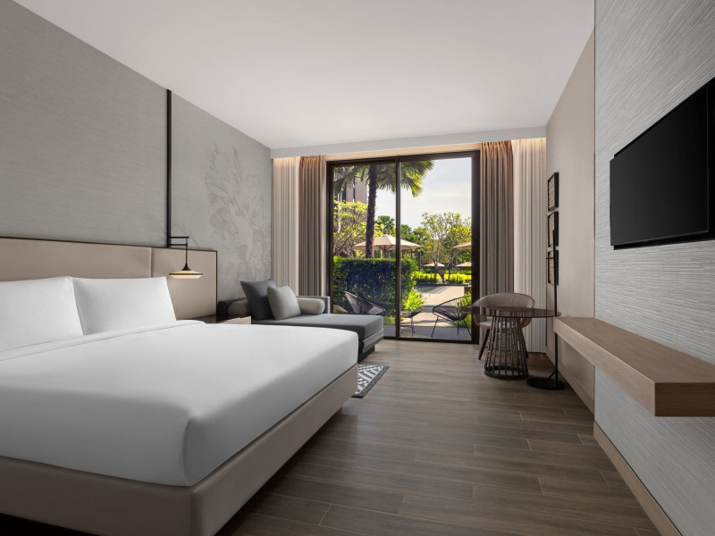 Courtyard by Marriott Bangkok Suvarnabhumi Airport is here with all you need. Our hotel near Suvarnabhumi Airport, Bangkok. Ride a free airport shuttle to the hotel and enjoy your stay your way in one of 454 modern rooms and 14 spacious suites featuring high-speed Wi-Fi, 55” flat TVs, and a mini fridge. Close the blackout curtain and have quality sleep on signature bedding. Get ready with Nirvae eco-friendly bath amenities. Stay fit in a large outdoor pool or at 24-hour fitness. Retrieve yourself with Thai massages or spa treatments to cleanse travel tension and stress. Fulfill your appetite with all-day dining with exquisite international buffets, specialty burger bar & grills, lobby deli bistro or pool bar. Host Grand Ballroom, Courtyard meeting rooms, boardrooms or outdoor spaces at your disposal for signature meetings and social events with underground parking. At Courtyard by Marriott Bangkok Suvarnabhumi Airport, we give you the best stay possible to help you pursue your passions in Bangkok.
