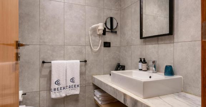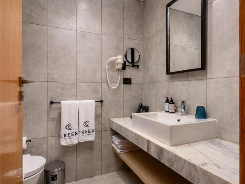 Camerele de la hotel sunt dotate cu aer condiționat, zonă de relaxare, TV cu ecran plat cu canale prin satelit, seif și baie privată cu duș, articole de toaletă gratuite și uscător de păr. Fiecare cameră este dotată cu un fierbător de apă, iar anumite camere sunt dotate cu o chicinetă cu frigider, cuptor cu microunde și minibar. La Creek Hotel and Residences El Gouna, toate camerele sunt dotate cu lenjerie de pat și prosoape.