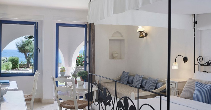 Dotari camera: Creta Maris dispune de 675 camere si suite, precum si de o vila premium cu piscina privata, distribuite in cladiri principale si intr-o zona tip sat cu bungalow-uri albe. Toate unitatile sunt dotate cu aer conditionat, Wi-Fi de mare viteza, televizor, seif si balcon sau terasa privata, cu vedere spre gradini, piscine sau mare. Camerele sunt amenajate elegant, oferind confort si functionalitate pentru toate tipurile de oaspeti.
