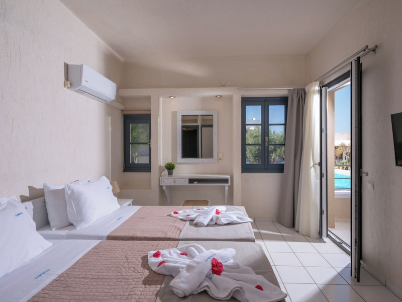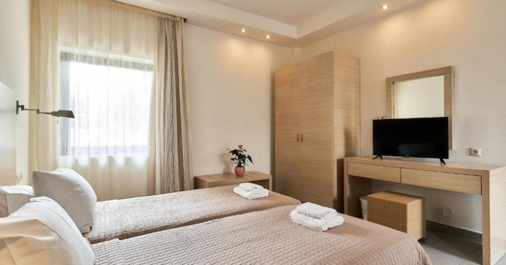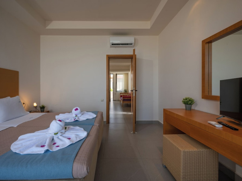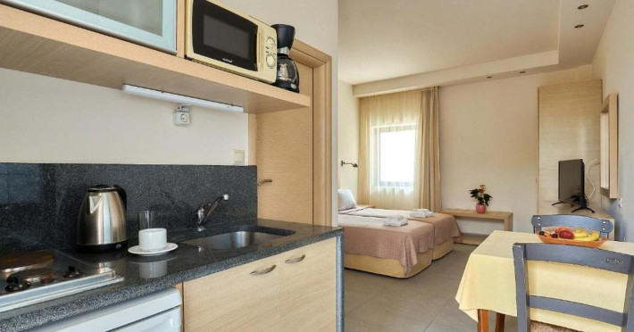 Facilities and services include express check-out/in, car parking, doctor on call, pets allowed (extra charge), safety deposit, air conditioning, bar, Baby Chairs at the Restaurant, Beach Sunbeds & Umbrellas (with extra charge), Beauty Treatment (on request), Billiard (Pool) Table, Outdoor Playground, Pool Towels (with deposit), Wi-Fi Internet Access, wheelchair access and outdoor swimming pool.Rooms feature coffee, microwave, shower, private bathroom, towels, hairdryer, television, desk and air conditioning.Check –in time is 14.00.Check –out time is 11.00 a.m.**Please note that there is a extra charge per day for bringing a dog paying directly at the hotel upon arrival.This fee covers the extra cleaning and maintenance costs associated with pet-friendly rooms. Our pet policy states the following: - Small pets only - under 7kg- The pet must be fully behaved and kept in an appropriate manner by the guest.- The pet must be kept on a leash in the hotel or on hotel property unless it is in the guest's room.- Pets may not be left unattended.- Guests are responsible for cleaning up after their pet on hotel property and in the neighborhood.- Any disturbance, such as barking, must be refrained from so as not to disturb other guests.- Guests must contact Housekeeping to arrange a convenient time to clean their room.- Guest is responsible for all property damage and/or personal injury caused by their pet.- Please do not allow your pet to jump on sofas, chairs, or beds.Address: Gournes Anopili 71500 Gouves Greece