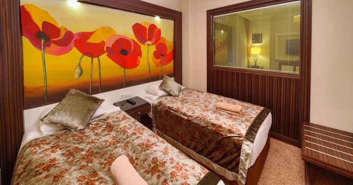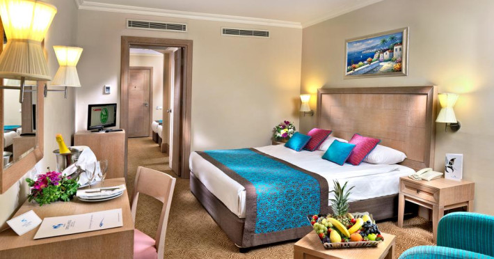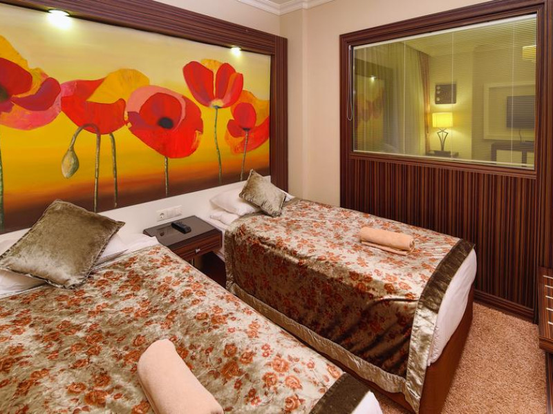 Hotelul are un numar total de 356 camere din care: camere standard (27mp, un dormitor, o baie, max3pax); camere standard cu paturi suprapuse (27mp, un dormitor cu pat matrimonial si paturi suprapuse, max 2+2pax); camere Family (40mp, se afla la primul etaj, doua dormitoare cu usa intre ele, o baie, max 4pax); camere Family cu paturi suprapuse (40mp, un dormitor cu pat matrimonial si paturi suprapuse, un alt dormitor cu paturi suprapuse sau twin, o baie, max 4+2pax), camere Pasha suits (55mp, se afla la primul etaj, un dormitor si un living, baie cu Jacuzzi, LCD TV si DVD player, max 4pax); Sultan suits (75mp, se afla la primul etaj, doua dormitoare si un living, doua bai, una cu Jacuzzi si alta cu cada si dus, LCD TV si DVD player, max 4+2pax).