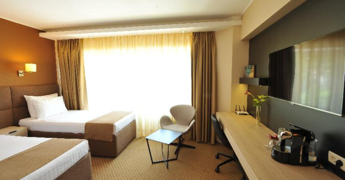 The hotel welcomes guests in a 5-storey building with a lift and 74 non-smoking rooms. The friendly staff at the reception desk are happy to answer any questions. Amenities include a cloakroom, baggage storage service, safe and currency exchange service. Wireless internet access is provided in public areas. There are a number of shops as well. Additional facilities include a newspaper stand. Guests arriving by car can park their vehicles in the garage or in the car park. Other services include room service (for a fee), a laundry service and a hotel shuttle bus. A business centre with fax machine, projector and photocopier is available.