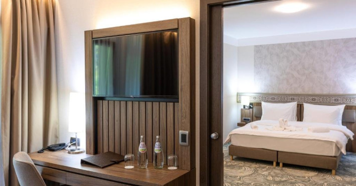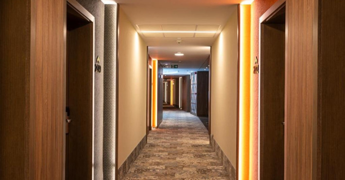 Zona de wellness a hotelului este amenajata la subsol, oferind o varietate de piscine, doua tobogane cu apa, diferite tipuri de saune, o unitate de servicii terapeutice cu asistenta medicala, servicii de masaj si un bar cu gustari si bauturi. Restaurantul, barul, sala de conferinte, sala de sport, zona pentru copii si camera de sare sunt, de asemenea, gratuite pentru oaspeti. Daca doriti sa petreceti ceva timp explorand imprejurimile sau sa participati la o gama larga de activitati de agrement, personalul nostru va fi mai mult decat bucuros sa va ajute sa gasiti cele mai bune atractii din zona. Centrul de conferinte al hotelului este complet echipat si poate gazdui pana la 240 de participanti. Cladirea in sine este conceputa pentru a fi sustenabila pentru activitati prin reducerea poluarii fonice si vizuale.