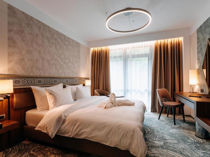 Hotelul are 104 camere nefumatoare complet echipate. Selectia de camere si apartamente confortabile, decorate elegant si complet echipate sunt garantia relaxarii si regenerarii. Camerele moderne cu design interior de bun gust au balcon sau luminatoare proprii, in timp ce patru apartamente vin cu toate utilitatile de care ar putea avea nevoie cel mai pretentios oaspete. Camera dubla clasica, formata dintr-o camera de lux, o baie, living, toate dotate cu facilitati de ultima generatie, mini-bar, linie telefonica direct, uscator de par, fier de calcat si masa de calcat (la cerere), blocare electronica a cardului cu cheie, detector de fum, TV LCD cu ecran plat, suport pentru bagaje, TV prin satelit, baie eleganta cu cabina de dus, dulap, aparat de cafea, scaun tapitat cu cotiere, seif. Camera dubla + fotoliu extensibil: formata dintr-o camera de lux, o baie, living, toate dotate cu facilitati de ultima generatie, mini-bar, linie telefonica direct, uscator de par, fier de calcat si masa de calcat (la cerere), blocare electronica a cardului cu cheie, detector de fum, TV LCD cu ecran plat, suport pentru bagaje, TV prin satelit, baie eleganta cu cabina de dus, dulap, aparat de cafea, scaun tapitat cu cotiere, seif, fotoliu extensibil cu lenjerie de pat. Apartamentul are tot ce ai nevoie pentru sejurul tau. Un ansamblu mobilat selectiv format dintr-un living plin de farmec si un dormitor insotit de un dressing amenajat convenabil, un lounge distins, o baie, un balcon, toate dotate cu facilitati de ultima generatie, mini-bar, linie telefonica direct, uscator de par, fier de calcat si masa de calcat (lacerere), blocare electronica a cardului cu cheie, detector de fum, TV LCD cu ecran plat, suport pentru bagaje, TV prin satelit, baie eleganta cu cabina de dus, dulap dulap, aparat de cafea, canapea extensibila, seif.