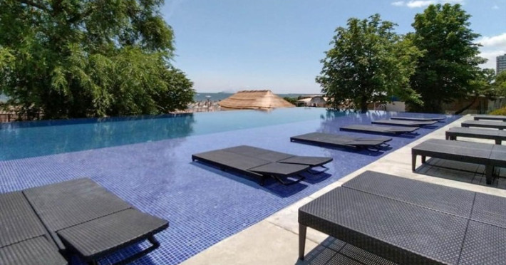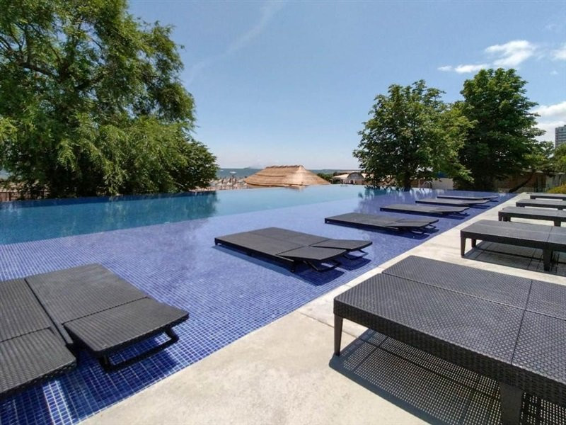 Piscina hotelului Cupidon este tip infinity si este construita langa mare. Are o adancime de 140 cm si este amenjata in jur cu sezlonguri si umbrele. Plaja privata a hotelului are 9000 mp si este rezervata exclusiv turistilor cazati in hotel, care au asigurate pe plaja 2 sezlonguri si 1 umbrela pentru fiecare camera rezervata.