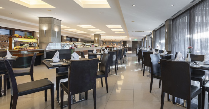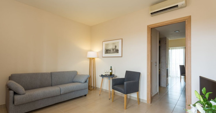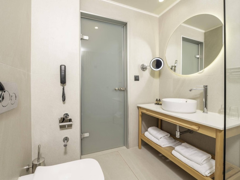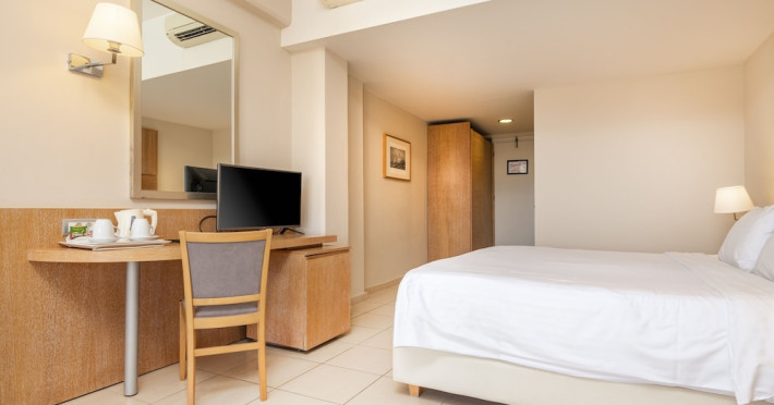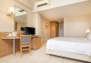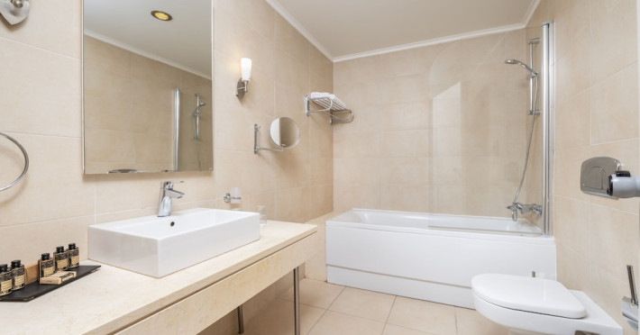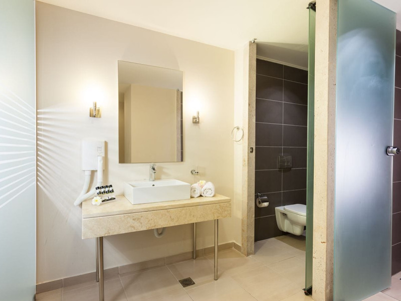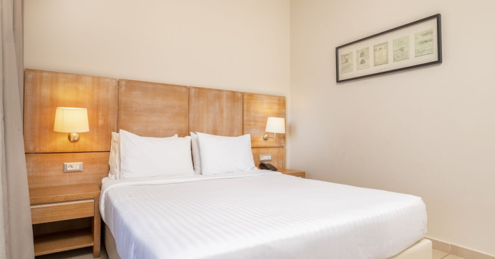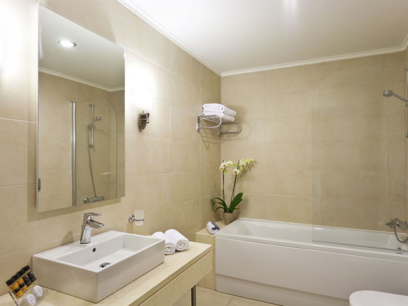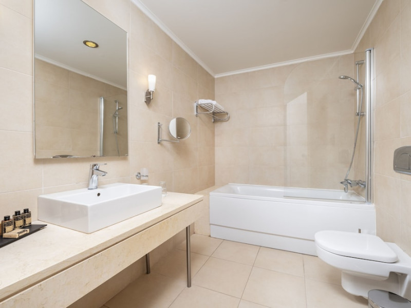 The hotel features 170 air-conditioned rooms with refrigerators, minibars, and private furnished balconies. Complimentary wireless internet access and satellite programming are available in each room. Private bathrooms include deep soaking bathtubs and complimentary toiletries.