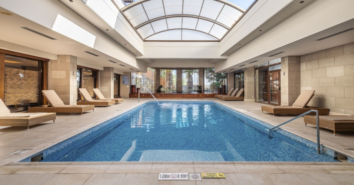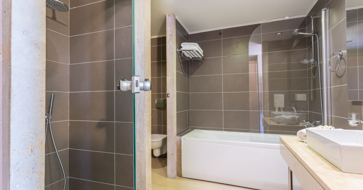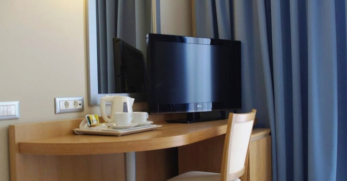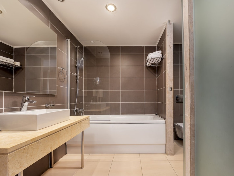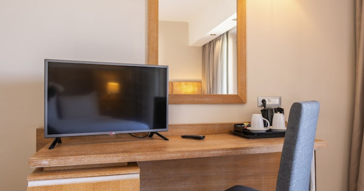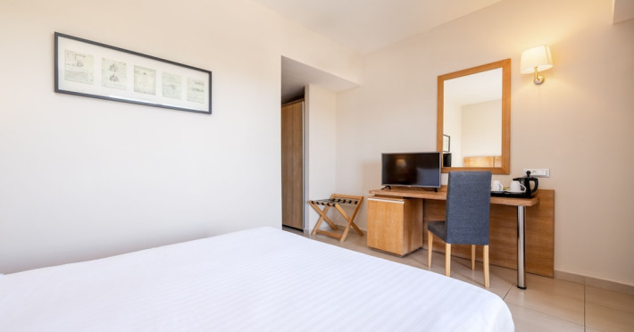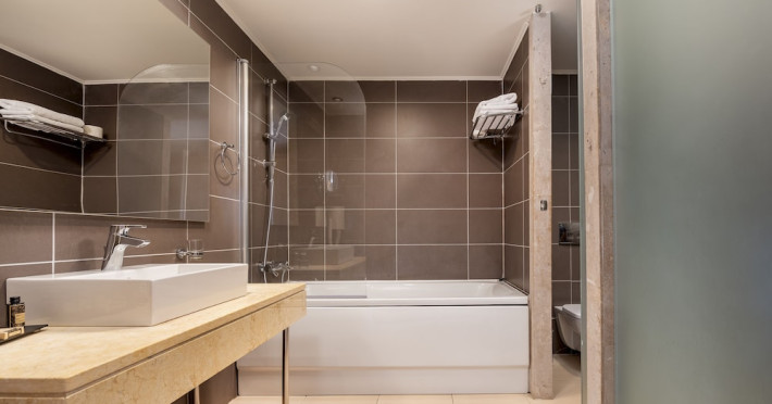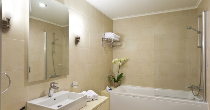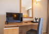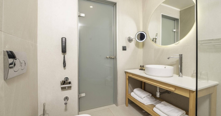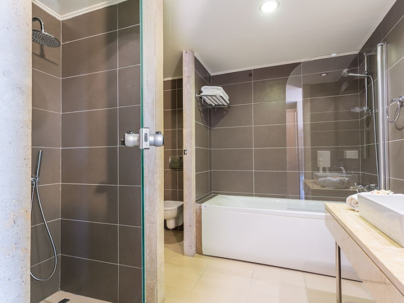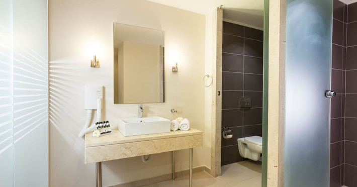 The hotel features 170 air-conditioned rooms with refrigerators, minibars, and private furnished balconies. Complimentary wireless internet access and satellite programming are available in each room. Private bathrooms include deep soaking bathtubs and complimentary toiletries.