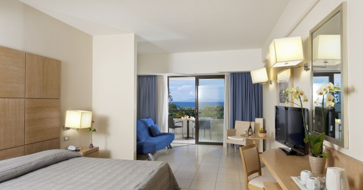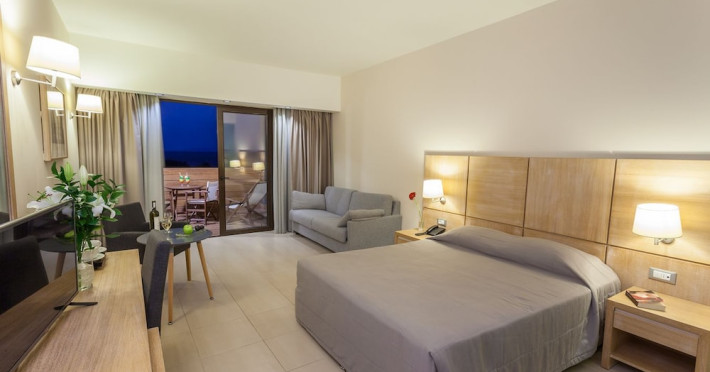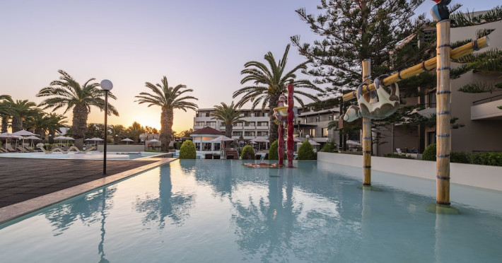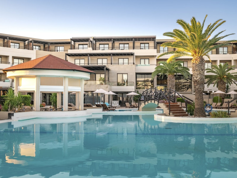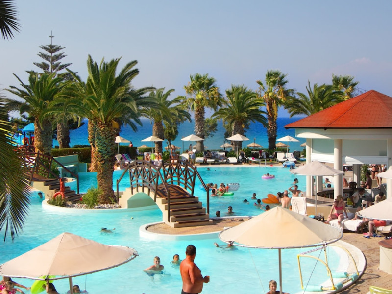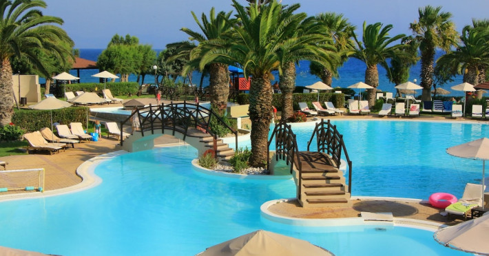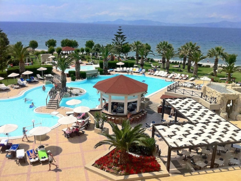 Located on Ialyssos Beach in Rhodes, the all-inclusive D'Andrea Mare Beach Hotel offers guests a range of amenities and services. Guests can relax at the spa with massages, body treatments, and facials, or enjoy recreational facilities including outdoor and indoor pools and a lazy river. Dining options include a main restaurant, a snack bar/deli, a bar/lounge, and a poolside bar. A complimentary buffet breakfast is served daily from 7:00 AM to 10:00 AM.