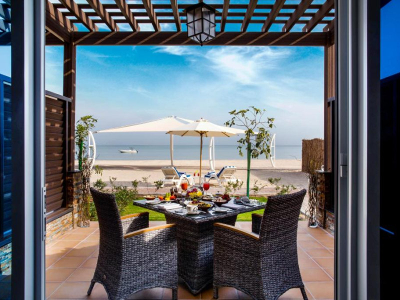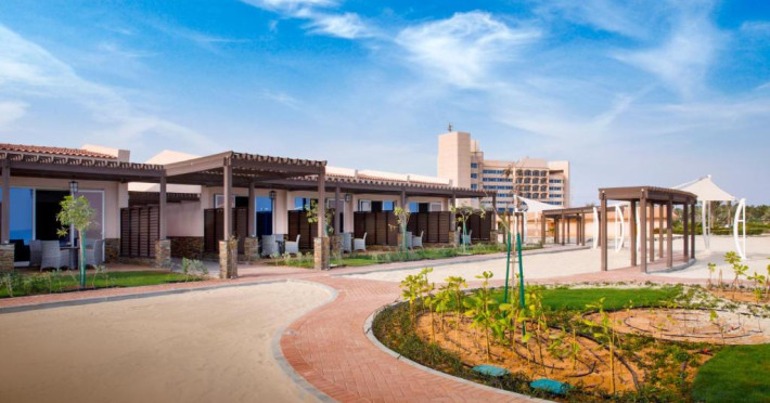 Stațiunea Danat Jebel Dhanna are o varietate de vile, camere și apartamente pe malul apei.