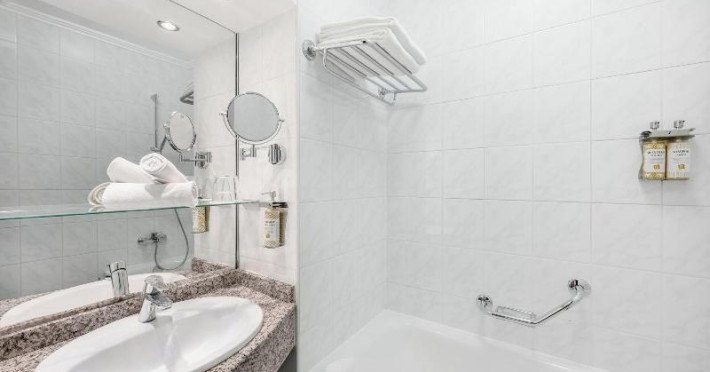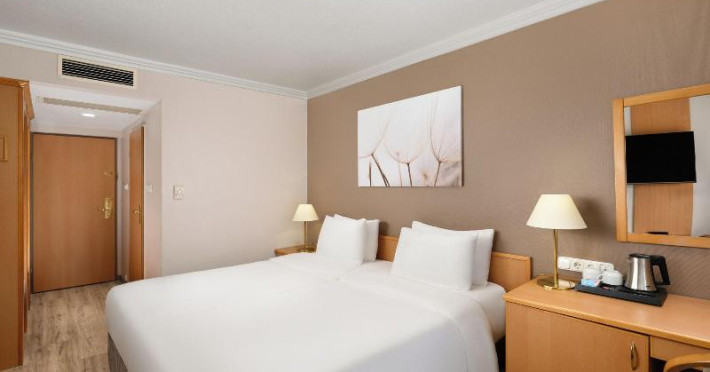 379 rooms, including 377 double rooms, are located on 11 storeys and can be reached by lift. Multilingual staff (English, German, French) at the reception are happy to assist guests at the reception desk round the clock. Check-in and check-out are available 24 hours a day. Amenities include a cloakroom, baggage storage service, safe, currency exchange service and drinks machine. Wireless internet access is provided in public areas. The tour desk offers assistance with booking excursions. The hotel has a range of facilities for guests with disabilities. The hotel has wheelchair-accessible facilities. A number of shops, including a souvenir shop, are great for shopping or just browsing. Additional facilities include a TV room. Guests arriving by car can park their vehicles in the garage (for a fee) or in the car park. Further services and facilities include a 24-hour security service, a babysitting service, a childcare service, a car hire service, medical assistance, a transfer service, room service (for a fee), a laundry service, a hairdresser, a coin-operated laundry and a hotel shuttle bus. Daily newspapers are available for purchase. A business centre with fax machine and projector is available.