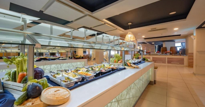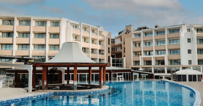 Dotari camere: Hotelul DB Seabank Resort SPa dispune de 536 camere (stadard, cu vedere a mare sau la piscina, Family room si junior suite. Acestea sunt dotate cu aer conditionat, minibar, televizor LCD, programe prin satelit, internet Wi-Fi gratuit, baie privata cu cada si dus, articole de toaleta gratuite, uscator de par, birou, seif, curatenie zilnica. Facilitati hotel: 6 restaurante cu bucatarie internationala, 2 baruri interioare, 2 baruri la piscina, piscina exterioara, piscina interioara, centru spa complet echipat, sauna, jacuzzi, sala de fitness, sala de jocuri video, club pentru copii, Wi-Fi gratuit in toate zonele, receptie 24/7, servicii de babysitting (contra cost), cafenea, room-service (in intervale orare limitate), parcare gratuita, divertisment zilnic pentru adulti si copii, acces direct la plaja, facilitati pentru persoane cu mobilitate redusa.