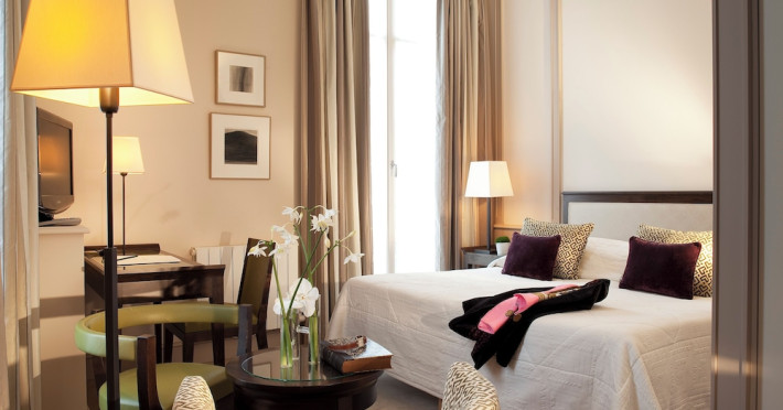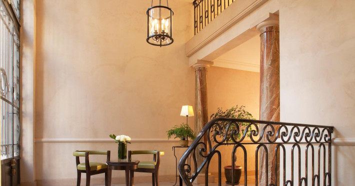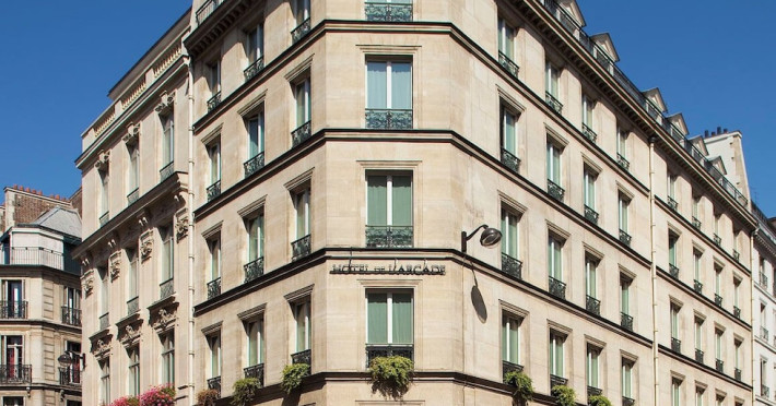 Located in the 8th Arrondissement of Paris, Hôtel de l'Arcade is near Madeleine and within walking distance of Rue du Faubourg Saint-Honore, Palais Garnier, Champs-Élysées, and Rue de Rivoli. Madeleine Metro Station is nearby, providing direct access to Gare de Lyon Train Station. The hotel offers 48 air-conditioned and soundproofed guestrooms featuring free high-speed WiFi, a minibar, a safe, a desk, and a private bathroom with a hairdryer and separate bathtub and shower. Amenities include a 24-hour reception with concierge services, a computer station, complimentary newspapers in the lobby, dry cleaning/laundry services, and a fireplace in the lobby. A buffet breakfast is available for a fee. Limited parking is available onsite. The De l'Arcade is a Tourist hotel. Located in Paris area. The nightlife/restaurants are located in the hotel.