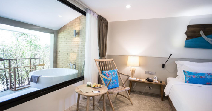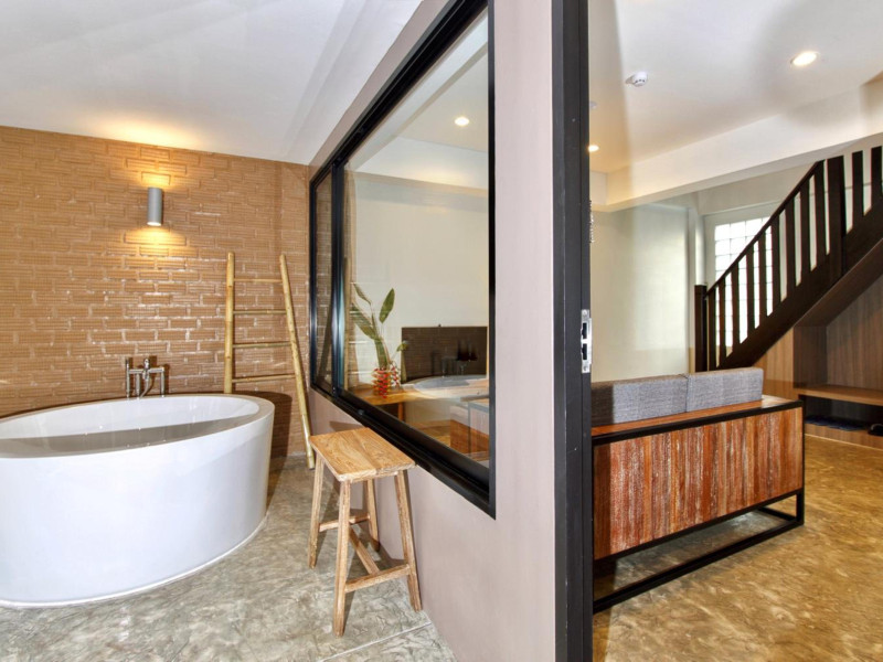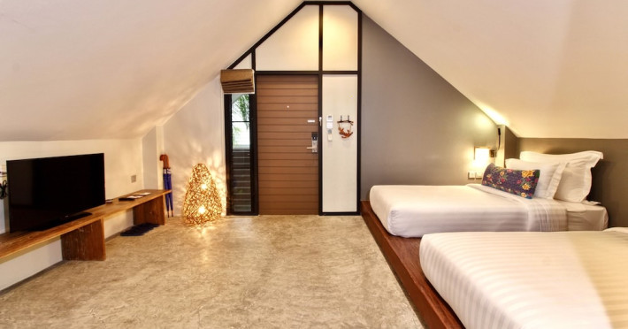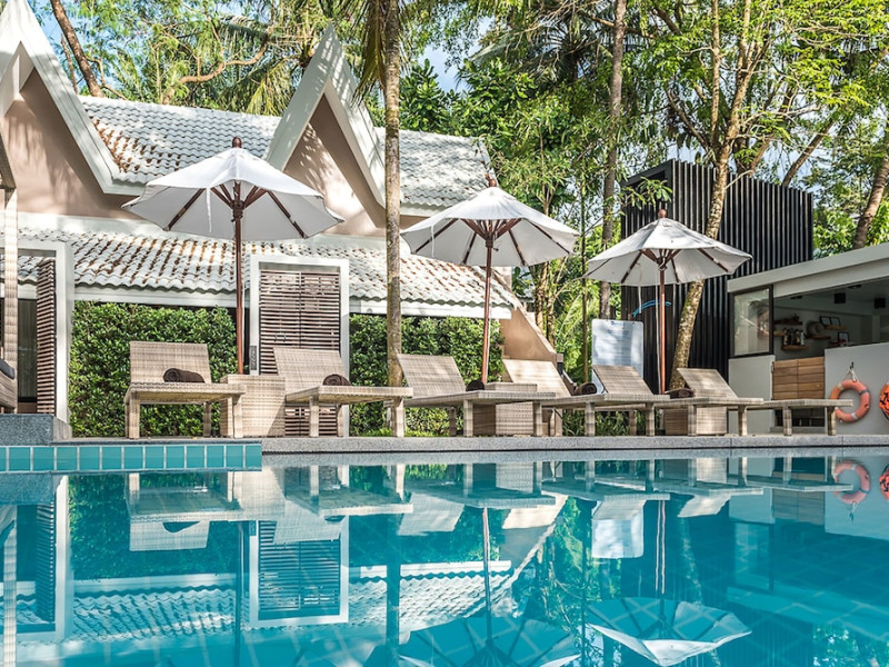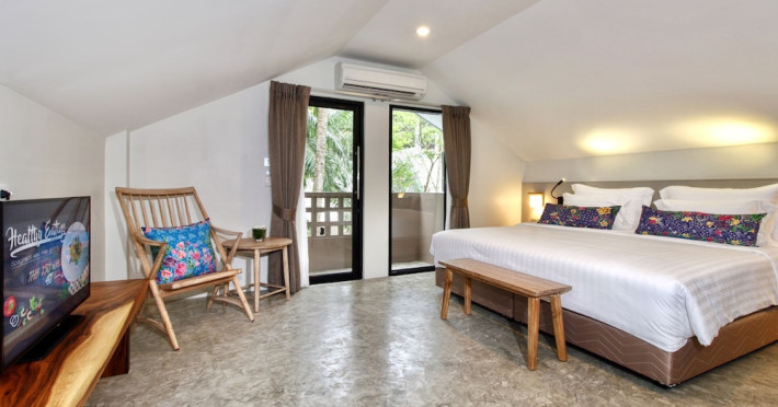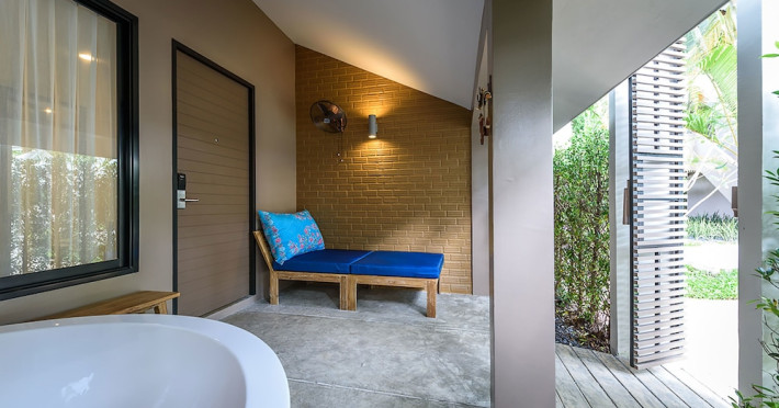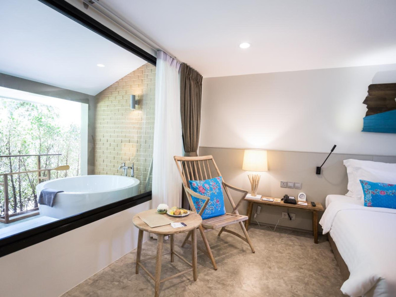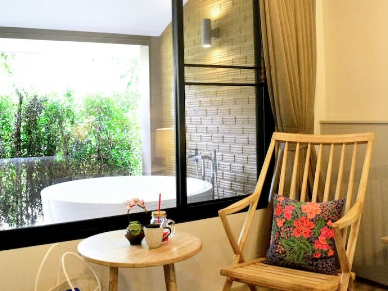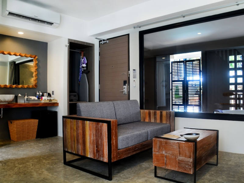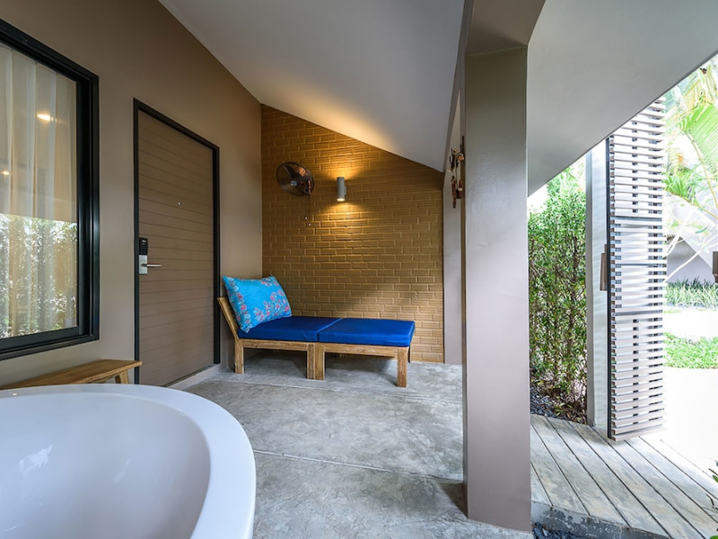 Deevana Krabi Resort is a boutique hotel nestled among plantations and greenery, within walking distance of Ao Nang and Nopparat Thara Beaches. It features 66 air-conditioned rooms, each with a private balcony. Rooms include complimentary Wi-Fi, LCD televisions with cable programming, minibars, and private bathrooms with showers, complimentary toiletries, and bidets. Some rooms offer outdoor bathtubs. Guests can enjoy international cuisines at the on-site restaurant and relax at the bar/lounge or poolside bar. The resort offers two swimming pools, a fitness room, massage services, concierge services, a business center, and a 24-hour front desk. Additional amenities include a complimentary area shuttle, dry cleaning/laundry services, and free self-parking. Airport transfers are available for a surcharge. The DEEVANA KRABI RESORT is a hotel.