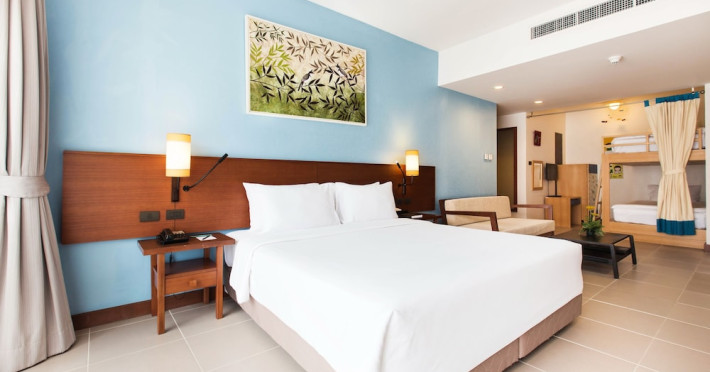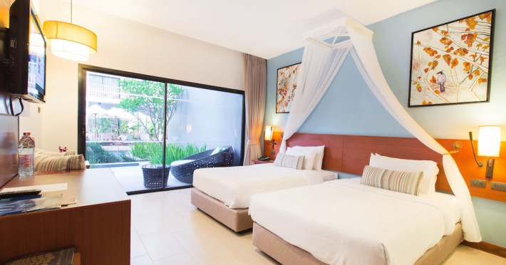 Deevana Plaza Krabi Aonang offers stylish accommodation in low-rise buildings, a short distance from Aonang and Noppharat Thara Beaches. It features a restaurant and bar, three outdoor swimming pools, a kid's pool, and a spa. Guests can enjoy complimentary wireless internet access throughout the hotel. Each of the 213 air-conditioned rooms and suites includes a private balcony, a flat-screen cable TV, a minibar, and a private bathroom with complimentary toiletries and a hair dryer. Dining options include a restaurant serving Thai and international dishes, a poolside bar, and room service during limited hours. Buffet breakfasts are available daily for a fee. The hotel offers a business center, meeting and event facilities, concierge services, dry cleaning/laundry services, and a complimentary shuttle operating within 2 km. Airport transportation is available for a surcharge. Free self-parking is available onsite. Guests can also enjoy a fitness center. The hotel is located a 30-minute drive from Krabi International Airport. The Deevana Plaza Krabi Aonang is a Child Friendly, Honeymoon, Leisure, Resort, Tourist hotel. Located in Beach - Ao Nang Beach area. The nightlife/restaurants are easily accessible by taxi or bus from the hotel.