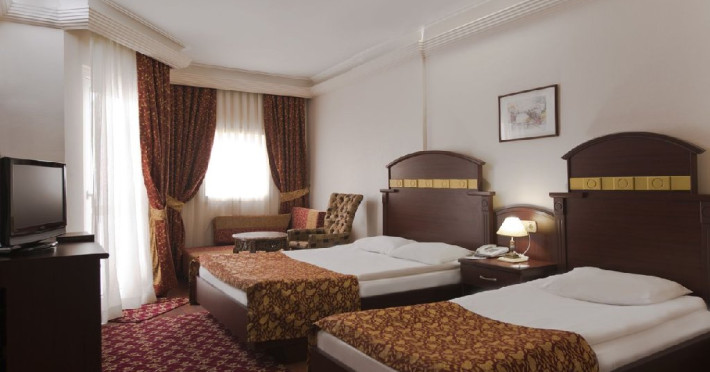 Dotari camere: Camerele hotelului sunt dotate cu: aer conditionat, TV LCD, telefon, minibar (bauturi soft gratuit), seif, acces wifi, facilitati preparare ceai/cafea, uscator de par, baie cu cabina de dus, balcon. Camerele Family sunt formate din 2 dormitoare separate cu usa.