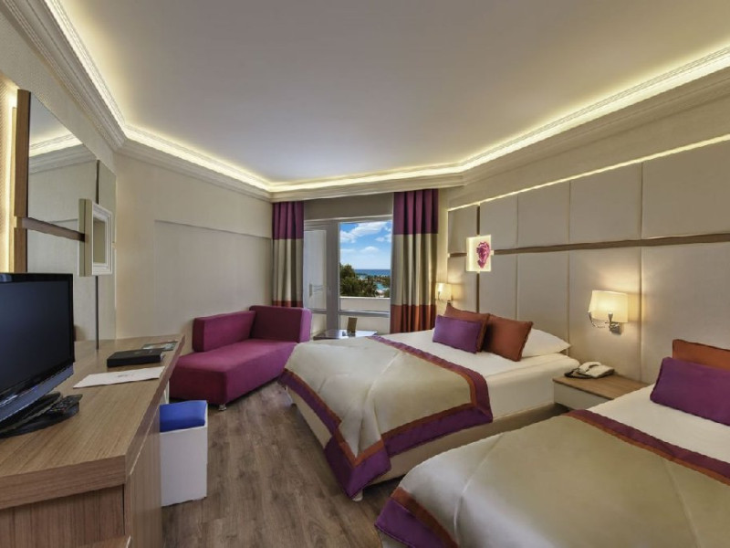 Facilitati hotel: Hotelul ofera oaspetilor sai urmatoarele facilitati: restaurant principal, 6 restaurante A la Carte (italian, chinezesc, japonez, turcesc, pescaresc si sushi), baruri, discoteca, 3 piscine exterioare pentru adulti, 3 piscine pentru copii, piscina cu 8 tobogane, Luna Park, sala fitness, centru SPA, baie turceasca, sauna, teren de tenis, volei pe plaja, tenis de masa, programe de animatie, muzica live, loc de joaca, animatie, miniclub (4-12 ani), cinema, Luna Park, minidisco. Servicii cu plata: bauturi de import, biliard, masaj si alte tratamente in centrul SPA, servicii de curatatorie si calcatorie, servicii medicale, coafor, sporturi acvatice, internet cafe, camera de jocuri, magazine, echipament si nocturna pentru tenis.