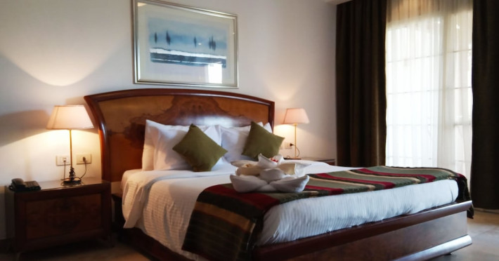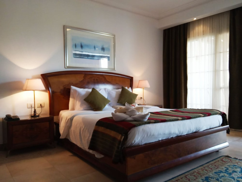 Delta Sharm Resort, located in Sharm El Sheikh's El Hadaba district, offers a tranquil escape with access to a garden. The resort is approximately a 5-minute drive from Naama Bay and 15 minutes from Sharm El Sheikh International Airport. Accommodations are air-conditioned and feature a flat-screen TV. Some units include a fully equipped kitchen with a refrigerator, microwave, stovetop, and kitchenware, as well as a balcony or terrace with pool or garden views. Free WiFi is available. Guests can enjoy multiple swimming pools, including a heated pool and a kids' pool, as well as spa facilities, a health club, and a gym. Dining options include a restaurant, bar/lounge, and poolside bar. The resort also offers a 24-hour front desk, free private parking, and a paid airport shuttle service. Nearby attractions include The Heavenly Cathedral, Al Musterfa Mosque, and Ras Mohammed National Park. The Delta Sharm Resort is a Tourist hotel. The nightlife/restaurants are easily accessible by taxi or bus from the hotel.