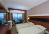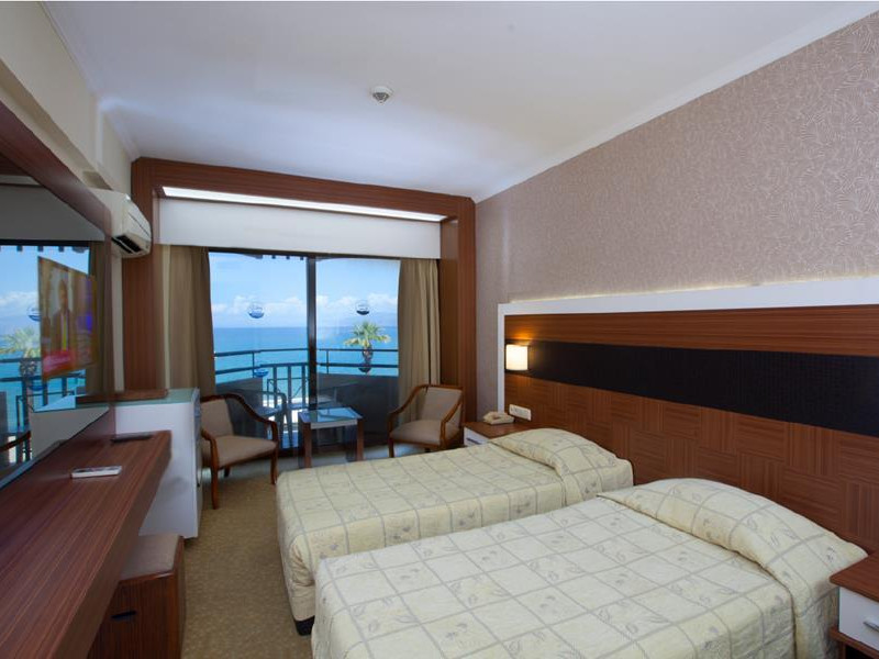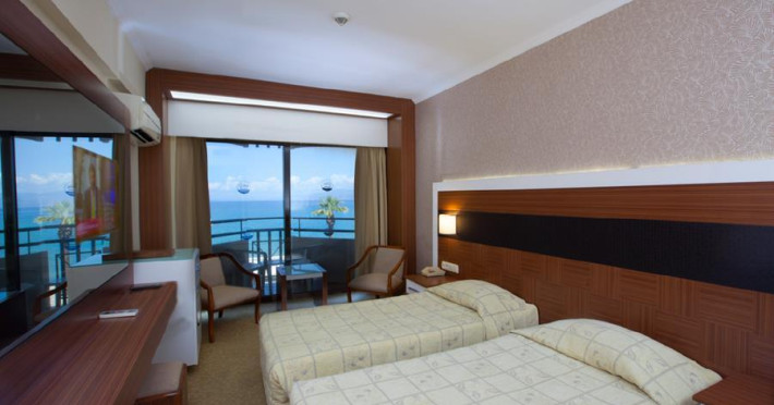 ROOMS AND BEDS; 87 Rooms-174 Beds- 84 Standard Rooms- 3 Suites, Size of Standard rooms 26m2, Size of Suite rooms 50m2, Balcony, chairs at balcony, Direct Dial Telephone, Bathroom (bathtub), Hair Dryer, Minibar, Wake up service, Safety Box, 24 hrs Room Service, Satellite TV, Music Broadcast, wireless, Split air Conditioning, Center Heating, Floor Covering Carpet, Sea and Land View, Room Cleaning 7/7, Towel and Sheets Change 7/3.
