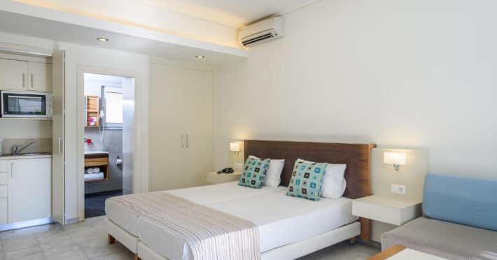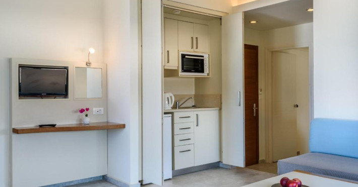 Cazare confortabilă: Fiecare apartament are aer condiționat, chicinetă, balcon și baie privată. Facilitățile suplimentare includ o zonă de luat masa, o canapea extensibilă și un birou, asigurand un sejur confortabil.