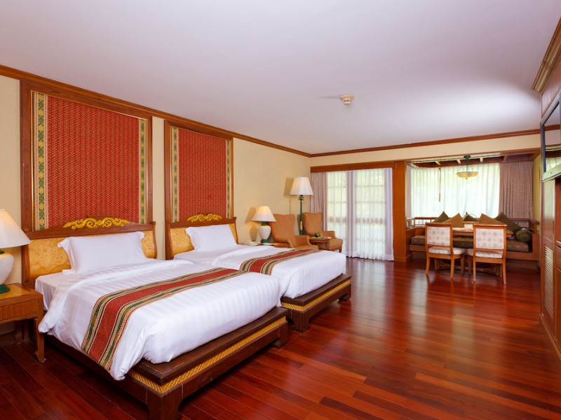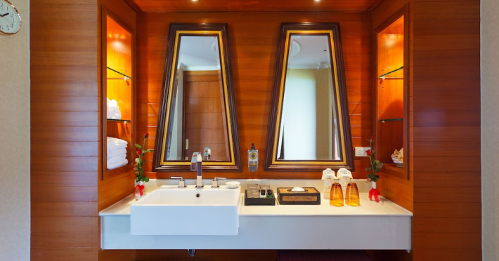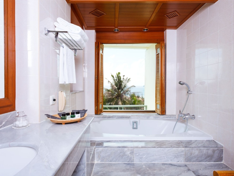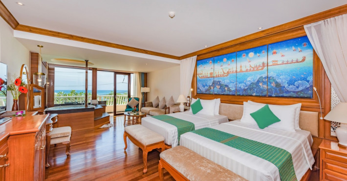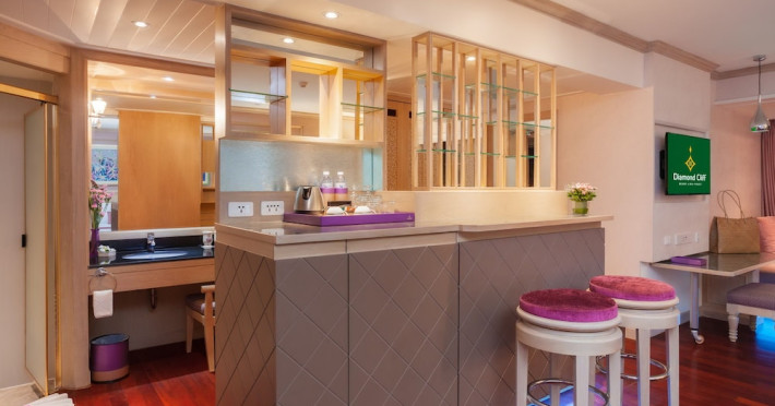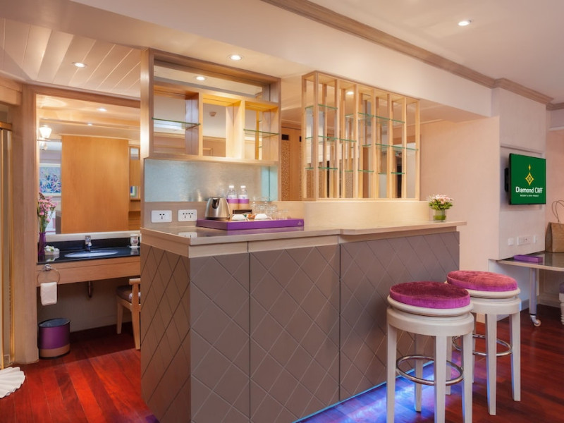 Camerele de la acest complex includ climatizare, o zonă de relaxare, un televizor cu ecran plat cu canale prin cablu, o cutie de valori și o baie proprie cu duș, articole de toaletă gratuite și un uscător de păr. Baia proprie oferă o cadă, papuci de casă și halate de baie. La Diamond Cliff Resort & Spa - SHA Extra Plus, camerele au lenjerie de pat și prosoape.