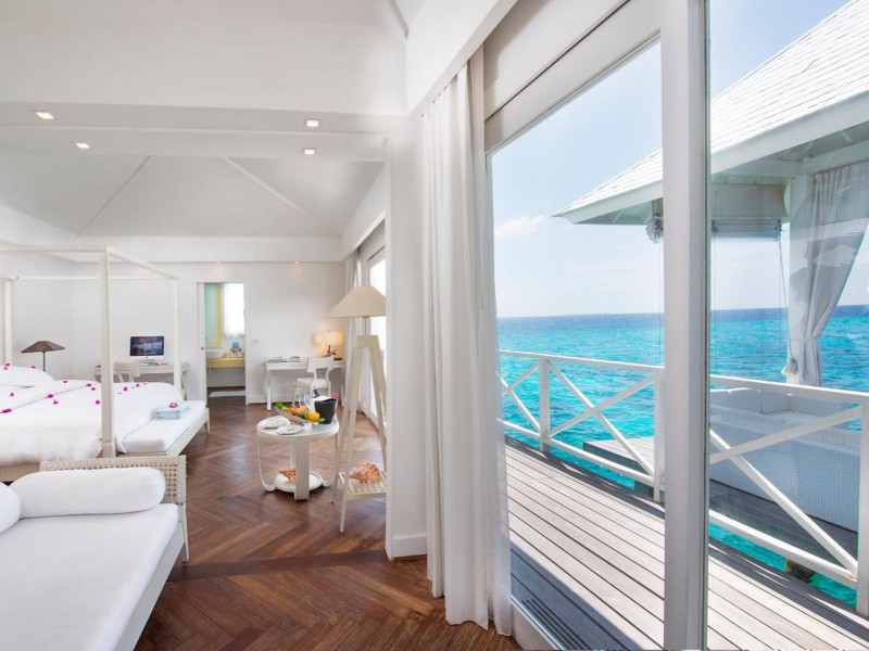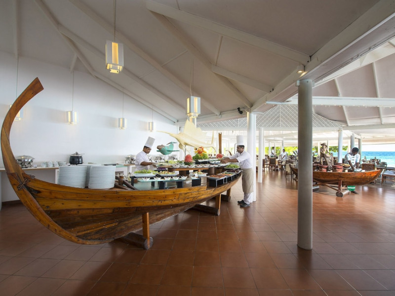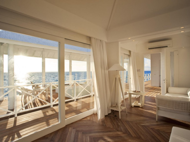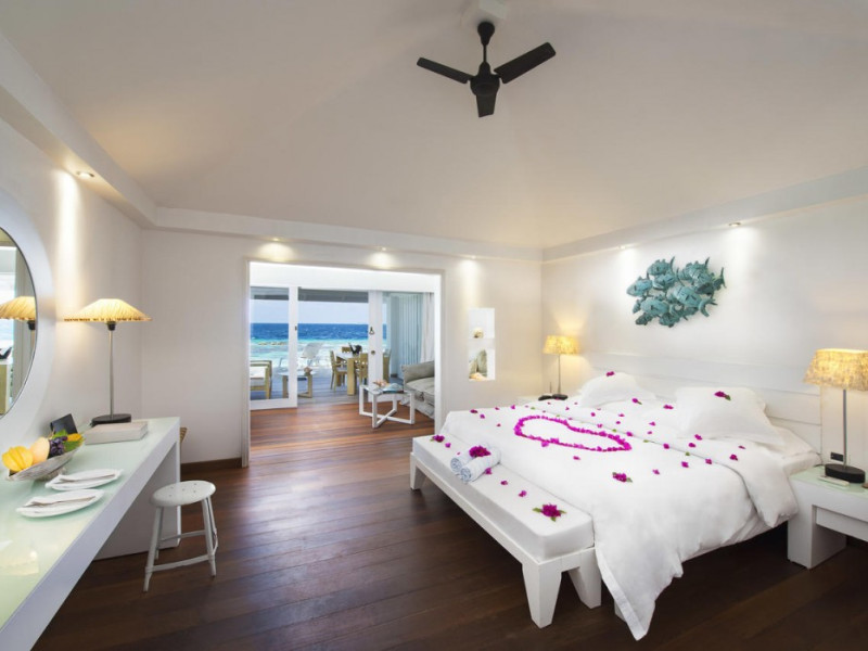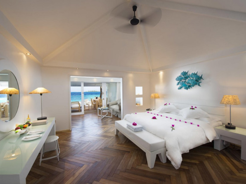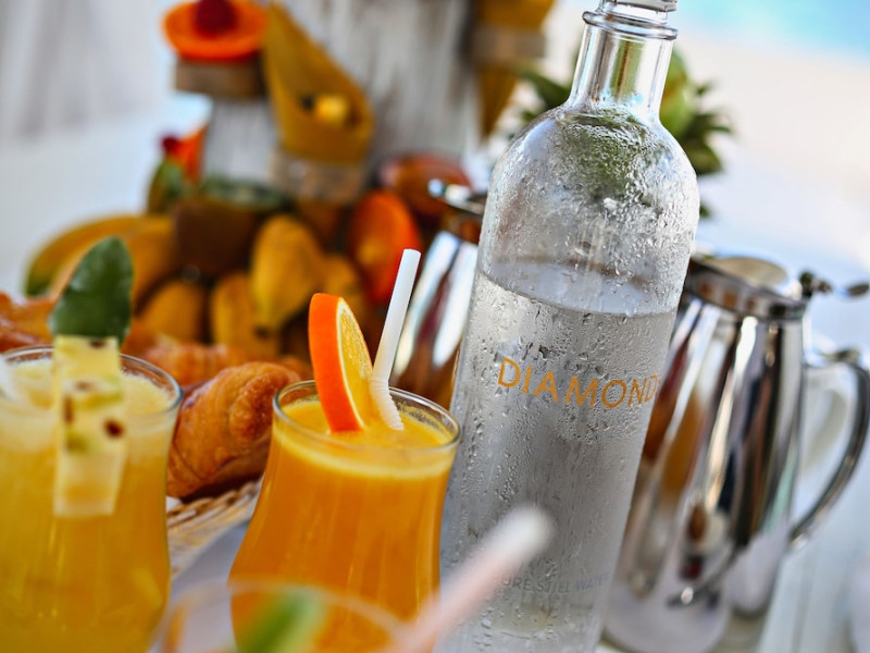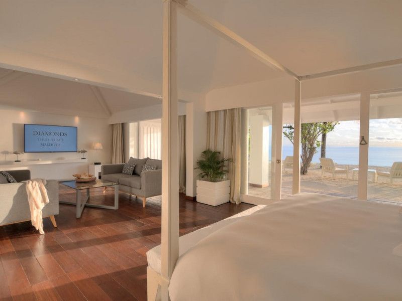 Diamonds Thudufushi Beach & Water Villas - All Inclusive is a smoke-free resort located in Thudufushi Island, a short seaplane flight from Malé International Airport. Offering all-inclusive rates (with some exclusions for specific restaurants, dinners, beverages, and amenities), the resort features 66 air-conditioned rooms with minibars (stocked with some free items), shower/tub combinations, complimentary toiletries, hair dryers, phones, safes, and coffee/tea makers. Complimentary Wi-Fi is available throughout the resort. Guests enjoy complimentary breakfast and have access to five restaurants offering a variety of cuisines including Italian, Asian, and Maldivian dishes, fresh seafood, and international options. Three bars/lounges are available for alcoholic beverages and refreshments. The resort boasts a full-service spa, a hair salon, a business center, luggage storage, laundry facilities, and a library with books, games, and a Nintendo Wii. Beach access is provided, and the resort offers a range of water sports including canoeing, waterskiing, and deep-sea fishing, as well as a dive center. Airport transfers are available for a surcharge. Bungalows offer direct beach access and private verandas, while overwater villas feature large terraces leading to the lagoon. Some bungalows include open-air showers. The Diamonds Thudufushi Beach & Water Villas is a hotel.