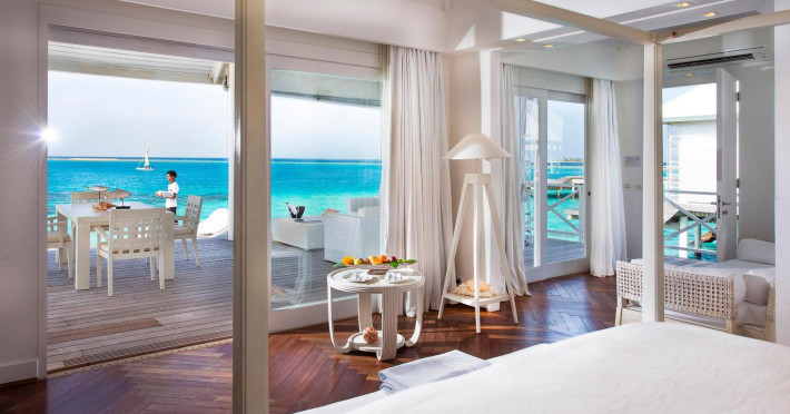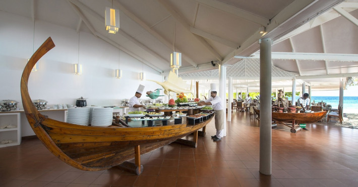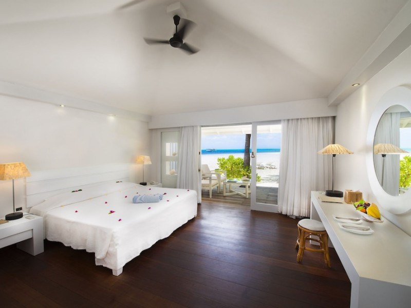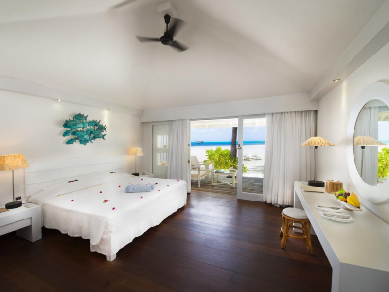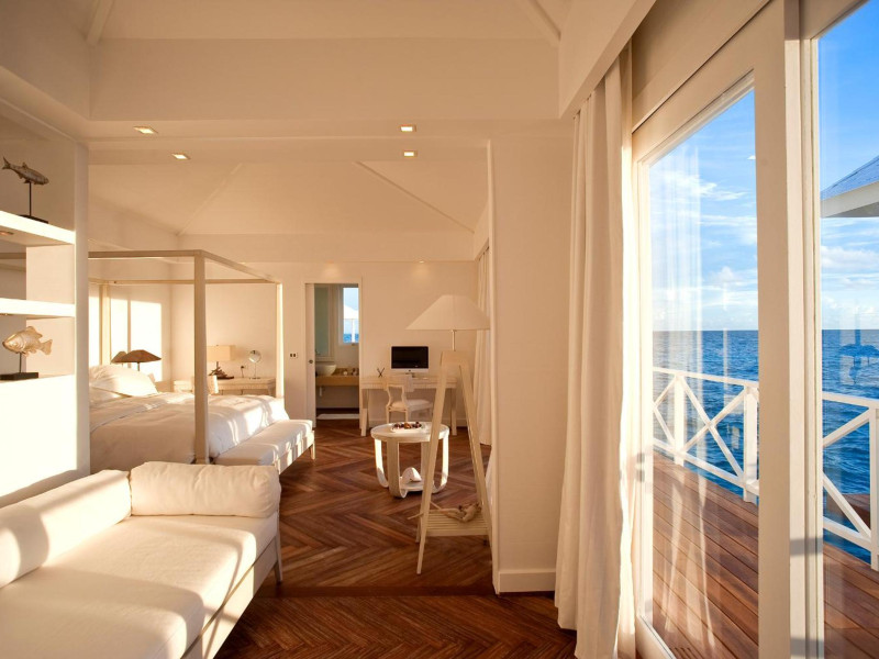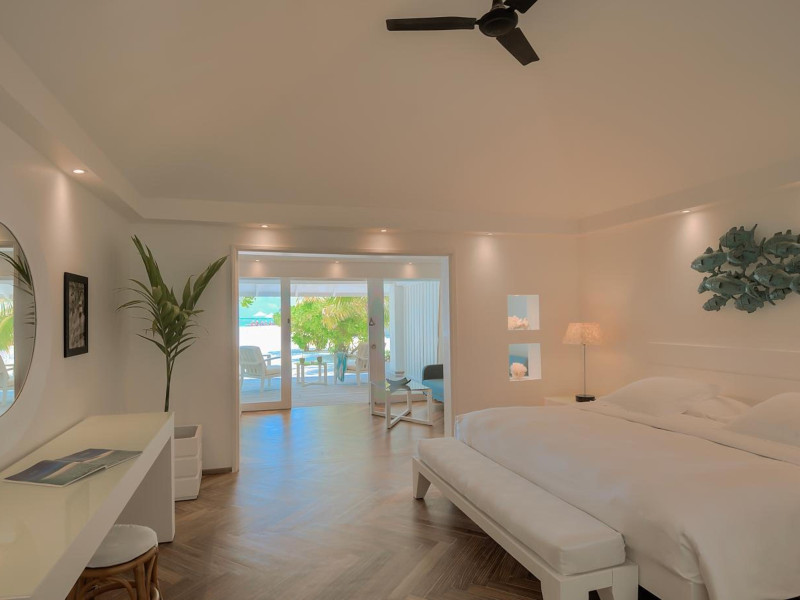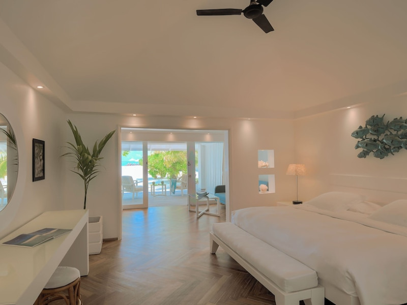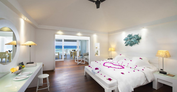 Diamonds Thudufushi Beach & Water Villas - All Inclusive is a smoke-free resort located in Thudufushi Island, a short seaplane flight from Malé International Airport. Offering all-inclusive rates (with some exclusions for specific restaurants, dinners, beverages, and amenities), the resort features 66 air-conditioned rooms with minibars (stocked with some free items), shower/tub combinations, complimentary toiletries, hair dryers, phones, safes, and coffee/tea makers. Complimentary Wi-Fi is available throughout the resort. Guests enjoy complimentary breakfast and have access to five restaurants offering a variety of cuisines including Italian, Asian, and Maldivian dishes, fresh seafood, and international options. Three bars/lounges are available for alcoholic beverages and refreshments. The resort boasts a full-service spa, a hair salon, a business center, luggage storage, laundry facilities, and a library with books, games, and a Nintendo Wii. Beach access is provided, and the resort offers a range of water sports including canoeing, waterskiing, and deep-sea fishing, as well as a dive center. Airport transfers are available for a surcharge. Bungalows offer direct beach access and private verandas, while overwater villas feature large terraces leading to the lagoon. Some bungalows include open-air showers. The Diamonds Thudufushi Beach & Water Villas is a hotel.