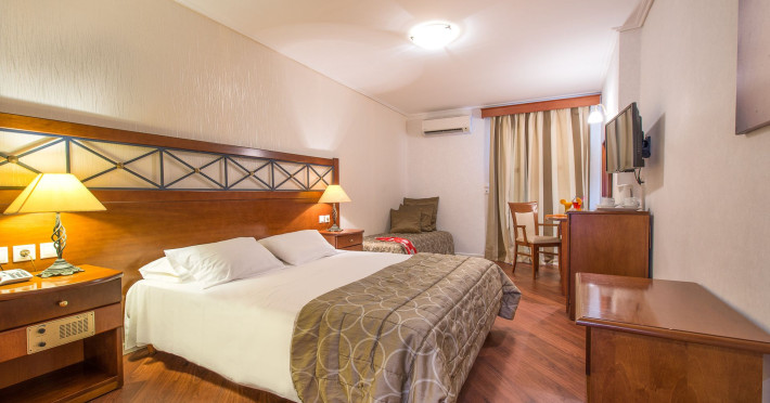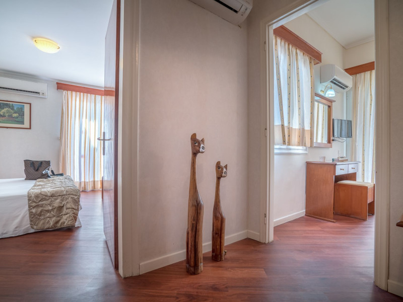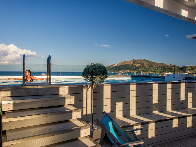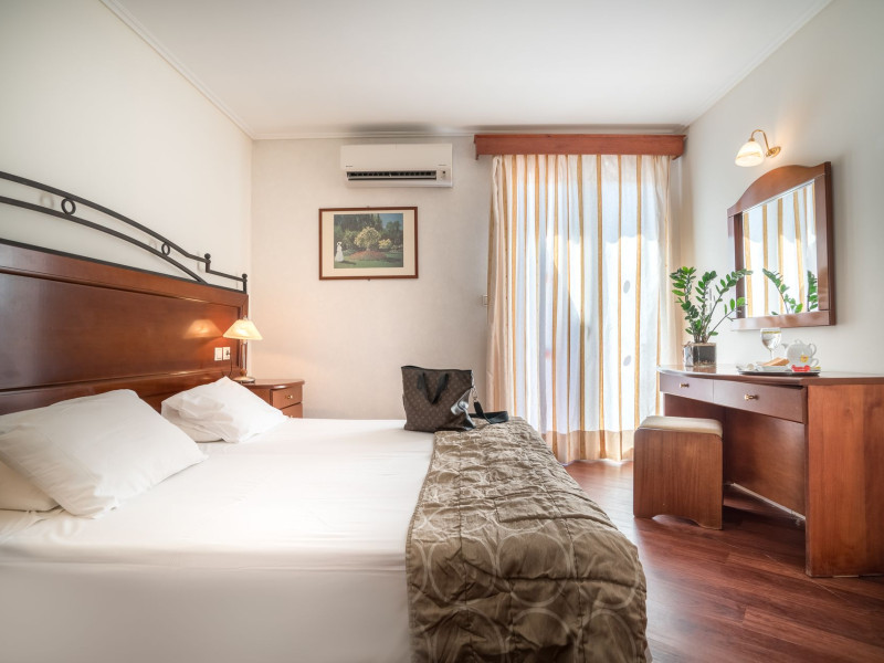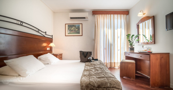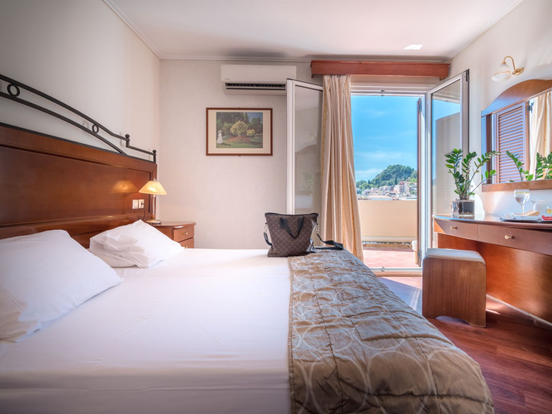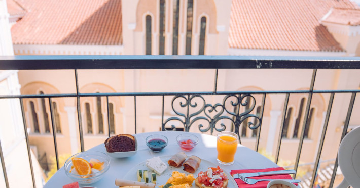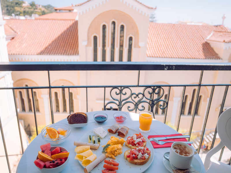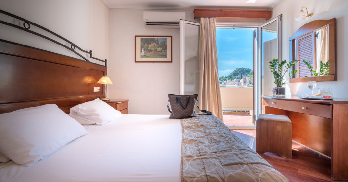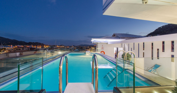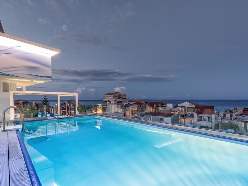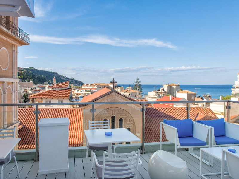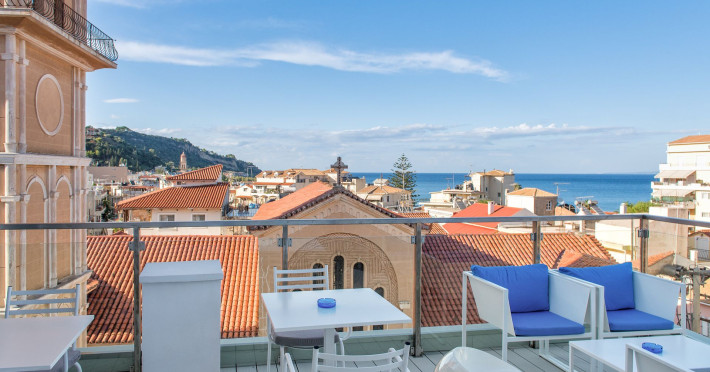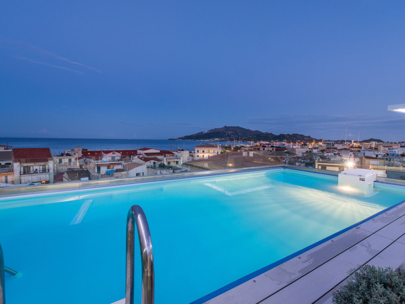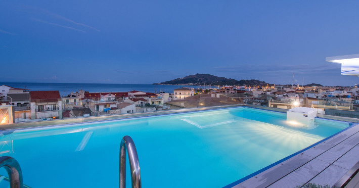 The hotel’s centrally position in the Venetian Square of St. Marcos next to the Catholic Church and only 200 m. from the nearest beach in Zakynthos town is ideally located for sightseeing or business. The hotel's location, its sociable ambiance, refined comforts and impeccable service make it one of the city's premier hotels. With a history dating back to 1972, Diana Hotel has undergone a rebirth and still operates under the tradition of providing quality to its customers in conjunction with competitive prices and until now has achieved to follow the dynamic tourism market of the Island. The 45 rooms of Diana Hotel combine the comforts of a modern hotel with the personal care and friendly atmosphere of a family owned business. The rooftop pool Bar is the ideal meeting place for our guests and business people. The selected soft background music creates an intimate atmosphere, suitable for conversation and the view is just amazing. It is a perfect place when looking for a quiet corner to escape, or simply a comfortable place to meet friends. *Rosto rooftop pool age policy (16+).