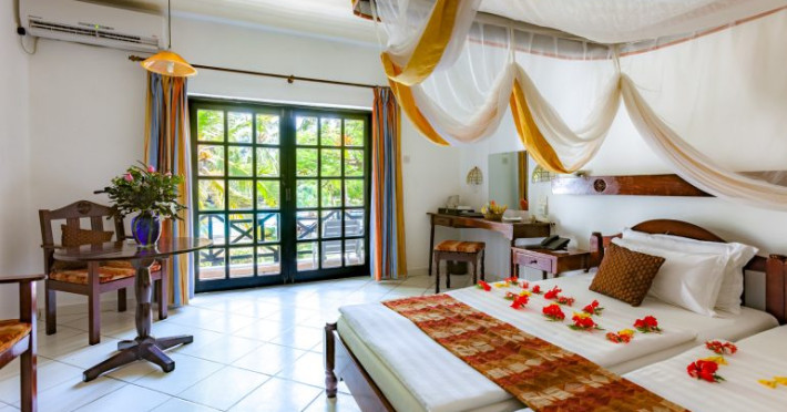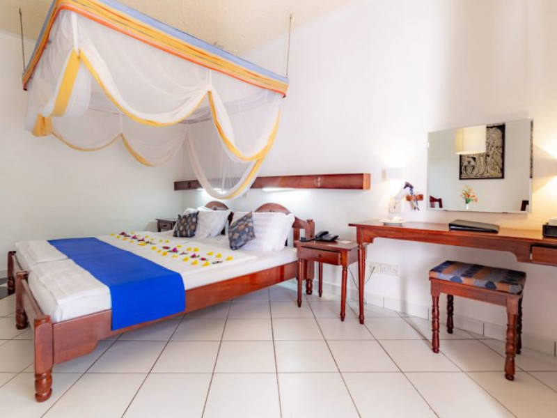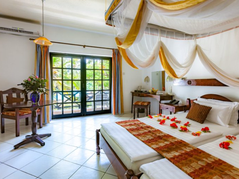 Toate camerele sunt decorate cu mobilier din lemn local, in stil african si sunt dotate cu plase de tantari, aer conditionat, seif, TV satelit, mini-bar, facilitati pentru preparare ceai, baie cu dus si uscator de par, balcon.