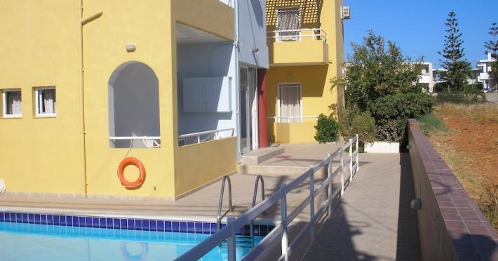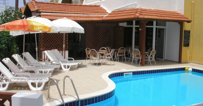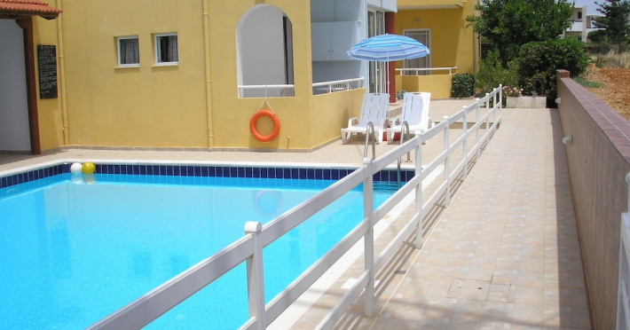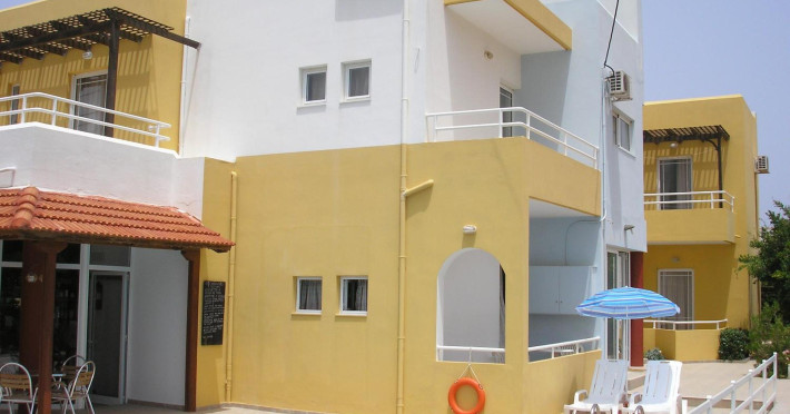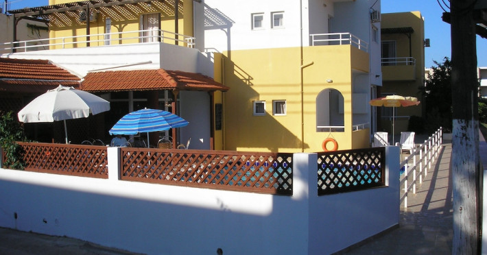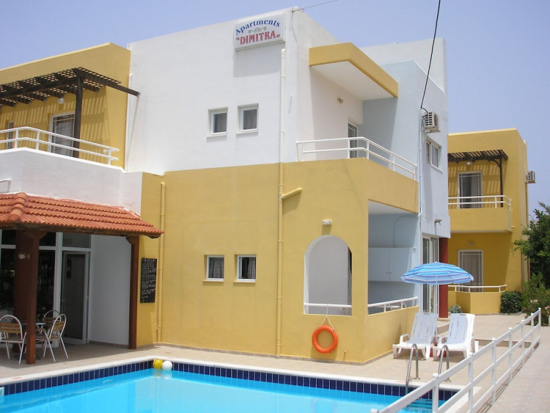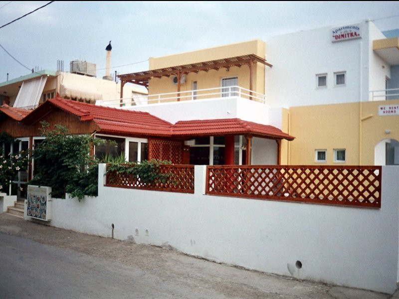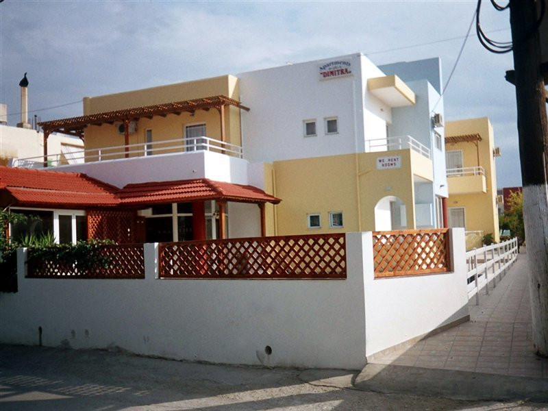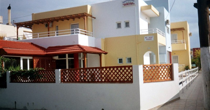 Dimitra apartments are located 150 m from the beach , 800m from the main village of Kato Gouves.Facilites include swimming pool, reception 24hrs, family tavern.All rooms with air condition (paid extra), safe box (paid extra), TV, coffee-tea making facilities, fridge and kitchenette. Address; Kato Gouves,