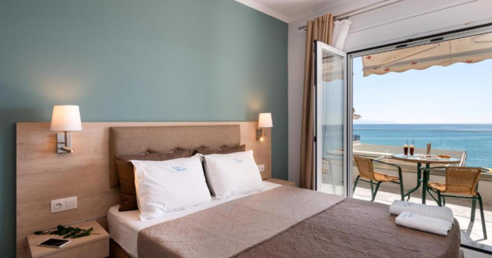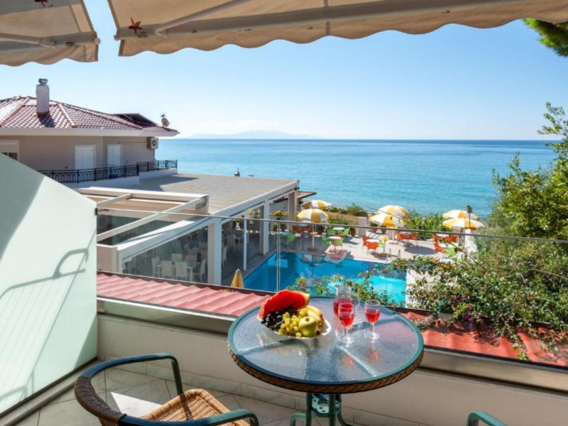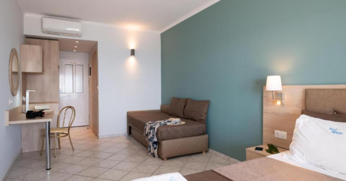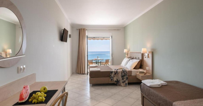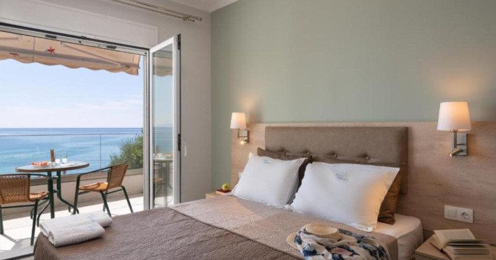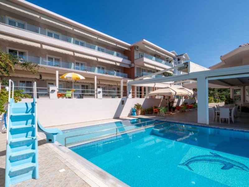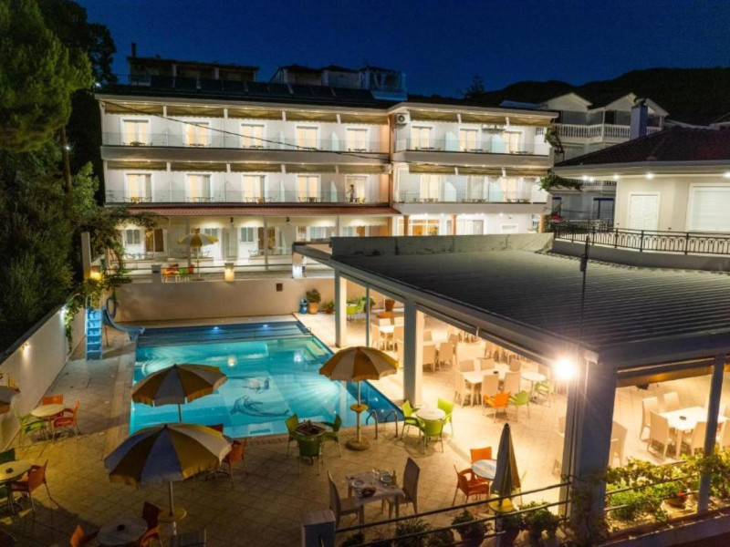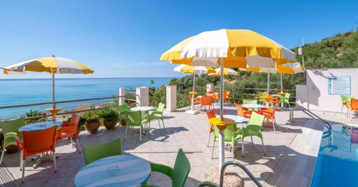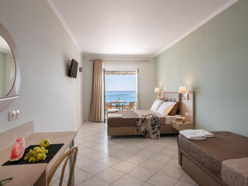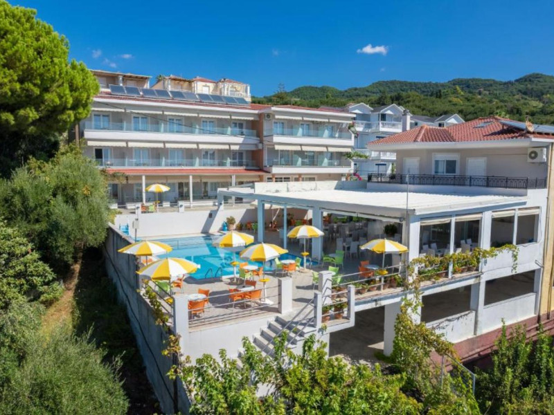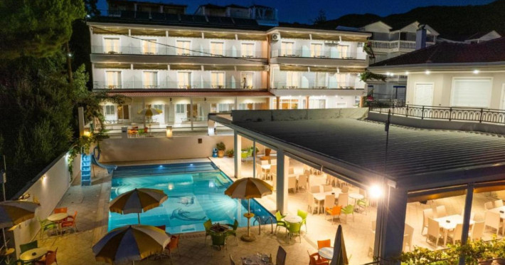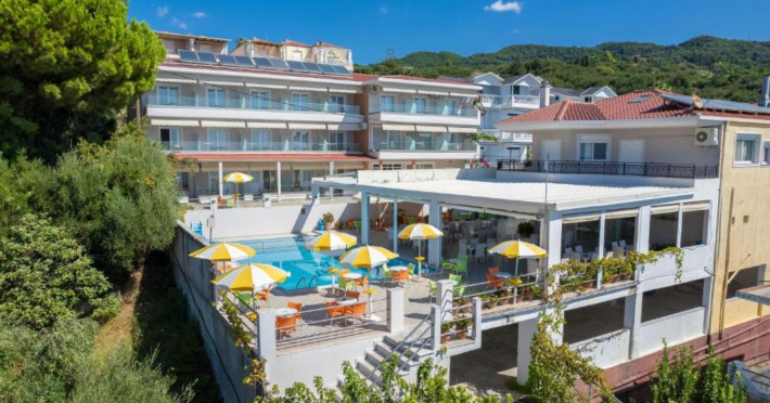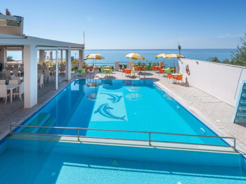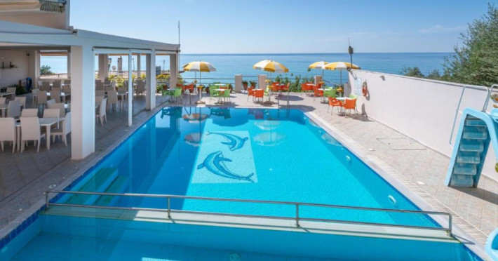 The 25 rooms, which DIMITRA HOTEL has, all are completely equipped and have private balcony with view on the enchanting Ionian sea which is only 30m away from the hotel. There is also a breakfast room , a restaurant , a bar, a swimming pool and indoor parking. It is a category 3 stars hotel.