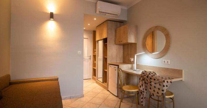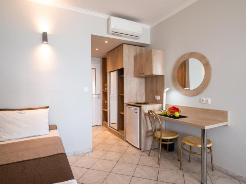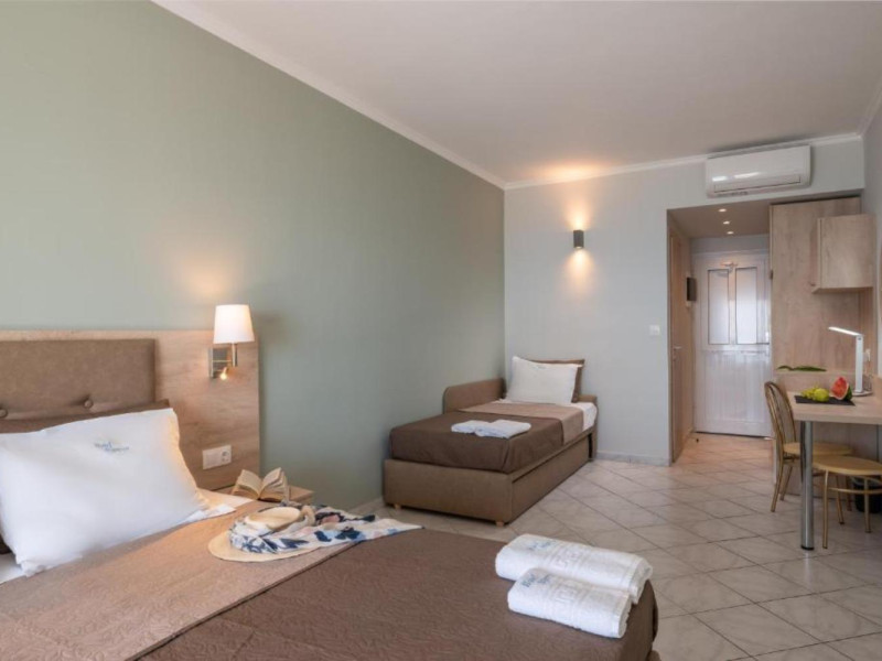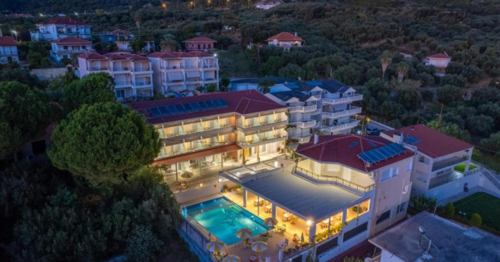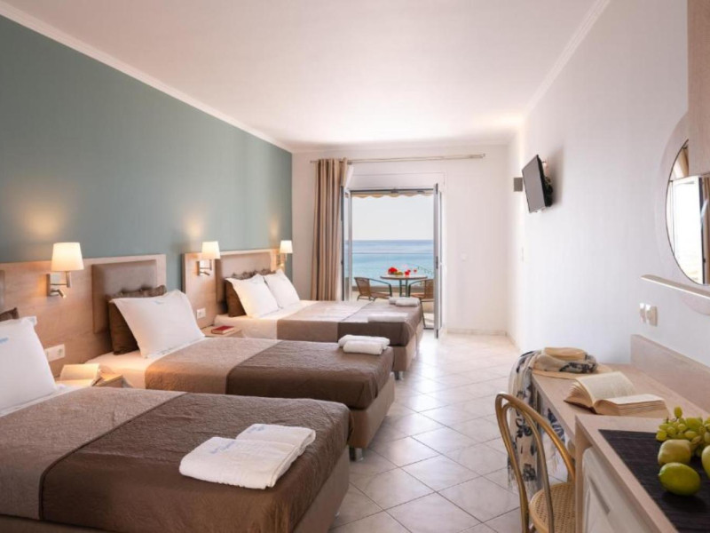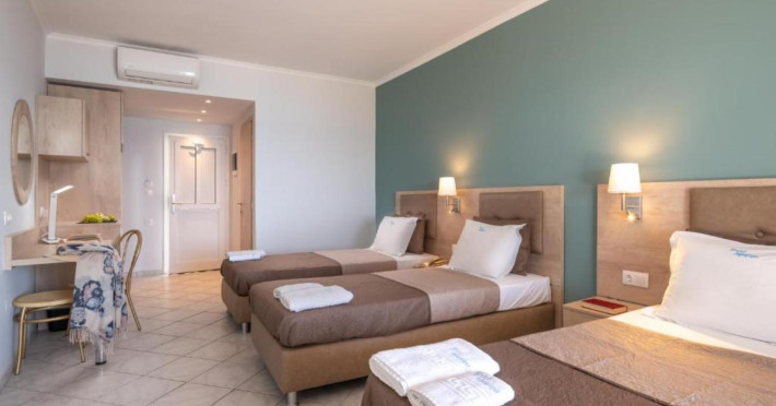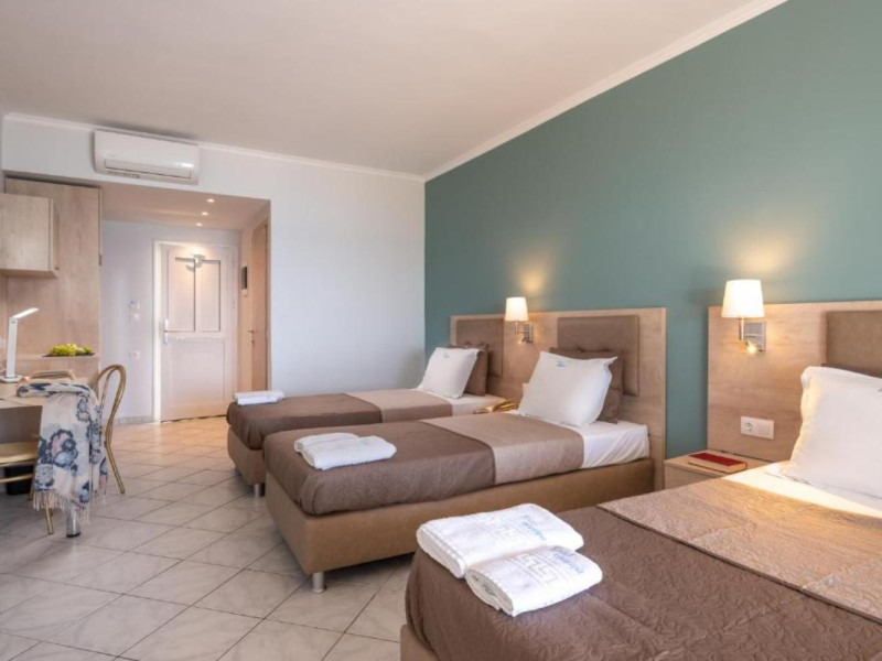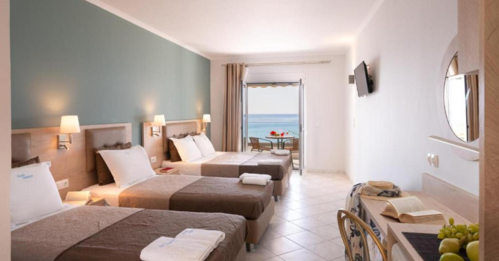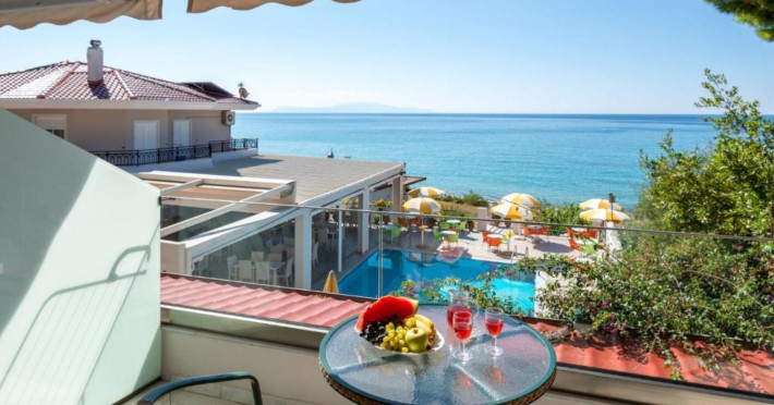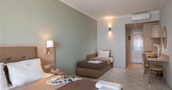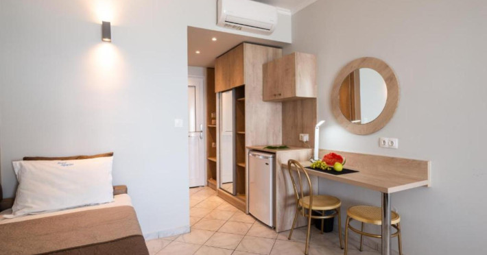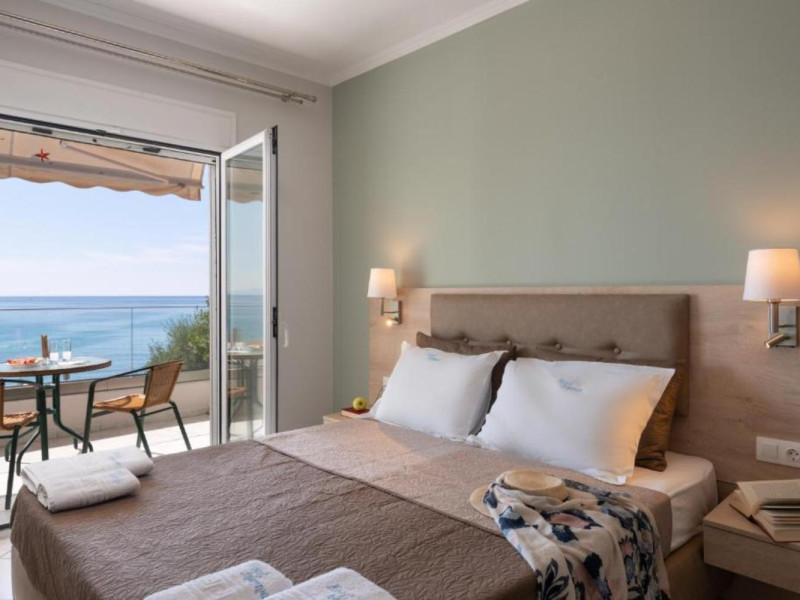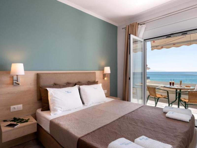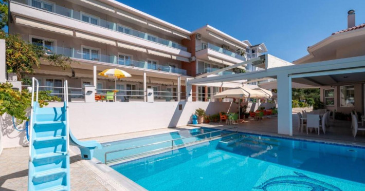 The 25 rooms, which DIMITRA HOTEL has, all are completely equipped and have private balcony with view on the enchanting Ionian sea which is only 30m away from the hotel. There is also a breakfast room , a restaurant , a bar, a swimming pool and indoor parking. It is a category 3 stars hotel.