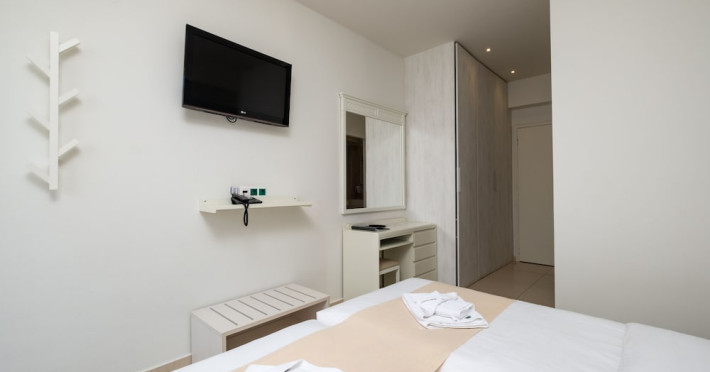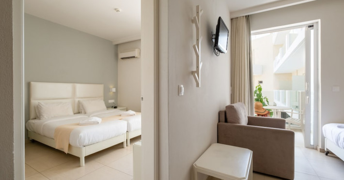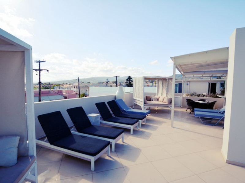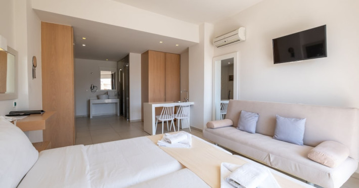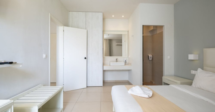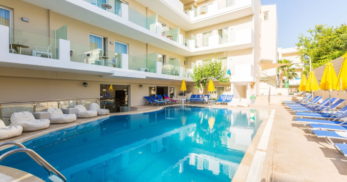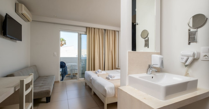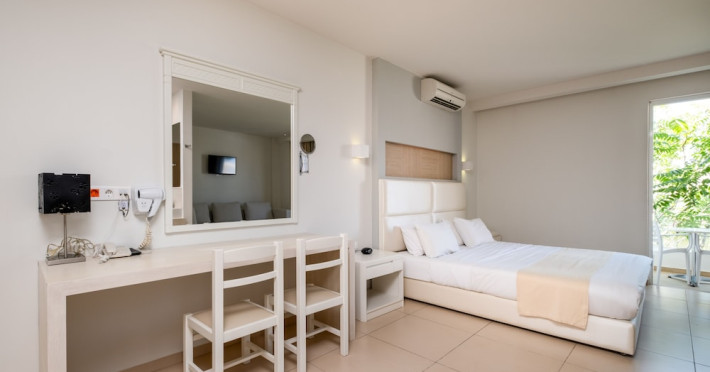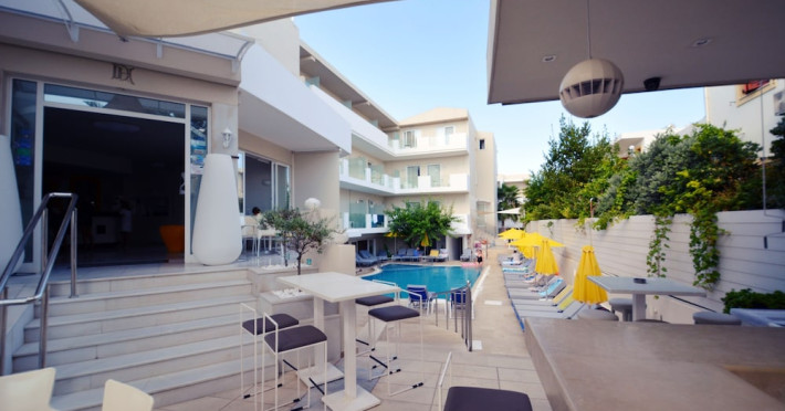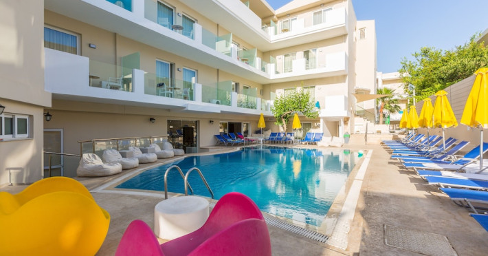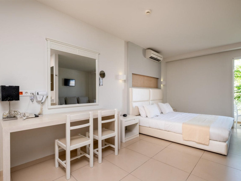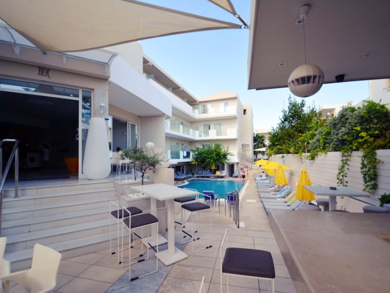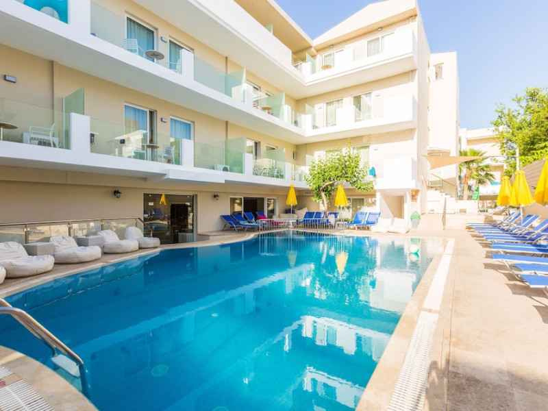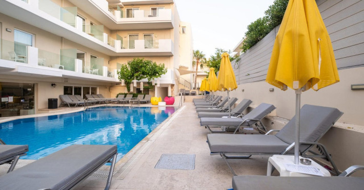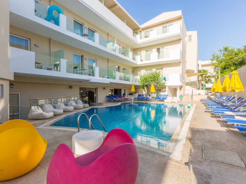 Facilities and services include 24hr reception, WIFI, lobby area, internet access, massage (extra charge), pool bar, swimming pool with free sun loungers & umbrellas, pool towels (extra charge), children's pool, luggage room, shower room and restaurant, laundry service (extra charge). Parking public parking near by. On the public beach umbrellas & sunchairs with extra charge.Rooms feature Individual air conditioning/heatingi, Wifi, cable/satellite TV, telephone, safe (extra charge), mini fridge, electric kettle,electric coffee maker ( on request), furnished balcony or ground terrace and bathroom with shower, bath amenities and hairdryer.Check in 15:00Check out 11:00Towels changing per week 3 timesBed linen changing per week 2 times Room cleaning per week 7 timesIn case of choosing the option of "all inclusive":The All Inclusive-concept includes all meals (breakfast, lunch, dinner and snacks) and mealtime drinks such as soft drinks, beer, wine, water and alcoholic drinks, all of local brands. Drinks are served from morning until late evening (approx until 22.00 -24.00 hrs). Opening times vary between different hotels. In certain hotels the activities program is also included.Please note that some of the above facilities may be closed due to weather / seasonal conditions.Address: 16 Australon Polemiston, Rethymnon, 74100 Crete, Greece.