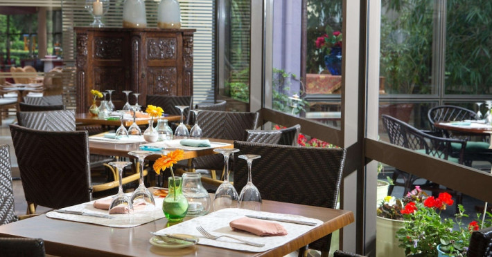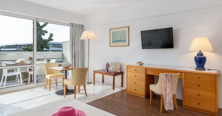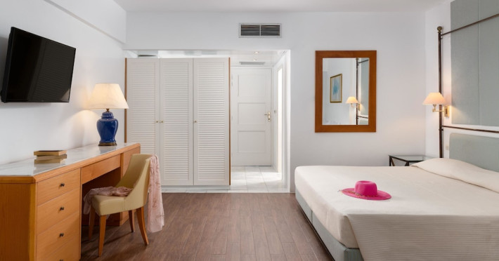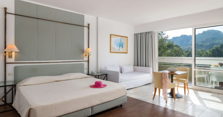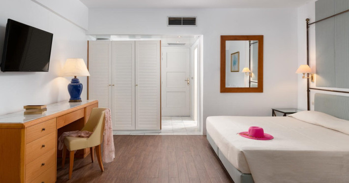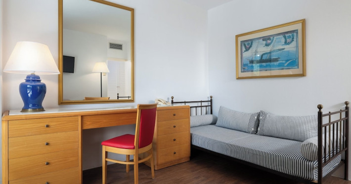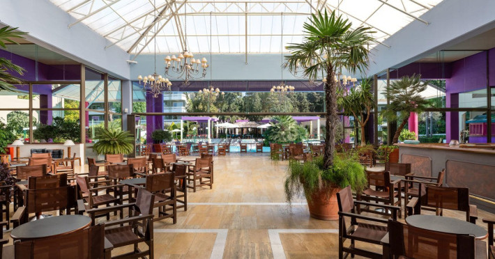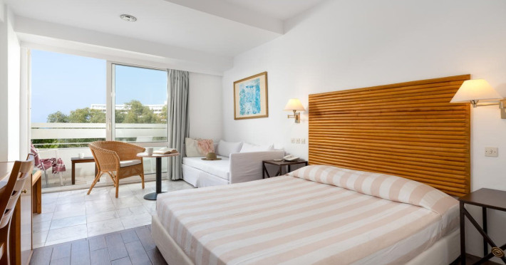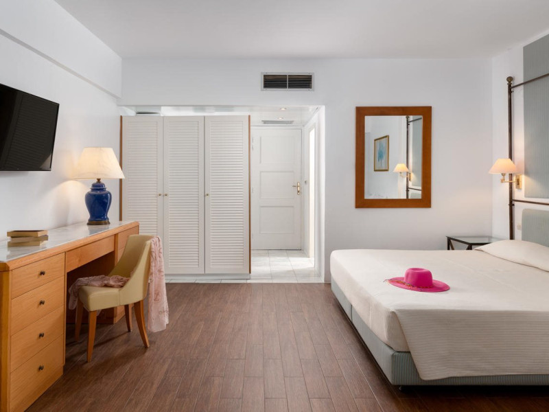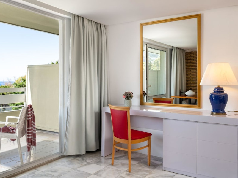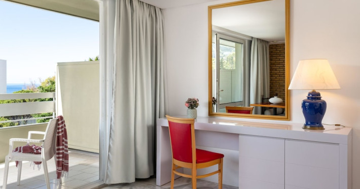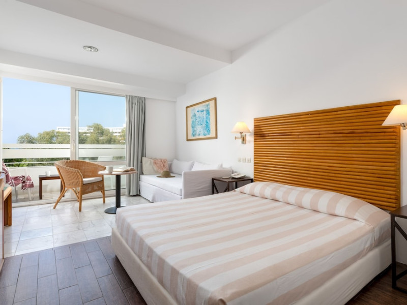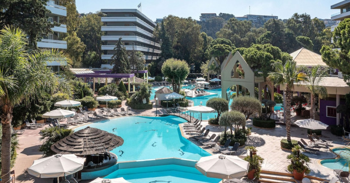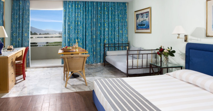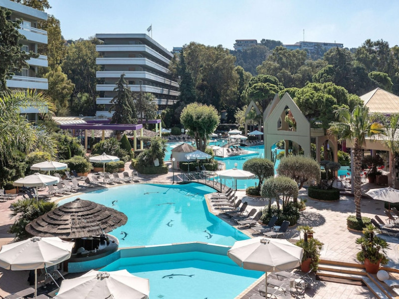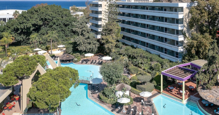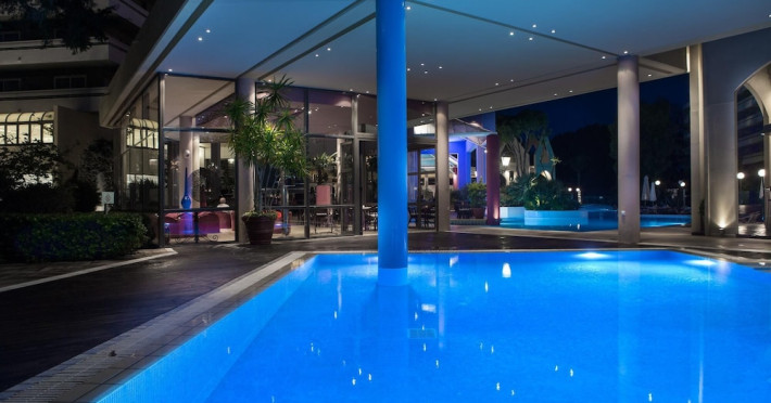 Hotel offers : Reception with lobby, Currency exchange, TV room, Lifts, Fully equipped Super Market ( at the hotel entrance ), Concierge / Cashier / Porters, Internet games room,Free Wi Fi ( covers all the hotel areas ), Guest parking free (when available),Laundry service, 1 outdoor lagoon style swimming pool with sea water, 1 covered swimming pool with fresh water, Sun terrace and loungers, Aqua Gym –sun beds and umbrellas are free of charge Tennis court and equipment ( free ), Crazy golf ( free of charge ), Billiard Table. ,Massage (on request with charge ), Table tennis ( Free of charge ), Sauna (with a charge), Separate children’s pool with sea water , Conference room for 250 persons.Dionysos Wellness Center: Turkish Bath, Sultan Hammam, Saouna, Massage, Facial Treatments Rooms offer : Free WiFi,Fully air-conditioned with individual control / heating, Bathroom with bathtubs, hairdryer, Direct dial telephone, Fridge, Satellite TV with international channels , Balcony or terrace with sea view or to the tropical gardens, Safe deposit box (with charge ), baby cot available.Breakfast: American, buffet styleLunch/Dinner : For our half board clients, meals are chosen from the menu, they are waiter served at our three a la carte restaurants, with the possibility of choosing between Lunch or Dinner.AMVROSIA RESTAURANT on the mezzanine floor of the main building serving an enriched American breakfast.MAISTROS POOL RESTAURANT an all – purpose casual restaurant with serves Lunch and Dinner, features international and Greek Specialties. DIONYSOS GRILL ROOM situated next to the Lobby, within a private garden. A top quality restaurant which offers a variety of meat and fish specialties, local and international dishes. Dinner only.DON DIONYSOS MEXICAN RESTAURANT Satisfy your craving for Mexican food with dishes that are based on traditional roots and old Mexican recipes.SOUVLAKI CORNER offering delicious Greek souvlaki, French fries preparedin front of clients. Refreshments and cold beers CAFÉ GRECO serving steaming coffees, ice creams, milk shakes, pastries, crepes, waffles.AQUARIUS SWIM-UP POOL BAR with stimulating music, frozen fruit cocktails and ice cold Beers.APOLLO BAR in the lobby of the hotel, open from 10:00 – 02:00 serves refreshments, exotic cocktails, light snacks, also live entertainment every night makes the bar very popular. ROOM SERVICE - 07:00 – 22:00 (warm dishes), beverages till 02:00