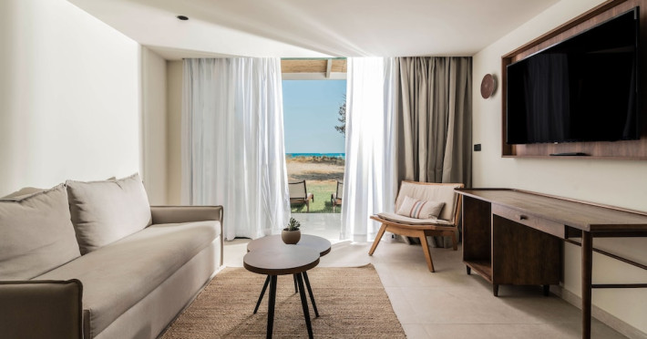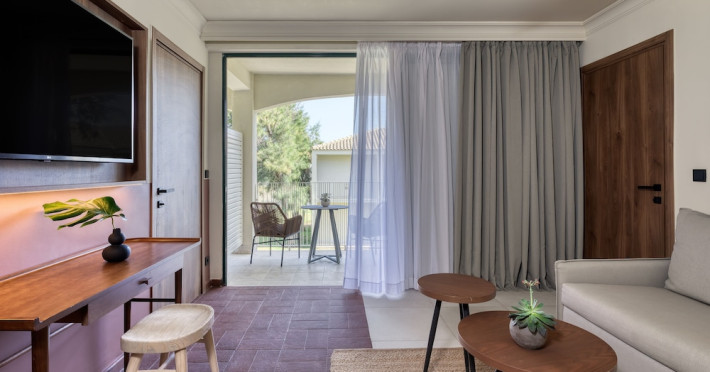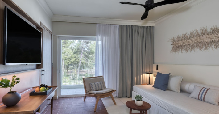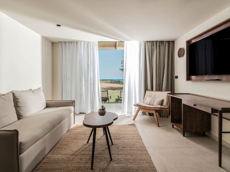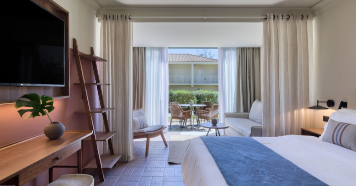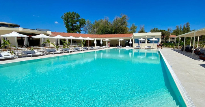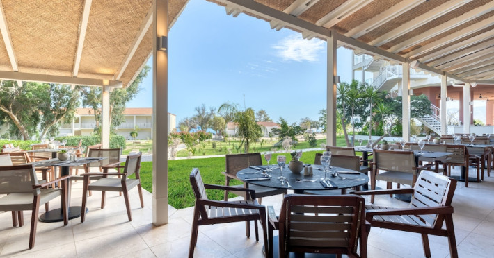 It features outdoor swimming pools, a fitness center, a shared lounge, a terrace, a kids' club, and a children's playground. Guests can enjoy Mediterranean cuisine at one of the restaurants and relax at the beach bar, poolside bar, or one of the lounges. The hotel offers complimentary wireless internet access, concierge services, a 24-hour front desk, luggage room, lounge, elevator, multilingual staff, room service, dry cleaning/laundry services (extra charge), and a business center. Bike and car hire are available, and the area is popular for cycling. There’s also a spa center with massage treatments (extra charge), and a sauna (extra charge). The air-conditioned rooms include Wi-Fi, direct-dial telephone, safety deposit box, a bathroom with a shower, hairdryer, and bathrobes, as well as satellite TV. Free self-parking is available onsite. Zakynthos International Airport is 2 km away. The hotel is closed between November 1 and May 1.The All-Inclusive Concept includes all meals (breakfast, lunch, dinner and snacks) and mealtime drinks such as soft drinks, beer, wine, water and alcoholic drinks, all of local brands. Drinks are served from morning until late evening (approx until 22.00 -24.00 hrs). Opening times vary between different hotels. In certain hotels, the activities program is also included.Note: - Dogs or cats up to 25 kg are allowed (a non-refundable cleaning fee, extra charge).- Check-in/Check out: 15:00 & 11:00