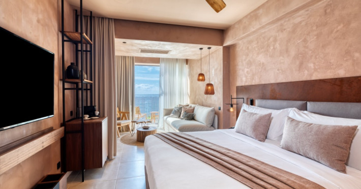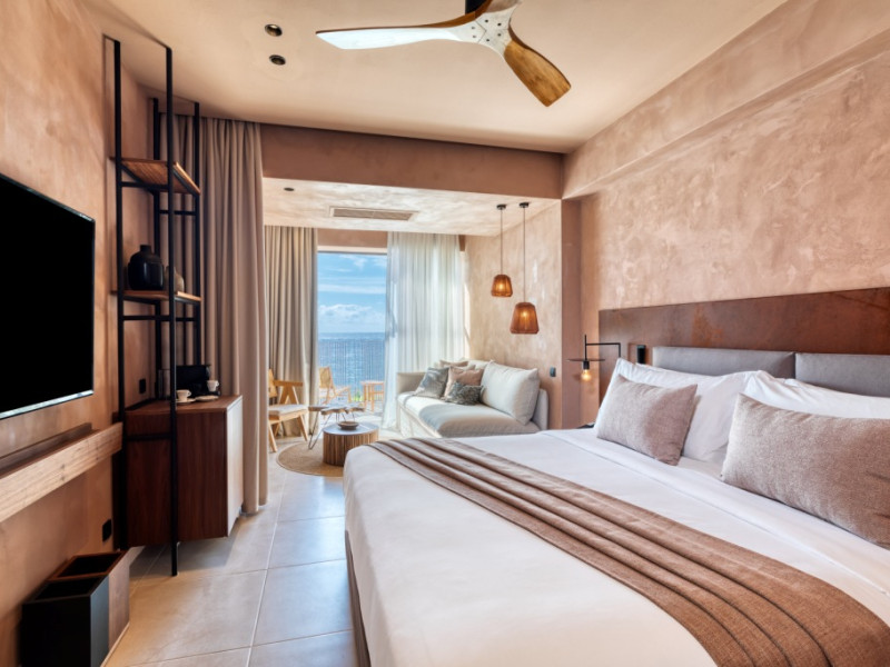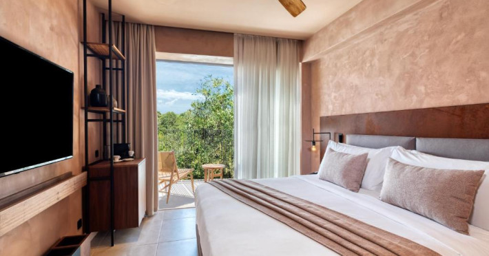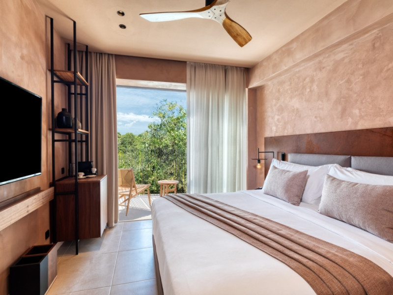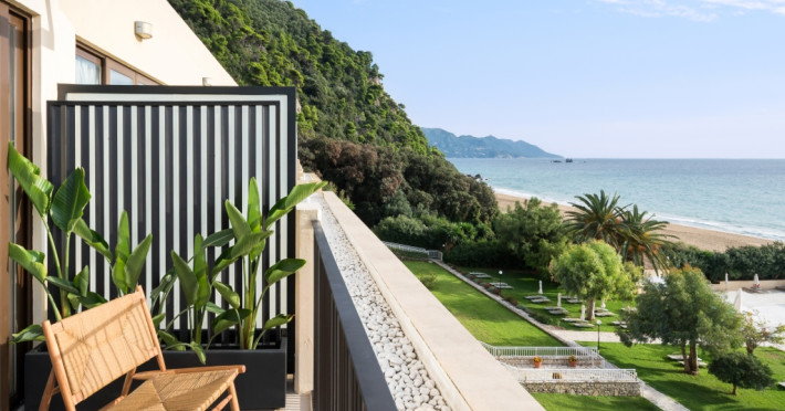 Beach and backed by verdant hills, Domes of Corfu is a family-friendly hotel