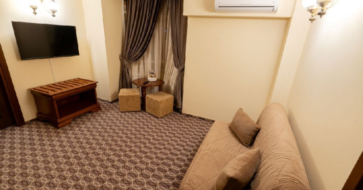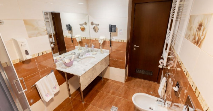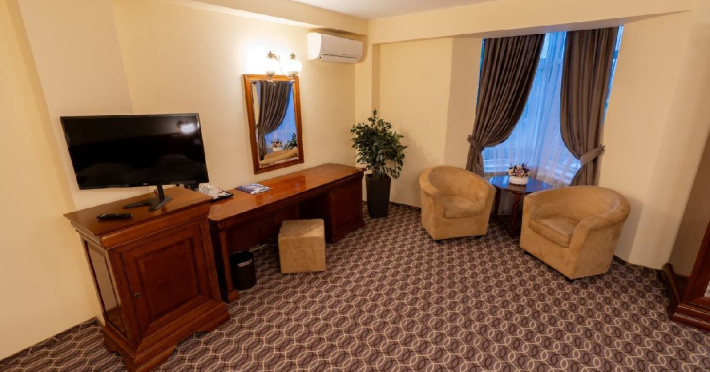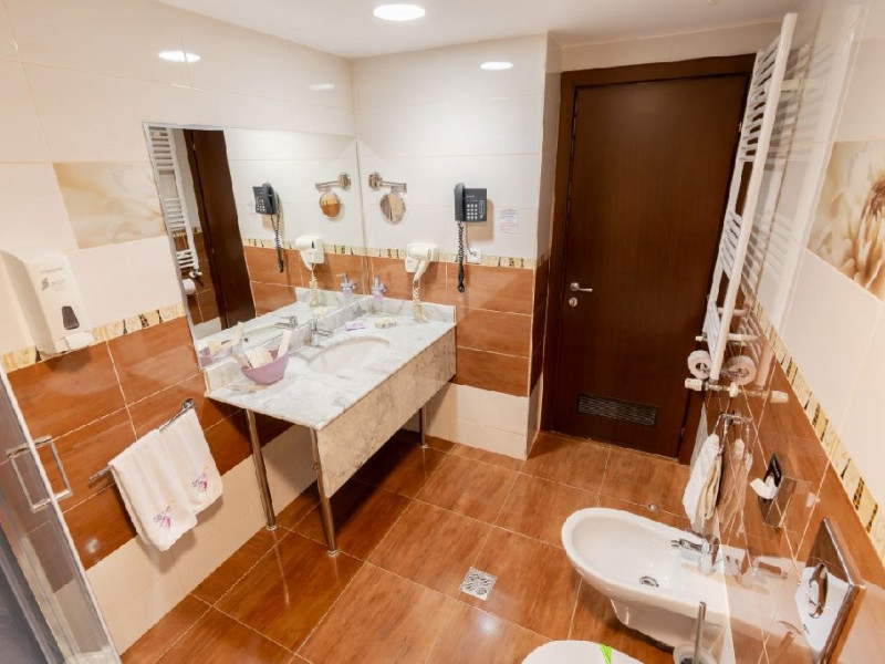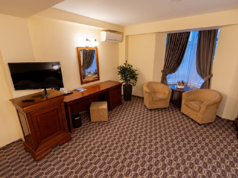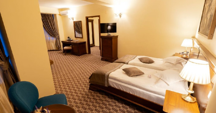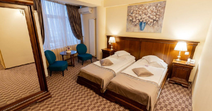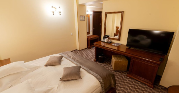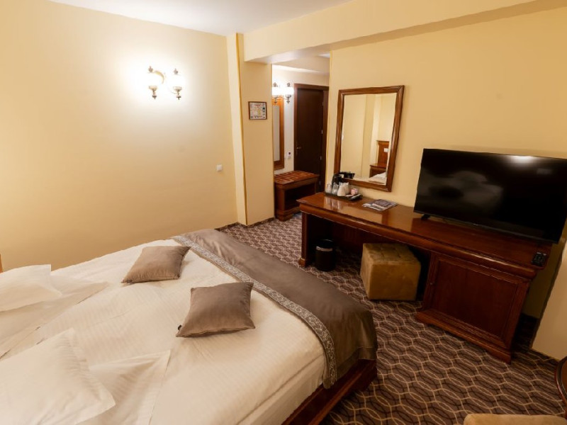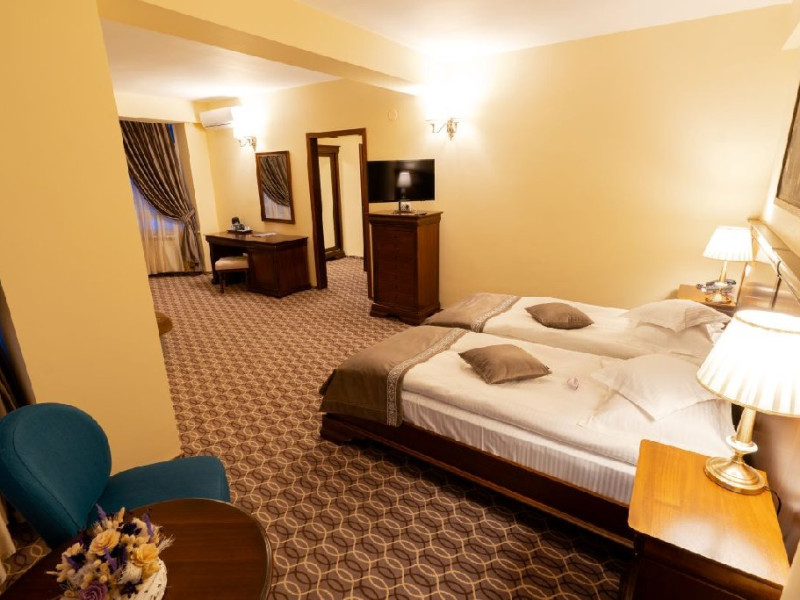 Nu se accepta animale de companie Dotari camere: acces pe baza de cartela electronica, baie proprie cu dus, televizor cu ecran LCD cu diagonala de 81 cm, program TV prin cablu, internet gratuit WiFi si cablu, aparat aer conditionat, seif, minibar, fierbator de apa, halat si papuci de unica folosinta, produse cosmetic, uscator de par. Dubla standard 3 stele - are aceleasi dotari ca si dubla de 4 stele, diferenta o face spatiul si marimea patului. Dubla superior pate fi cu paturi twin sau matrimonial. In camera twin exista posibilitate de unire paturi fara spatiu intre ele. Suprafata unei camere este de aproximativ 30 metri patrati. Contra cost se poate asigura locuri suplimentare pe pat . Camera matrimoniala - Suprafata acestor tipuri de camere variaza de la 18 metri patrati pana la 21 metri patrati. Contra cost se poate asigura locuri suplimentare pe pat pliant - maxim 1 loc Apramentul standard - are dormitor cu pat matrimonial si living si canapea extensibila. Suprafata acestui tip de apartament este de aproximativ 30 metri patrati. Apartamentul superior - are dormitor cu pat twin sau matrimonial si living cu canapea extensibila. Apartamentul cu paturi twin in dormitor (posibilitate de unire paturi fara spatiu intre ele) are o suprafata de aproximativ 50 metri patrati. Apartamentul cu pat matrimonial in dormitor are o suprafata de aproximativ 30 metri patrati. Suita superior - au un living comun si doua dormitoare, sunt dotate la standardul de patru stele cu paturi matrimoniale, canapele extensibile.
