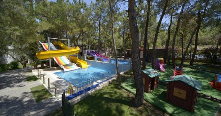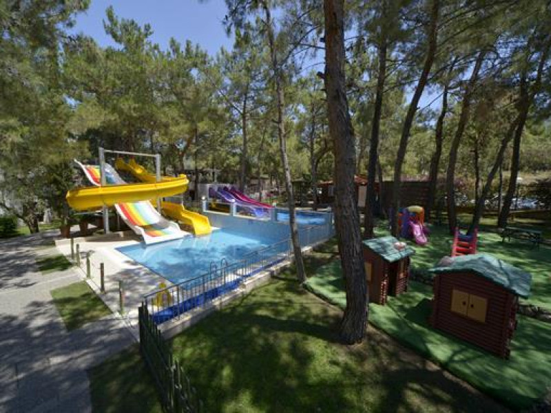 SPORTıVE ACTıVıTıES: Swimming pool, water slides, tennis (3 professional courts, equipment and lighting), volleyball, basketball, mini football, archery, table tenis, boccia, air rifle, billiards, step aerobic, morning yoga and stretching, snorkeling, sportive competitions and awards, dance lessons, windsurf and catamaran, canoe and pedalo, Jetski*, Waterski*, Banana*, Ringo* and Paintball*
