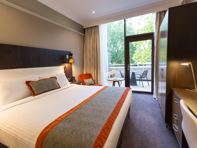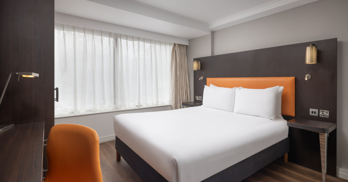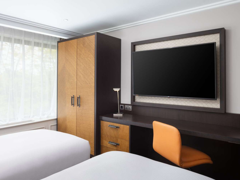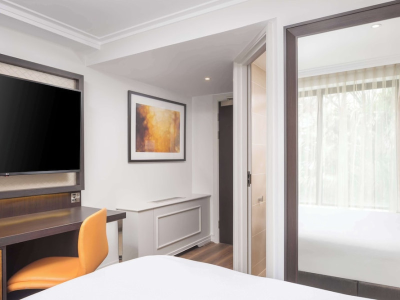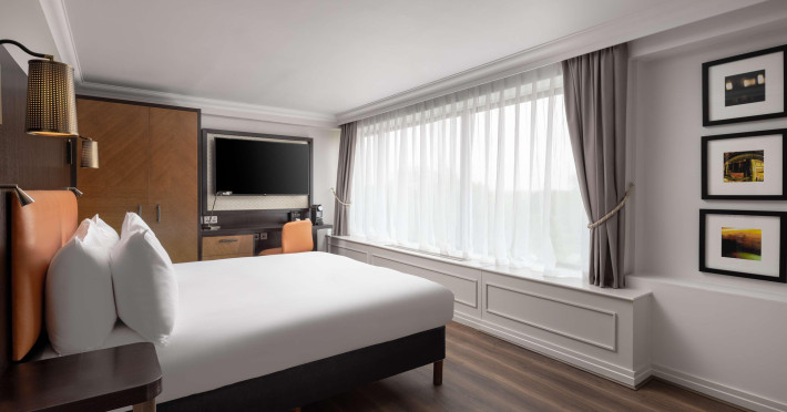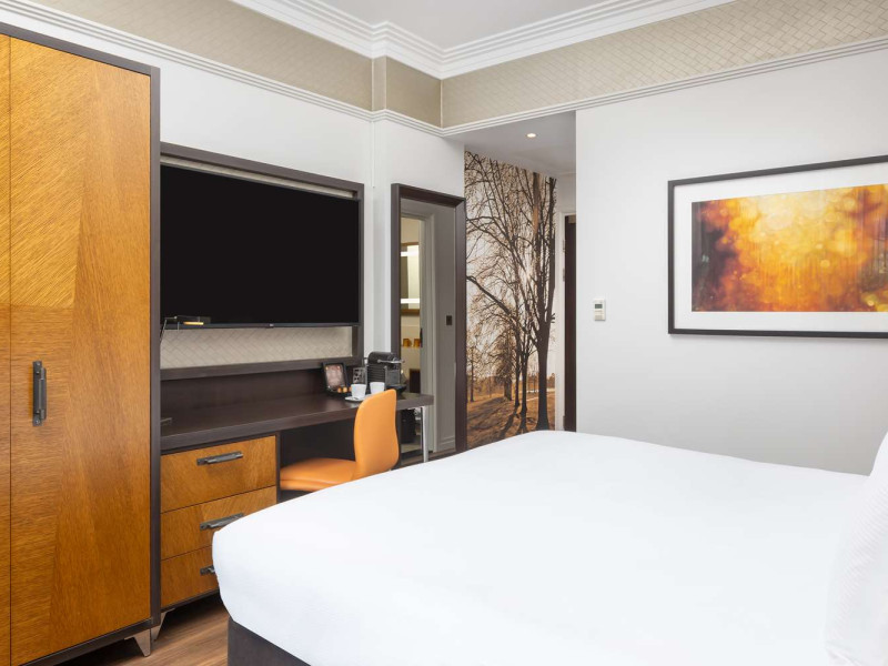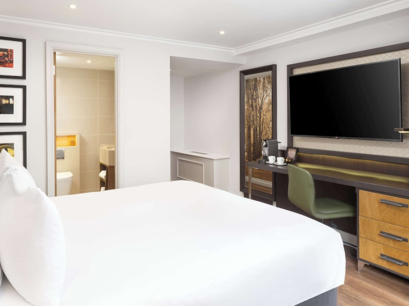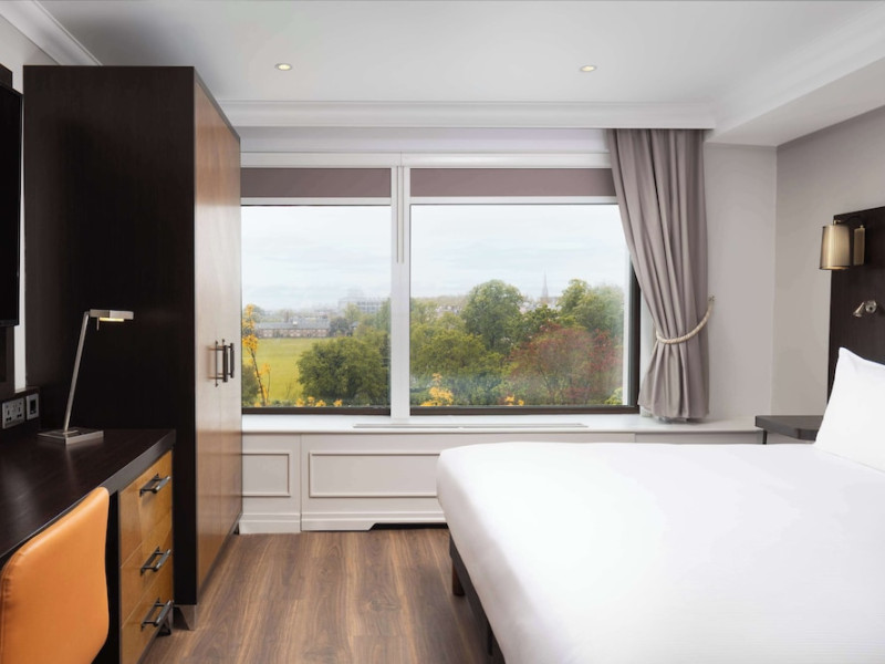 The DoubleTree by Hilton London Hyde Park is located opposite Hyde Park, with Kensington Gardens a short walk away and Queensway and Bayswater Underground stations nearby. The hotel offers a business center, concierge, fitness center, and a restaurant (Urban Meadow) with room service and breakfast options (fee applies). Oxford Street and Westfield Shopping Centre are easily accessible by Underground. Kings Cross St. Pancras and Paddington Station (Heathrow Express) are also conveniently located. Guest rooms feature generous workspaces, flat-screen TVs, ironing facilities, mini-fridges, laptop safes, coffee machines, and complimentary Wi-Fi. Urban Meadow serves breakfast, lunch, and dinner, with seasonal dishes and al fresco dining available on the terrace (summer). The bar is open until 11:00 pm. Two meeting rooms are available, suitable for various events. Additional amenities include complimentary wireless internet access, dry cleaning/laundry services, and self-parking (fee applies). The hotel has 205 square feet of conference space. Rooms include LED televisions, private bathrooms with showers, complimentary toiletries, hair dryers, phones, and desks. Nearby attractions include Kensington Palace, Portobello Road Market, Kensington High Street, Royal Albert Hall, and several museums. Heathrow Airport is the preferred airport.