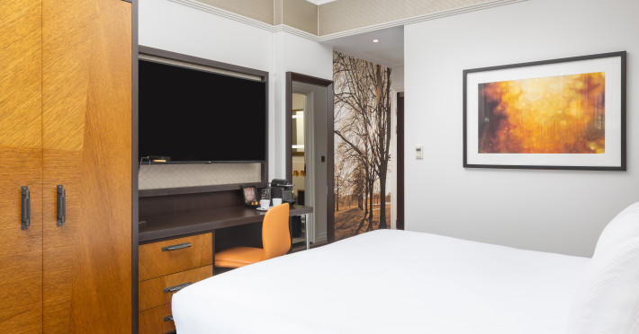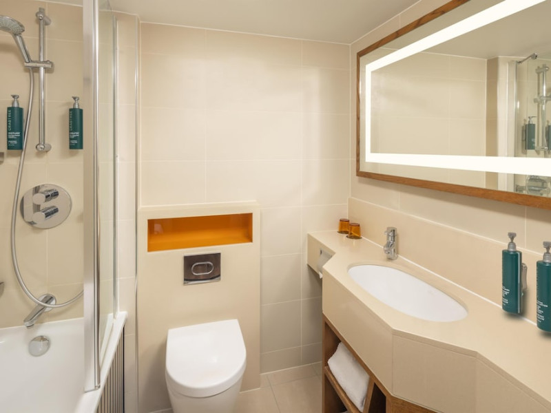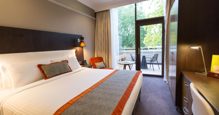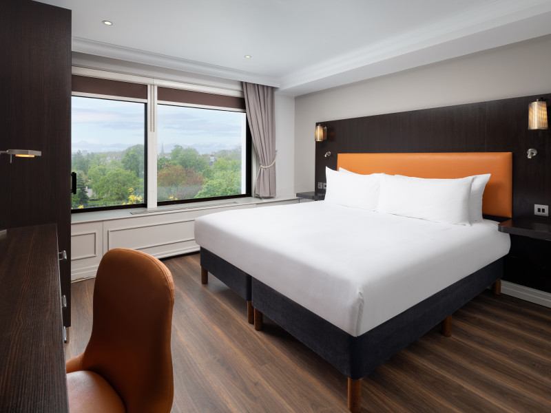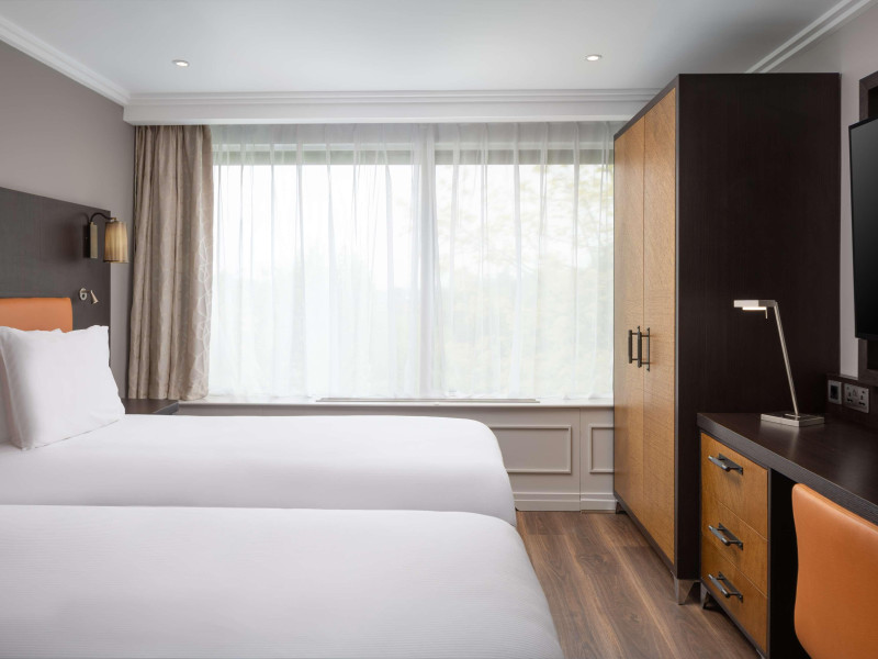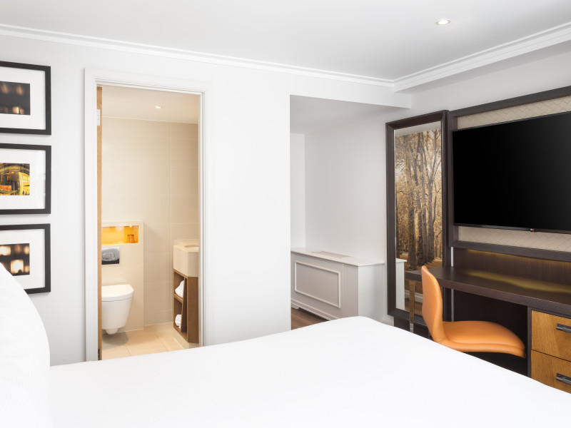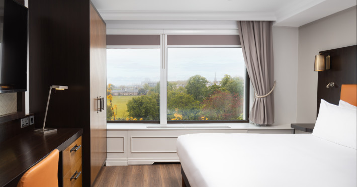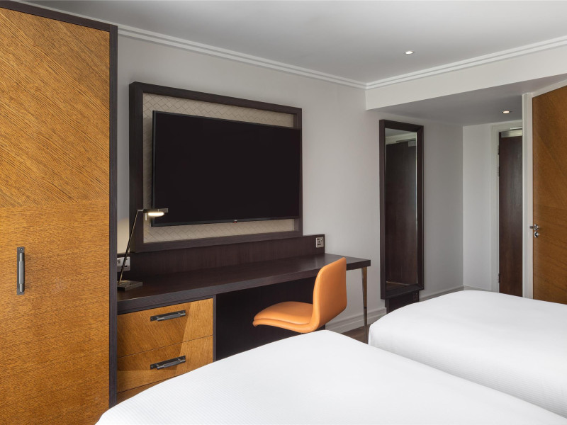 The DoubleTree by Hilton London Hyde Park is located opposite Hyde Park, with Kensington Gardens a short walk away and Queensway and Bayswater Underground stations nearby. The hotel offers a business center, concierge, fitness center, and a restaurant (Urban Meadow) with room service and breakfast options (fee applies). Oxford Street and Westfield Shopping Centre are easily accessible by Underground. Kings Cross St. Pancras and Paddington Station (Heathrow Express) are also conveniently located. Guest rooms feature generous workspaces, flat-screen TVs, ironing facilities, mini-fridges, laptop safes, coffee machines, and complimentary Wi-Fi. Urban Meadow serves breakfast, lunch, and dinner, with seasonal dishes and al fresco dining available on the terrace (summer). The bar is open until 11:00 pm. Two meeting rooms are available, suitable for various events. Additional amenities include complimentary wireless internet access, dry cleaning/laundry services, and self-parking (fee applies). The hotel has 205 square feet of conference space. Rooms include LED televisions, private bathrooms with showers, complimentary toiletries, hair dryers, phones, and desks. Nearby attractions include Kensington Palace, Portobello Road Market, Kensington High Street, Royal Albert Hall, and several museums. Heathrow Airport is the preferred airport.