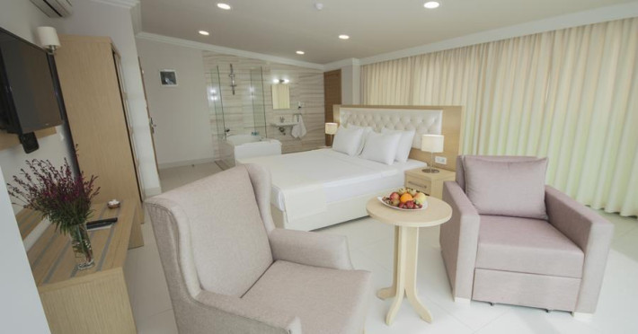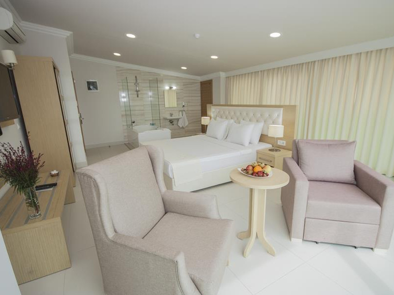ROOMS; Dragut Point North Hotel has totally 79 rooms / 168 beds and four different room types ; 72 STANDARD ROOMS , 3 RELAX ROOMS , 3 SUITE ROOMS and 1 HANDICAPPED ROOM.
