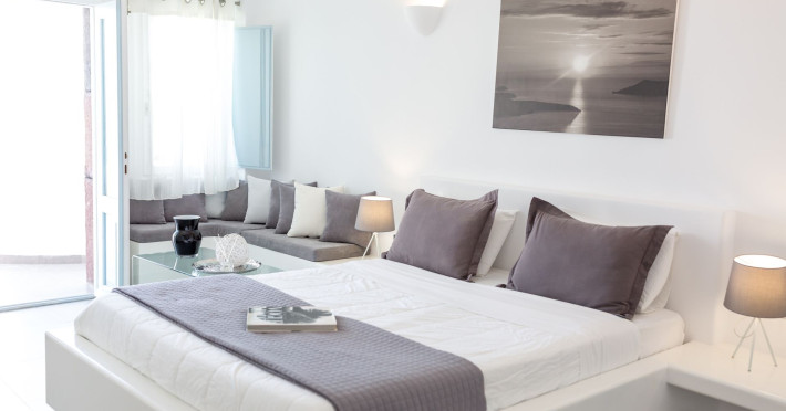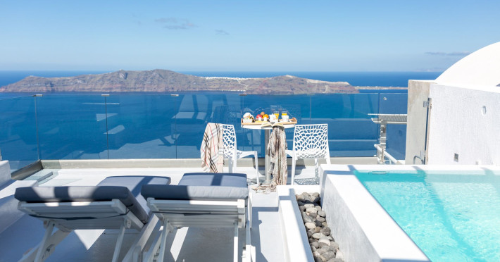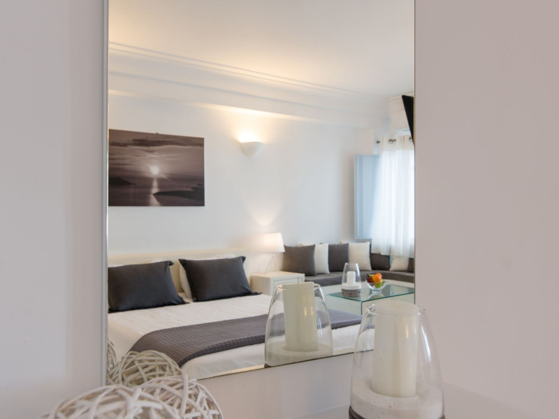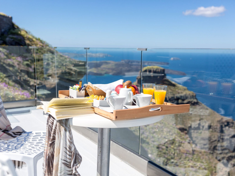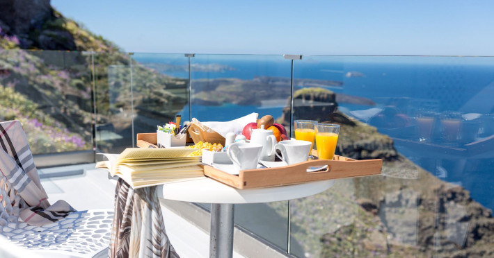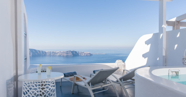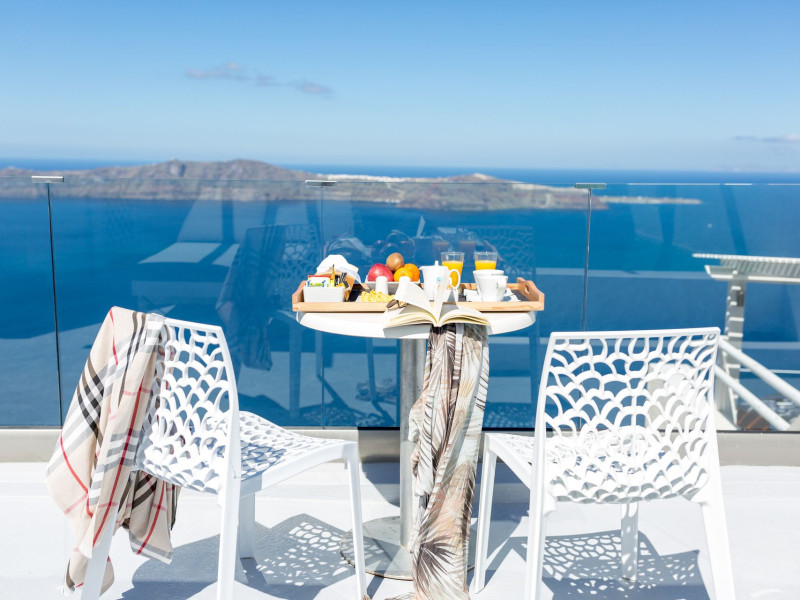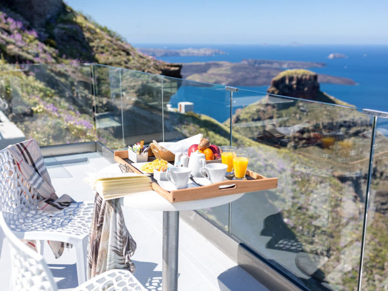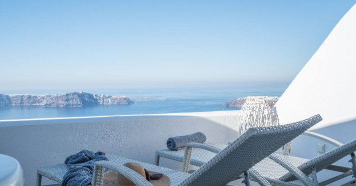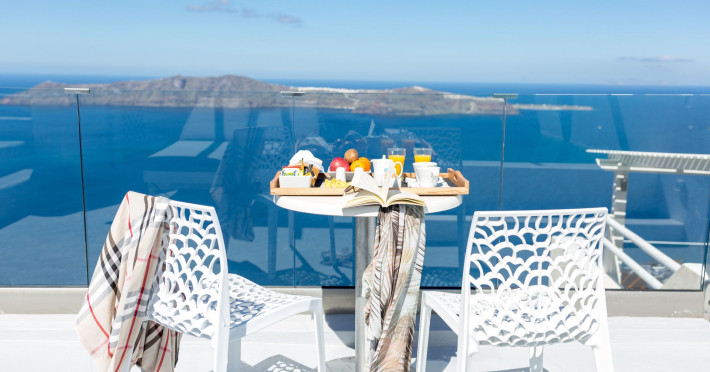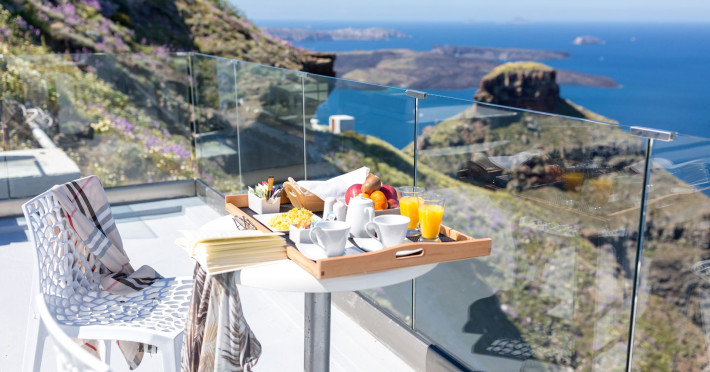 Dreaming View Suites are exceptionally perched at the edge of the cliffs in Imerovigli, a picturesque settlement on the majestic island of Santorini. This privileged location allows the most stunning views to the Aegean Sea, the volcano and the enchanting horizon, overlooking the caldera and the romantic sunset. With the traditional Cycladic architecture and with the highest quality of services provided, the suites offer a unique place of friendly accommodation and the best shelter for relaxation.Experience luxury and comfort in a wonderful atmosphere, enjoying the moments you spend with your loved ones. Allow us to serve you in the best manner and ensure that you get exactly what you have dreamt of throughout your vacation in Santorini. Dreaming View Suites are perfect for couples that wish to enjoy romance with a glass of delicious local wine in a breathtaking setting. Live the magic of Santorini with the perfect, romantic view from Imerovigli!Imerovigli is a beautiful settlement in Santorini, wonderfully located at the edge of the island with a panoramic view to the Aegean Sea. Its name is directly related to its privileged location, as it used to be an observatory for the locals of Santorini. From the highest spot of the island, they could see if danger approached and take measures, so as to defend themselves. Nowadays, Imerovigli is regarded as the perfect place to enjoy the world-renowned sunset of Santorini. The bright, warm colors of the sunset surround you and provide an exceptional experience to be remembered.