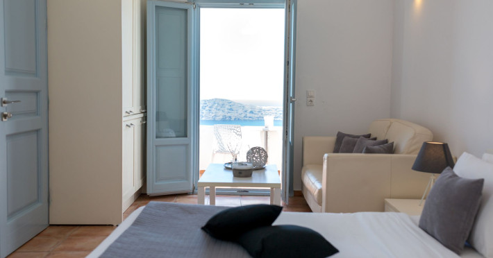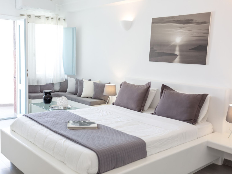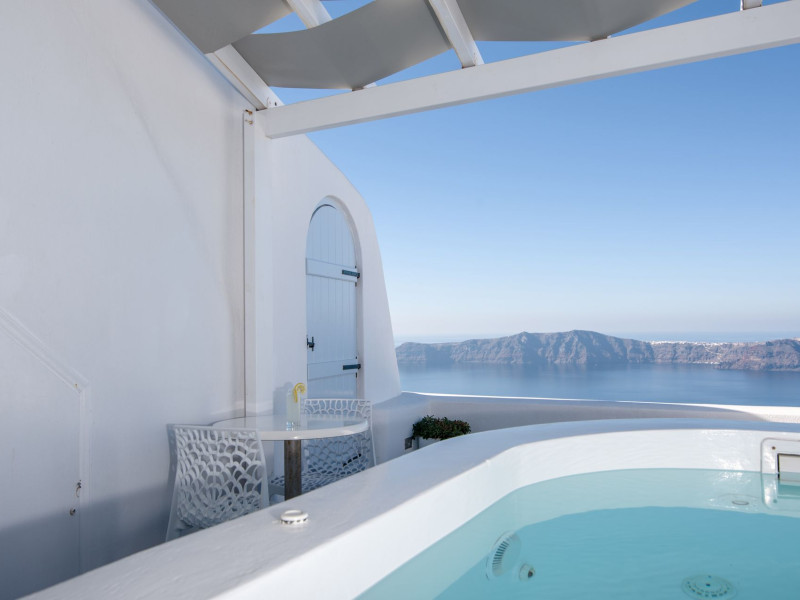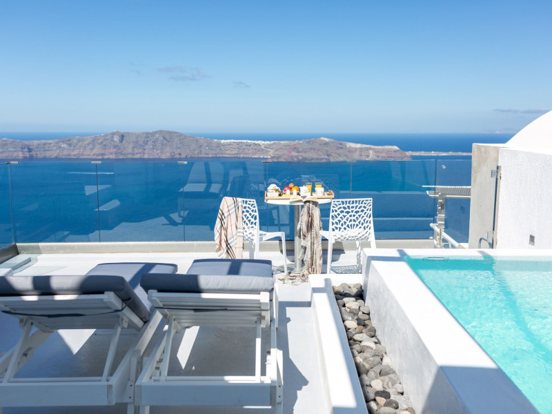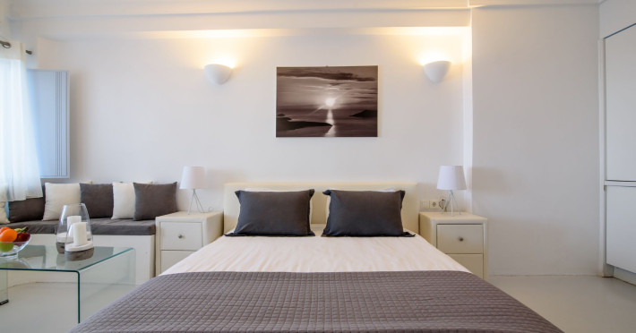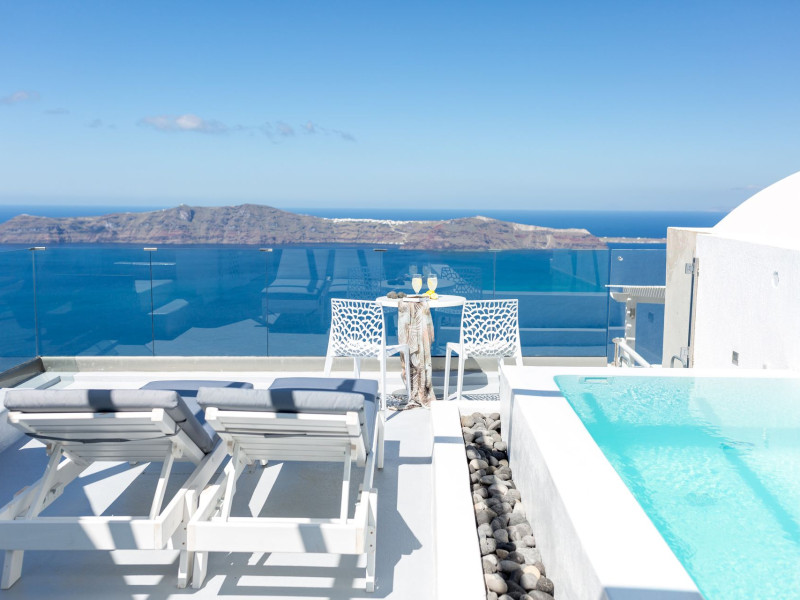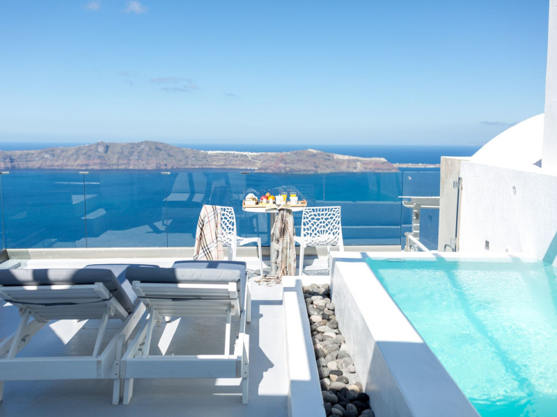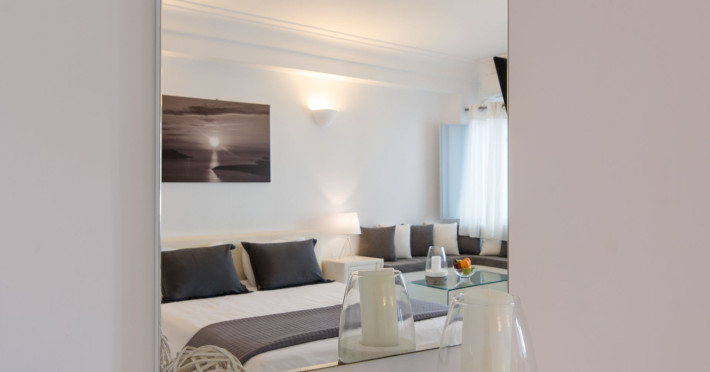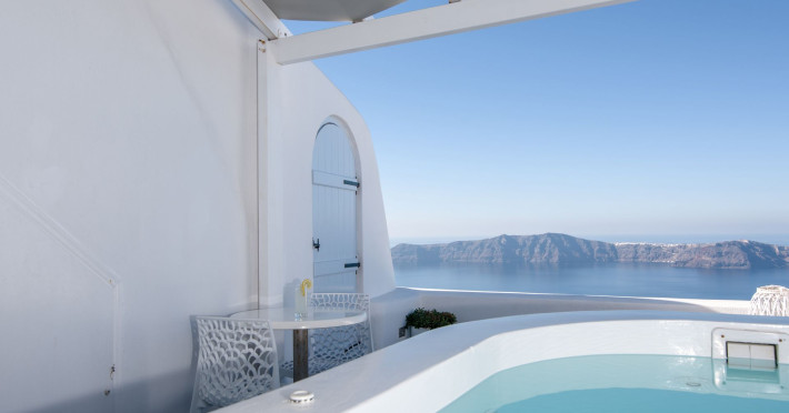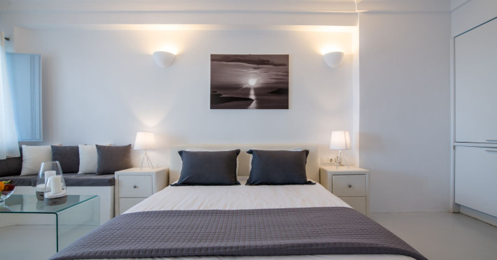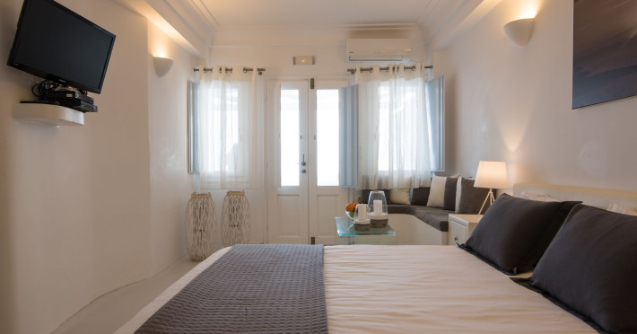 Dreaming View Suites are exceptionally perched at the edge of the cliffs in Imerovigli, a picturesque settlement on the majestic island of Santorini. This privileged location allows the most stunning views to the Aegean Sea, the volcano and the enchanting horizon, overlooking the caldera and the romantic sunset. With the traditional Cycladic architecture and with the highest quality of services provided, the suites offer a unique place of friendly accommodation and the best shelter for relaxation.Experience luxury and comfort in a wonderful atmosphere, enjoying the moments you spend with your loved ones. Allow us to serve you in the best manner and ensure that you get exactly what you have dreamt of throughout your vacation in Santorini. Dreaming View Suites are perfect for couples that wish to enjoy romance with a glass of delicious local wine in a breathtaking setting. Live the magic of Santorini with the perfect, romantic view from Imerovigli!Imerovigli is a beautiful settlement in Santorini, wonderfully located at the edge of the island with a panoramic view to the Aegean Sea. Its name is directly related to its privileged location, as it used to be an observatory for the locals of Santorini. From the highest spot of the island, they could see if danger approached and take measures, so as to defend themselves. Nowadays, Imerovigli is regarded as the perfect place to enjoy the world-renowned sunset of Santorini. The bright, warm colors of the sunset surround you and provide an exceptional experience to be remembered.