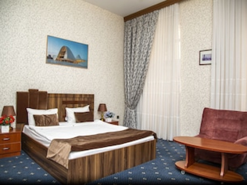 The Hotel Du Port enjoys a prime location in Baku's heart, on Fountains Square, a short stroll from Malakan Garden. It offers classically styled rooms, warmly decorated and featuring plush carpets. Each room includes complimentary Wi-Fi, a flat-screen TV with cable channels, a kettle, and a minibar. Private bathrooms are equipped with hairdryers. Guests can savor international and regional wines and beers at the hotel bar, accompanied by live music every Friday and Saturday evening. The hotel is conveniently located a five-minute walk from the promenade and Baku's Old City, with Sahil metro station just 500 meters away.