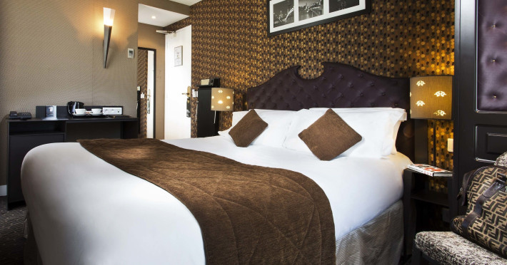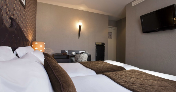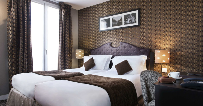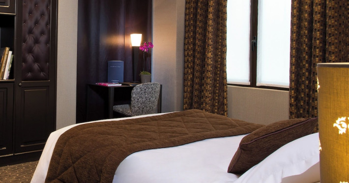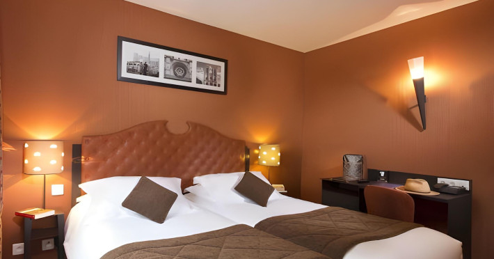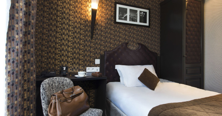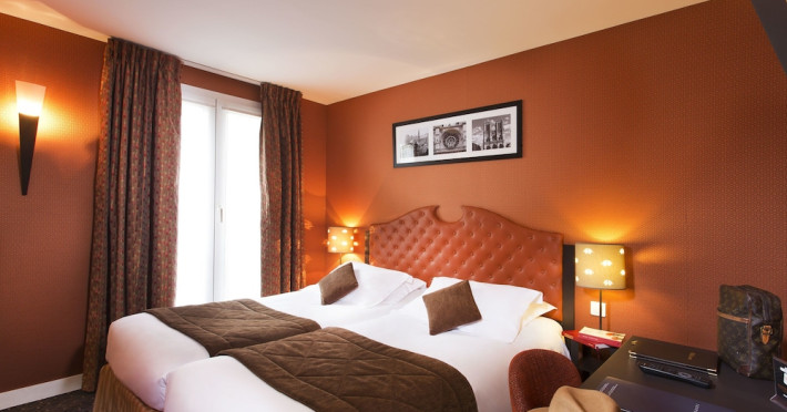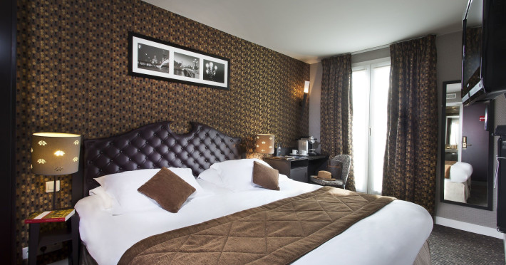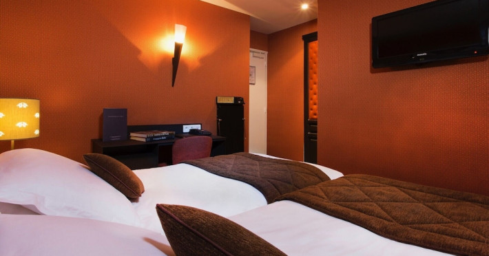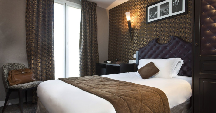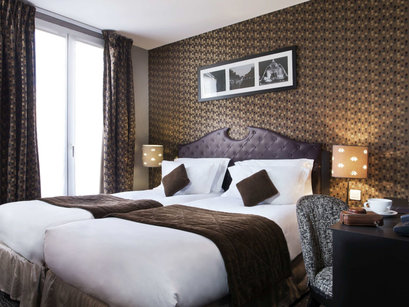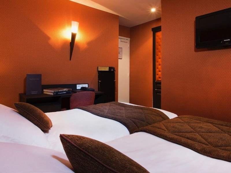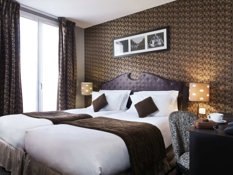 Hôtel du Prince Eugène, a charming, renovated hotel in Paris's 11th arrondissement, offers 35 air-conditioned rooms, a 4-minute drive from Atelier des Lumières and 12 minutes from Luxembourg Gardens. Its excellent location provides easy metro access to Place de la Nation, Bastille, République, Châtelet, the Louvre, and the Champs-Élysées. Nearby airports include Orly (18 km) and Charles de Gaulle (30 km). Each room includes an en-suite bathroom with shower, bathtub, and hairdryer; a double bed; satellite TV; internet access; a safe; tea and coffee making facilities; and a minibar. Hotel amenities include a 24-hour reception, lift, breakfast room, laundry service (fee applies), complimentary newspapers in the lobby, a computer station, complimentary Wi-Fi, concierge services, and room service (limited hours). A continental breakfast buffet is served daily (7 AM-10 AM, fee applies). The hotel is officially rated by ATOUT France. The Du Prince Eugene Hotel is a Tourist hotel. The nightlife/restaurants are located in the hotel.