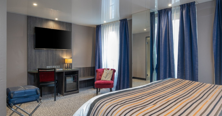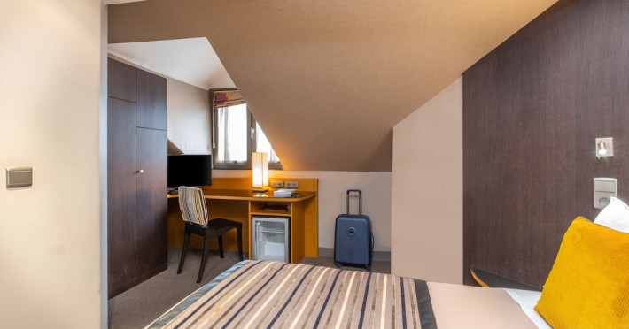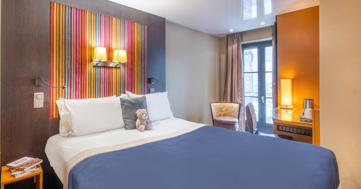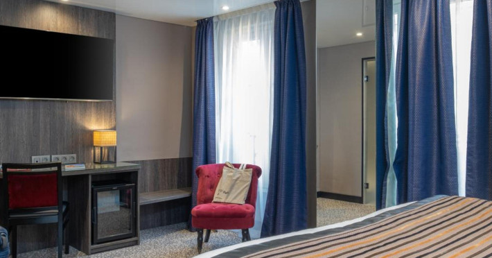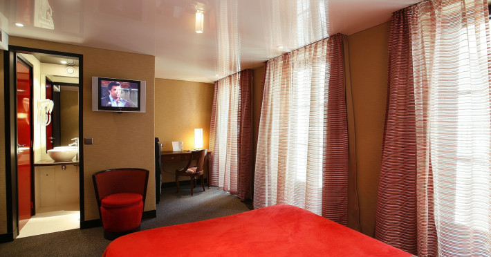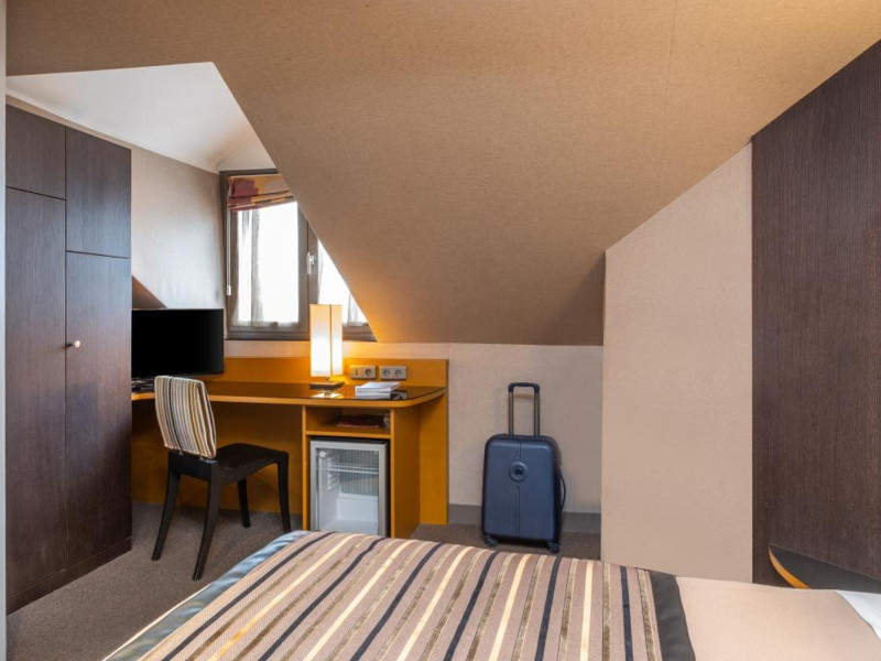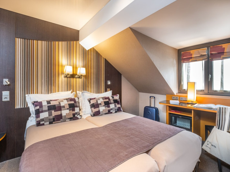 Located in the Marais district of Paris, the 3-star Hotel du Vieux Saule is a 15-minute walk from Centre Pompidou and Place de la République. This hotel offers air-conditioned rooms with complimentary wireless internet access, flat-screen televisions, minibars, safes, desks, and phones with free local calls. Bathrooms include a hairdryer and toiletries. A lift services all rooms. Guests can enjoy a buffet breakfast in the arched stone cellar. The hotel features a relaxation area with a sauna. Additional amenities include a 24-hour front desk, concierge services, luggage storage, and laundry service. Temple Metro Station is nearby, providing direct access to Opéra Garnier. Paris Orly Airport (ORY) is 18.5 km away, while Paris Charles de Gaulle Airport (CDG) is the preferred airport at 31 km away. The Du Vieux Saule is a hotel.